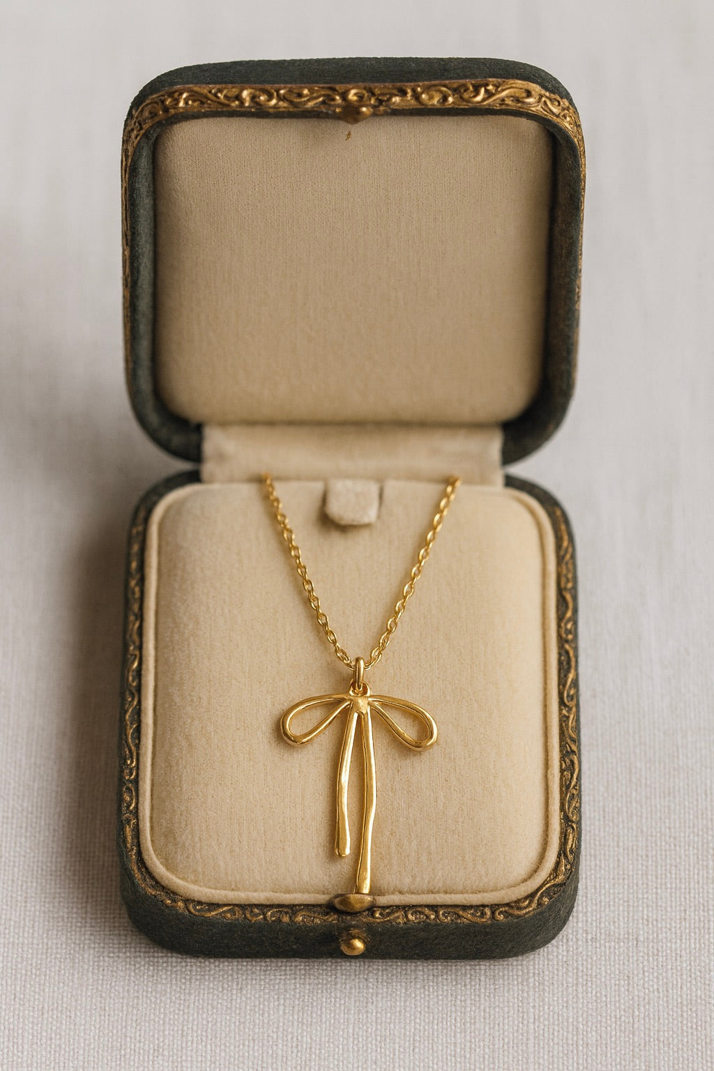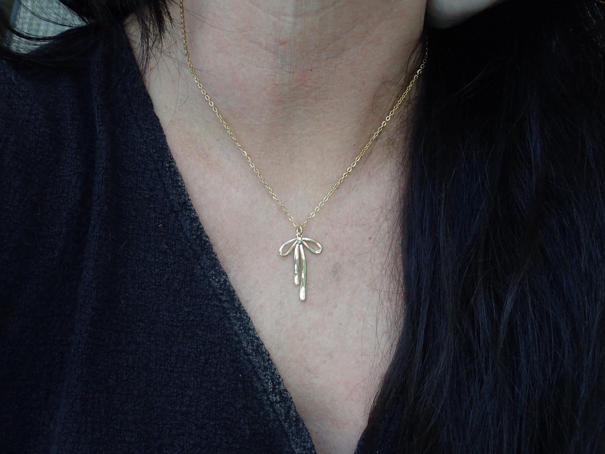 Coquette Bow Necklace - Waterproof Gold Fill Bow Pendant and Chain, Everyday Wear Jewelry