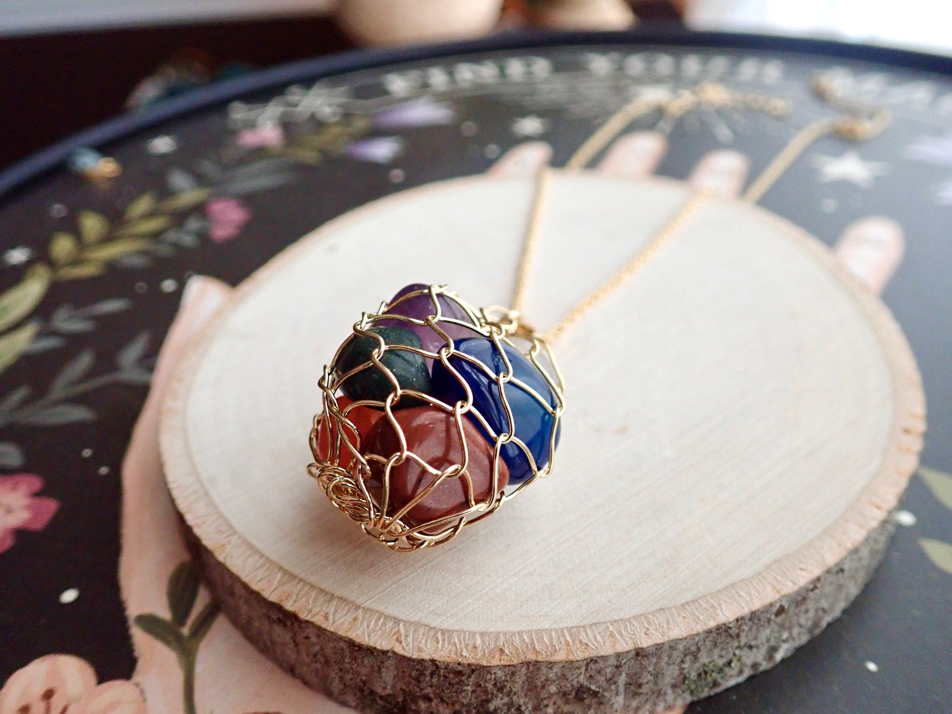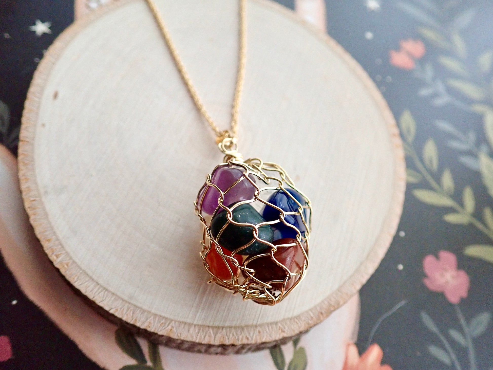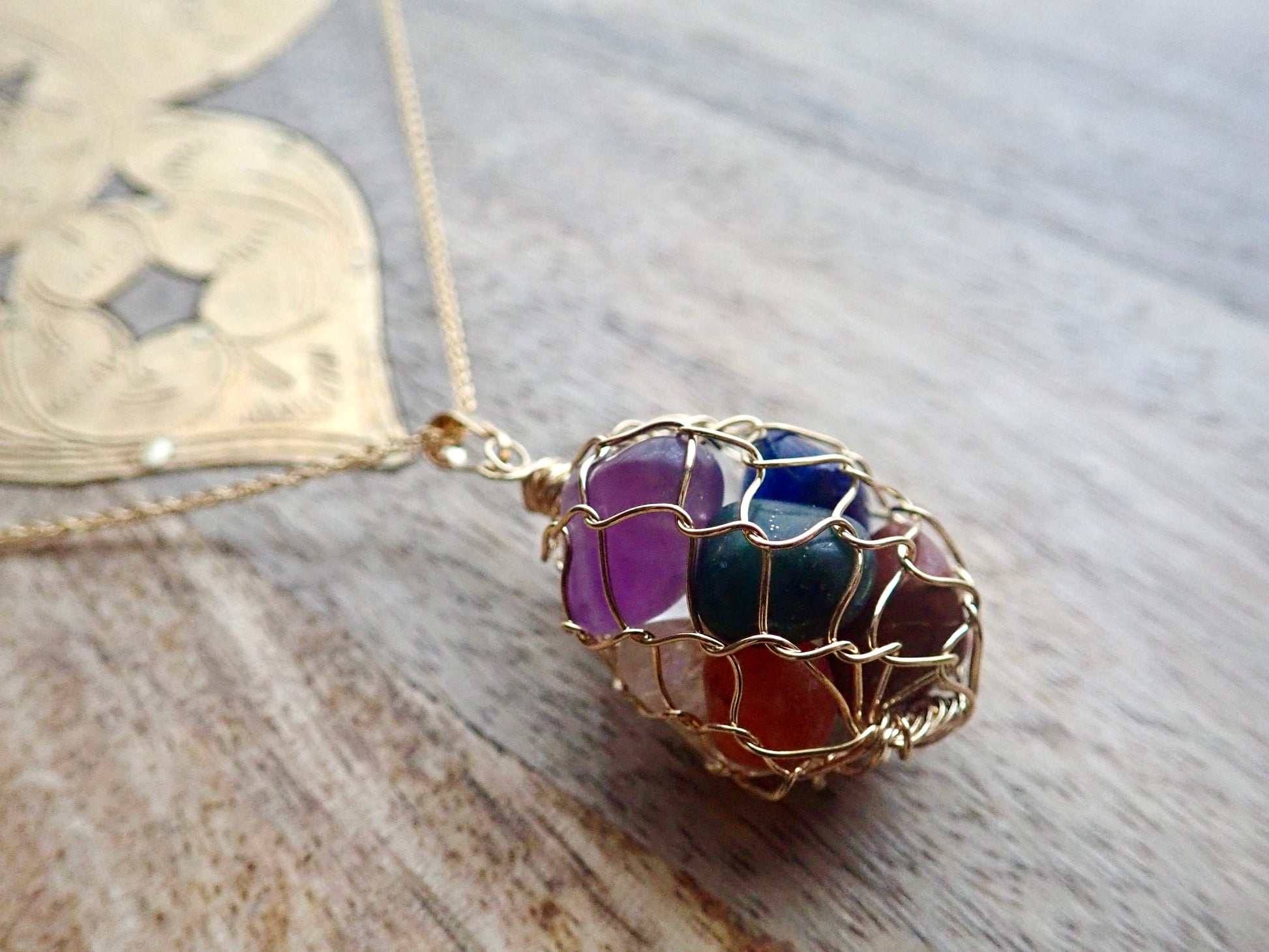 CHAKRA STONES - each of these 7 stones are genuine and bundled inside the hand wire-wrapped pendant.