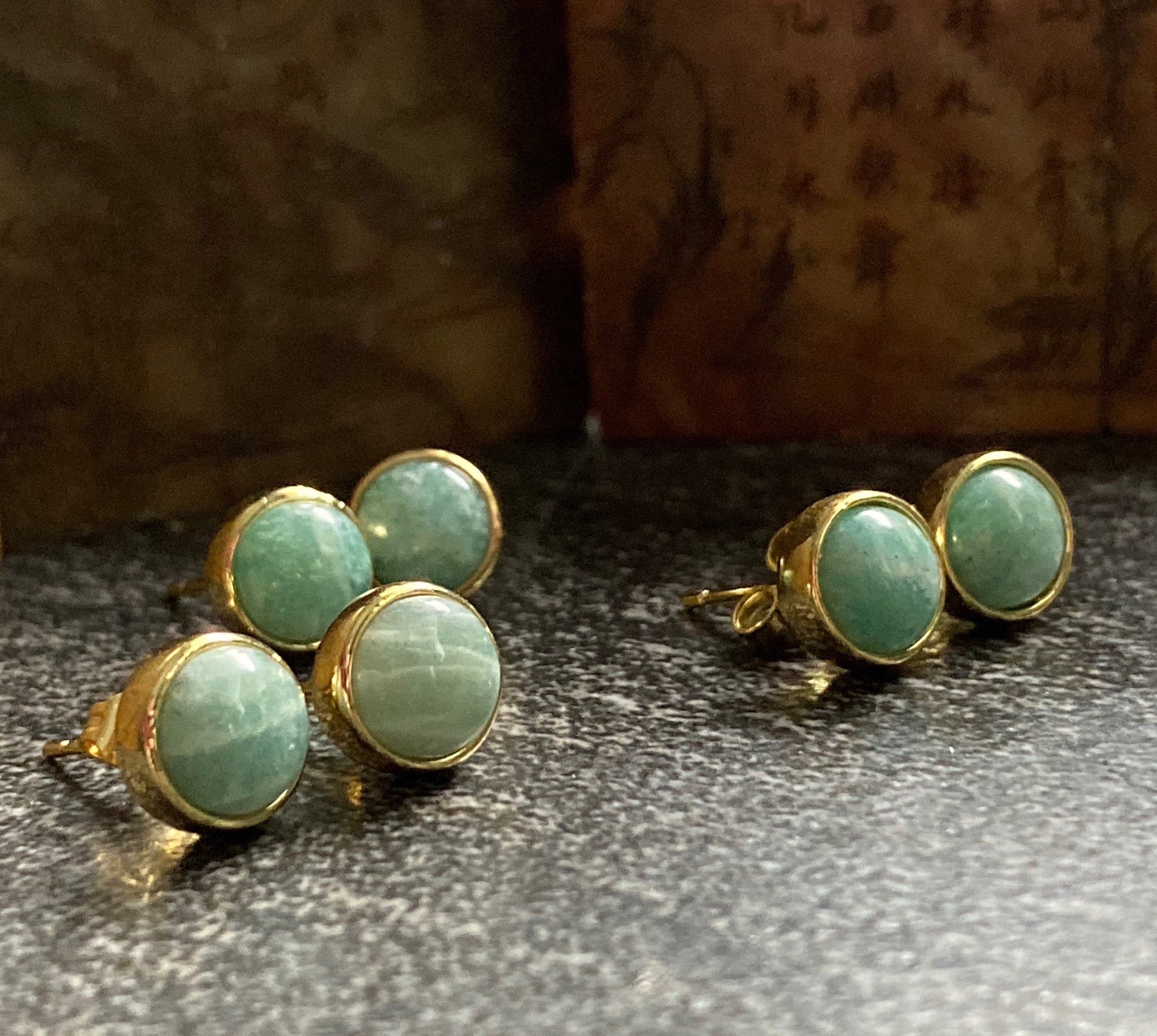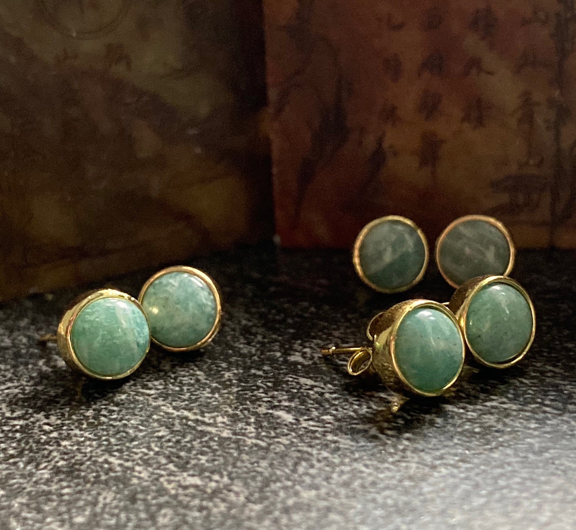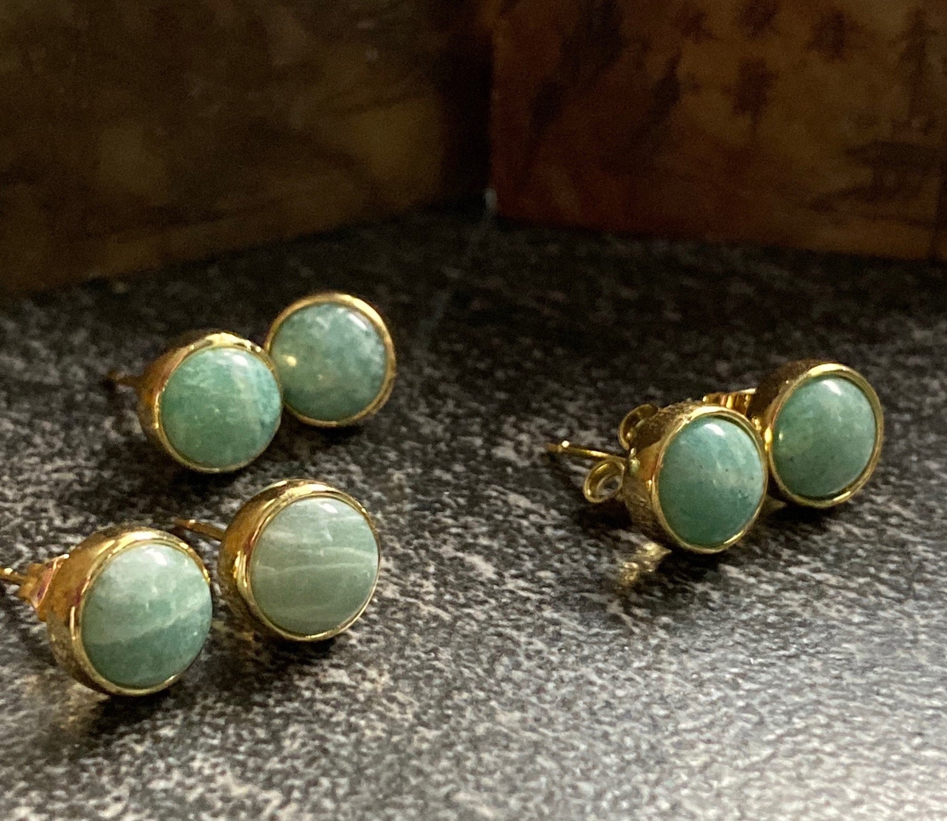 All stones are natural and thus no two are exactly alike. You will receive a pair at random from the earrings I have in stock. All are beautiful and very similar to the ones in the photos.