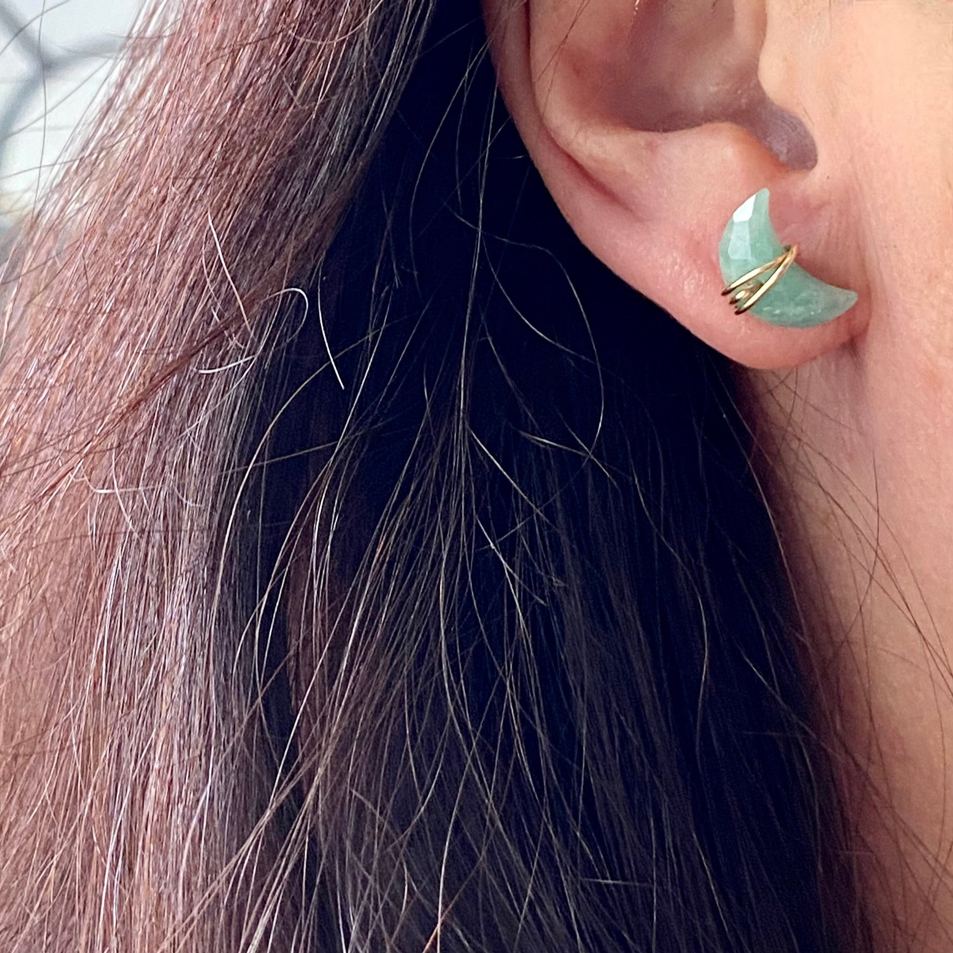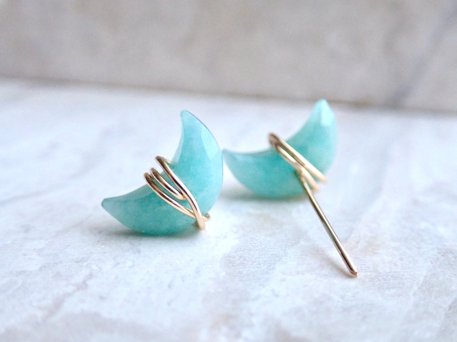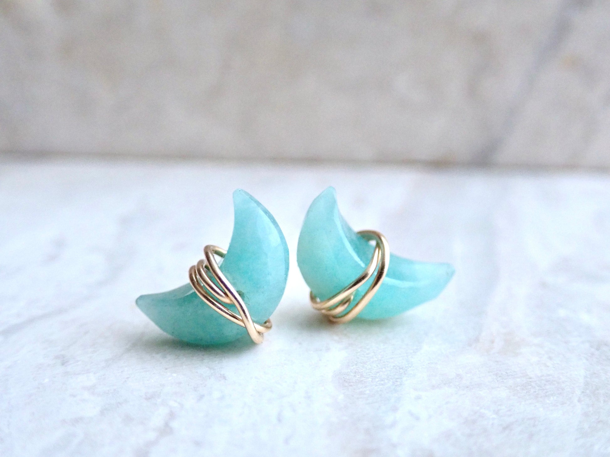Amazonite Stud Earrings | Crescent Moon Earrings, Wire Wrapped Stone Gemstone Post