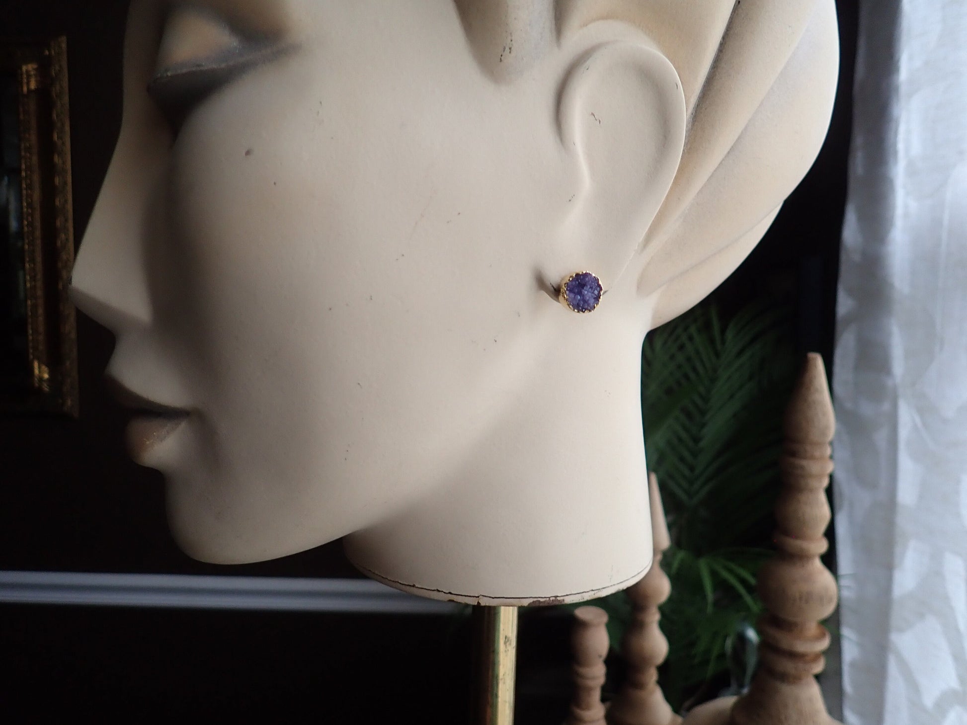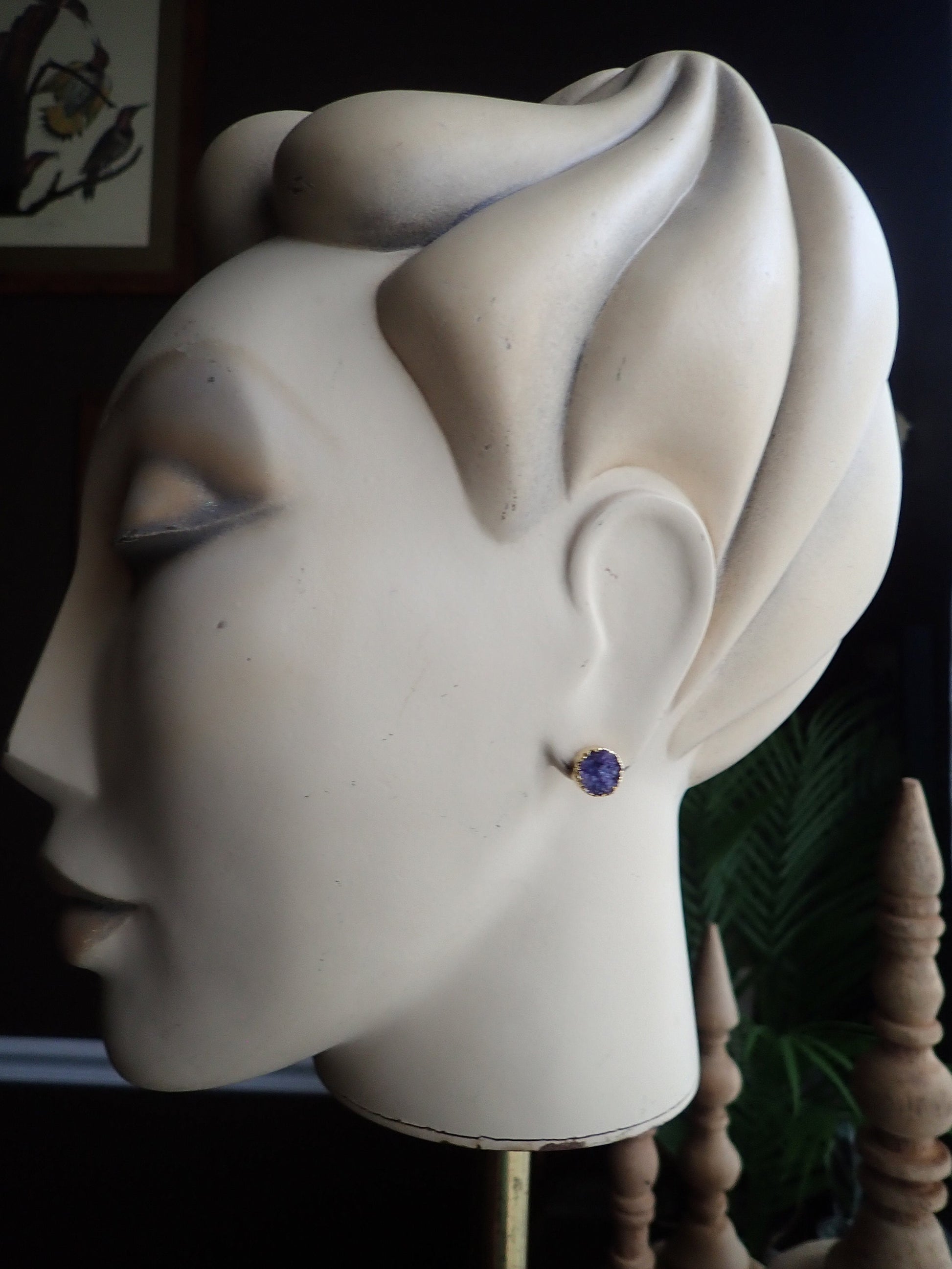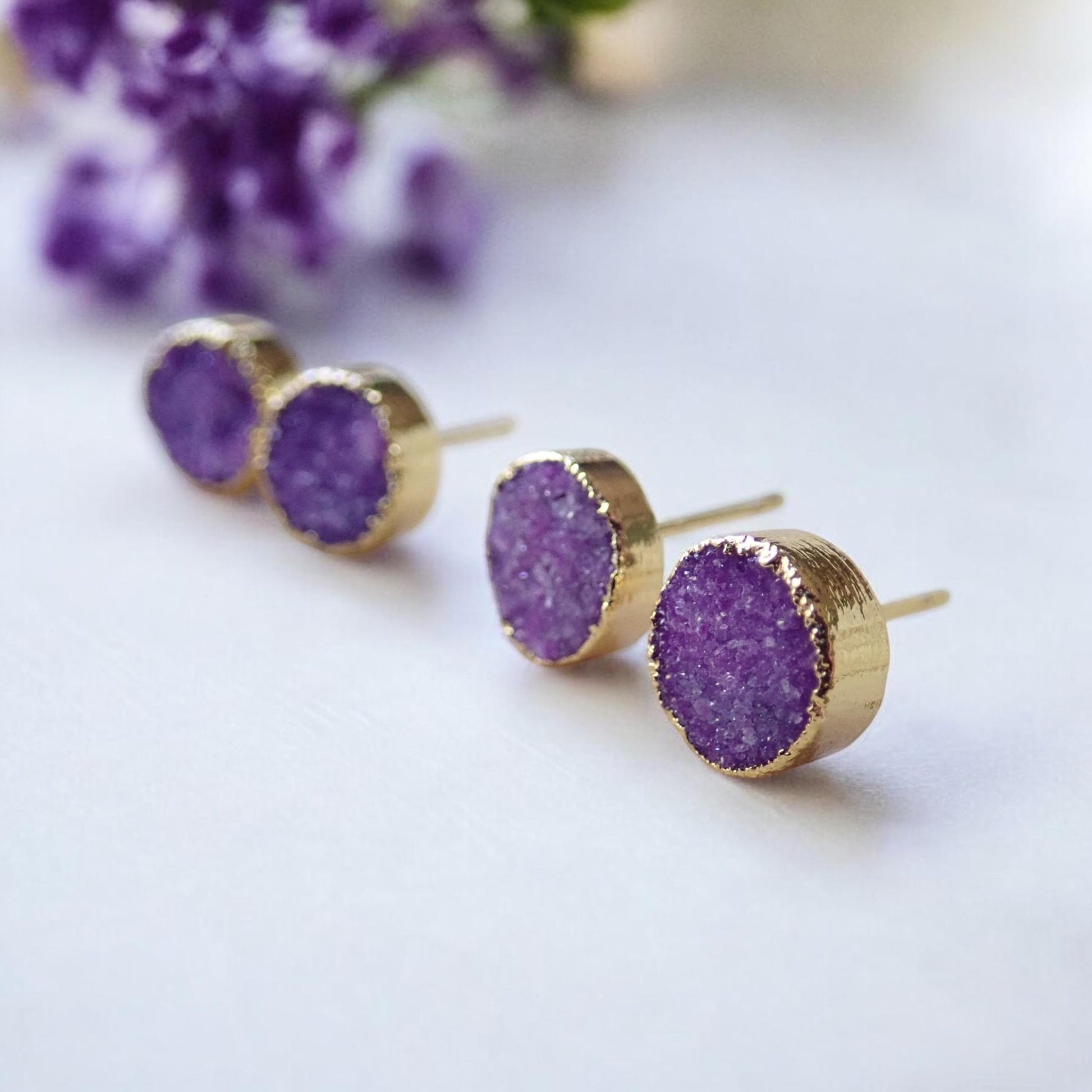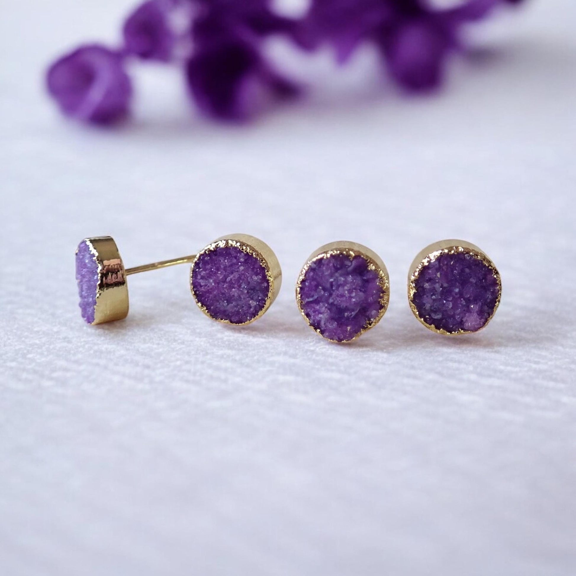✨ Purple Druzy Stud Earrings | 14K Gold Electroplated ✨