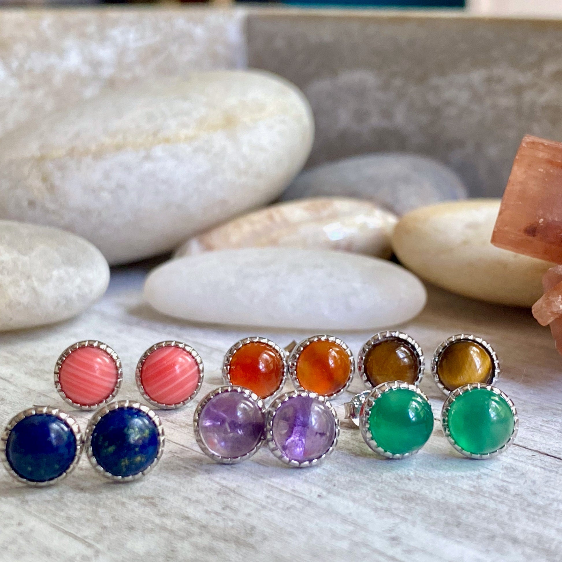 Bottom Row Left to Right: Lapis Lazuli, Amethyst, Green Chalcedony