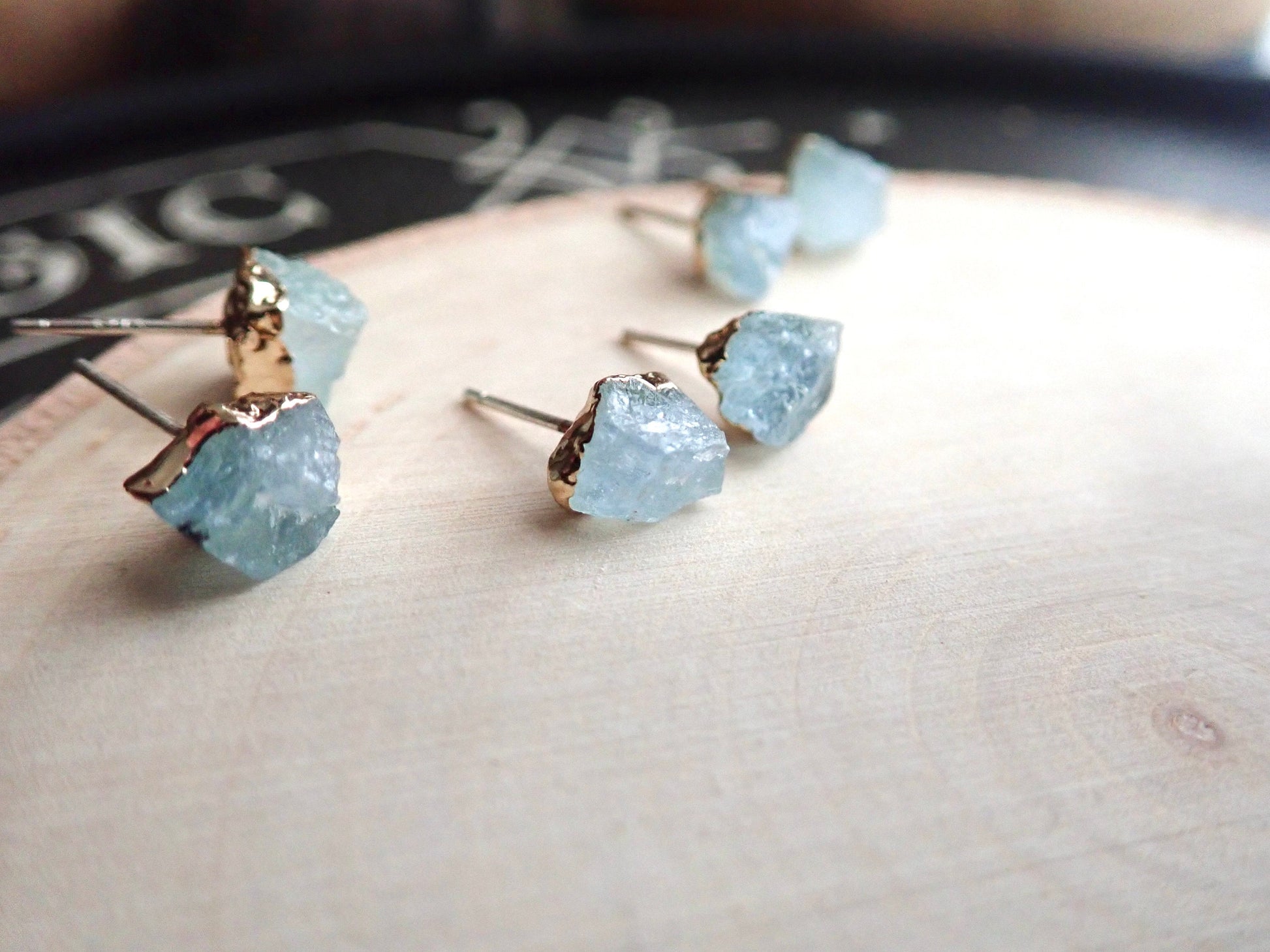 *About our gems* Each of the stones we use to create these special earrings were formed by nature over millions of years. Each one is unique and beautiful just like nature itself. They will vary one to another, just like Mother Nature intended. We don't treat our stones in any way and accept their rough and "imperfect" beauty and try to highlight their uniqueness in our plating process. We don't polish away "flaws" in the stones but rather leave them in their natural state. The pair you receive will be what nature intended that stone to be and may be lighter or darker, clear or more opaque, smooth or rough, rounded or angular. Just like people, each stone has special characteristics unique to itself and in that lies the beauty. Each pair is lovingly matched as best as possible but all are freeform and rough cut. Please expect some minor shape and color variations. Think of them as sisters, not twins.