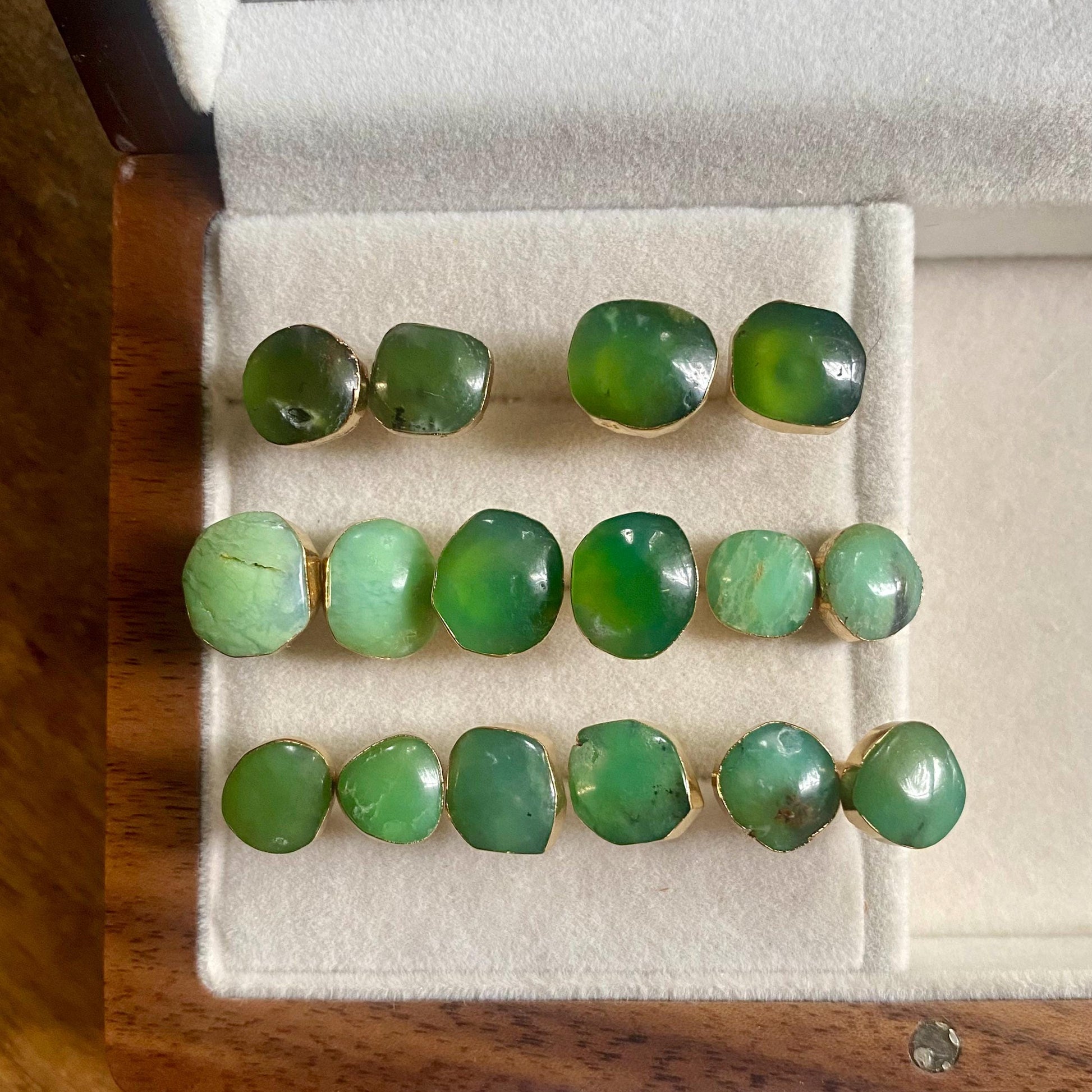 Each pair is unique as I've tried to show in the photos but all are beautiful and the most lovely shades of green. Each pair is truly original but I've matched them for overall size and shade. Stones range in size from 5mm to 8mm. Let me know if you have a preference for smaller or larger.