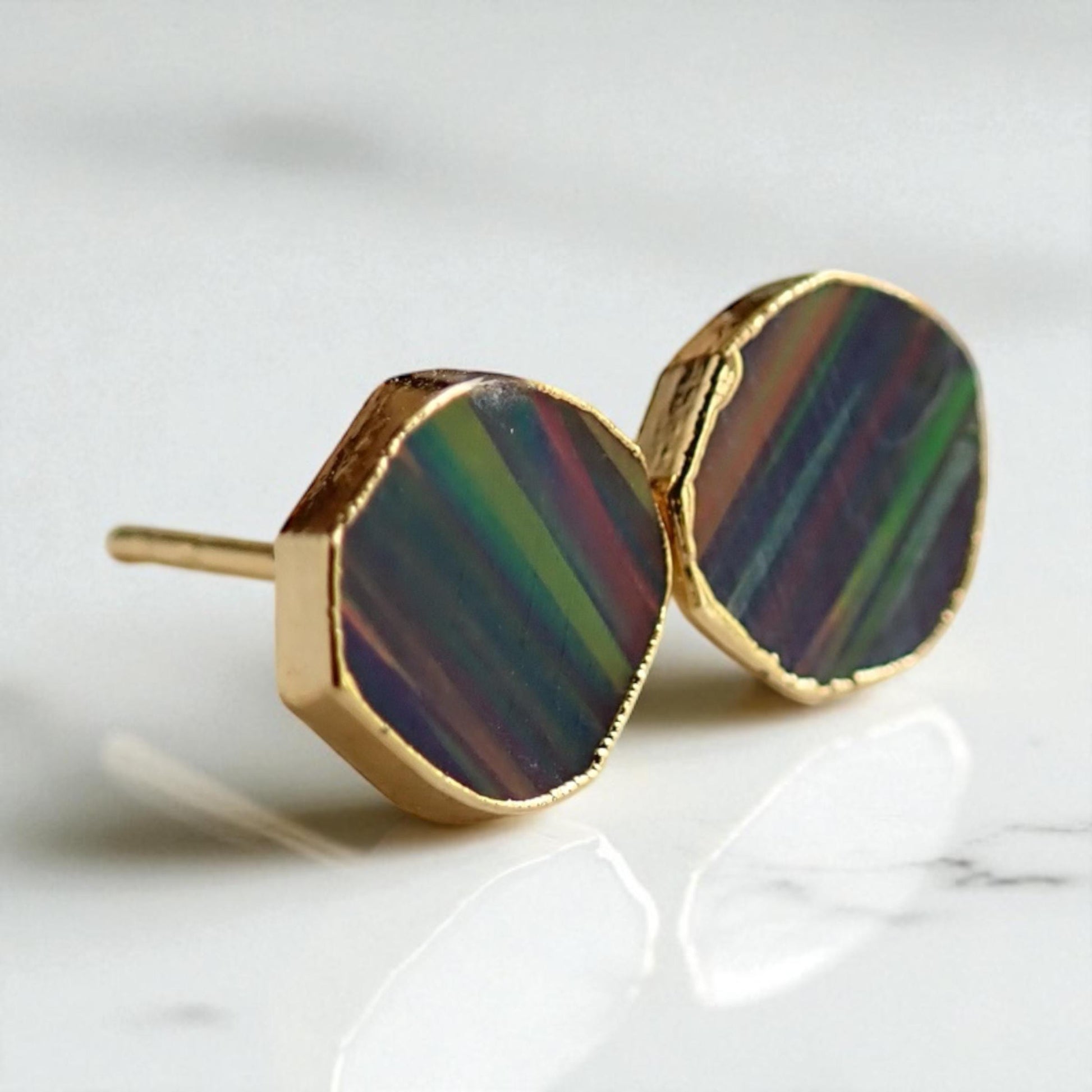 Bold, fiery, and full of magic—these black Gilson Opal stud earrings are a modern statement with old-world depth. Choose from two distinct finishes, each full of color and character: