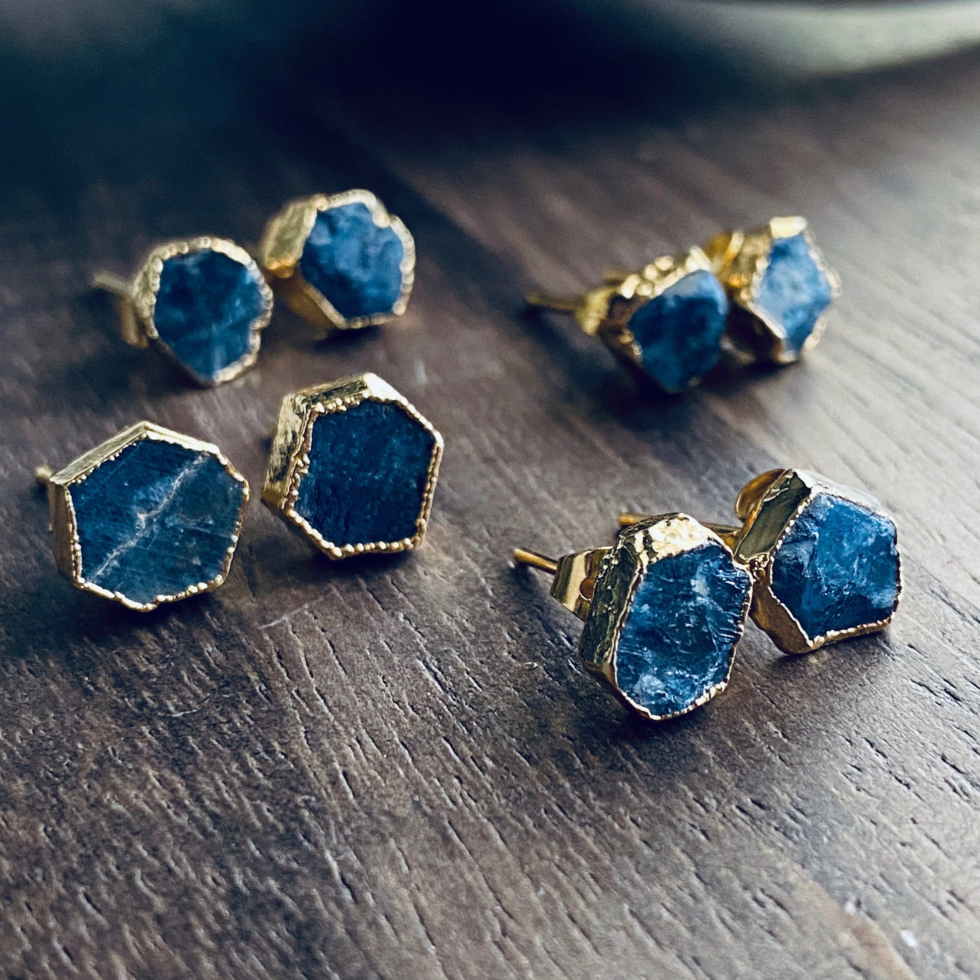 *About our gems* Each of the stones we use to create these special earrings were formed by nature over millions of years. Each one is unique and beautiful just like nature itself. They will vary one to another, just like Mother Nature intended. We don't treat our stones in any way and accept their rough and "imperfect" beauty and try to highlight their uniqueness in our plating process. We don't polish away "flaws" in the stones but rather leave them in their natural state. The pair you receive will be what nature intended that stone to be and may be lighter or darker, clear or more opaque, smooth or rough, rounded or angular. Just like people, each stone has special characteristics unique to itself and in that lies the beauty. Each pair is lovingly matched as best as possible but all are freeform and rough cut. Please expect some minor shape and color variations. Think of them as sisters, not twins.