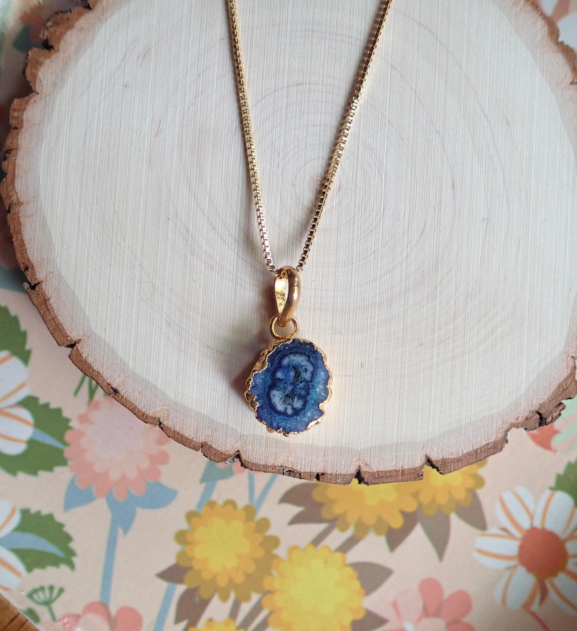 Blue Solar Quartz Necklace, Geode Slice Necklace Gold, Crystal Layering Necklace, Dainty Gemstone Pendant Necklace, Jewelry Gift for Her