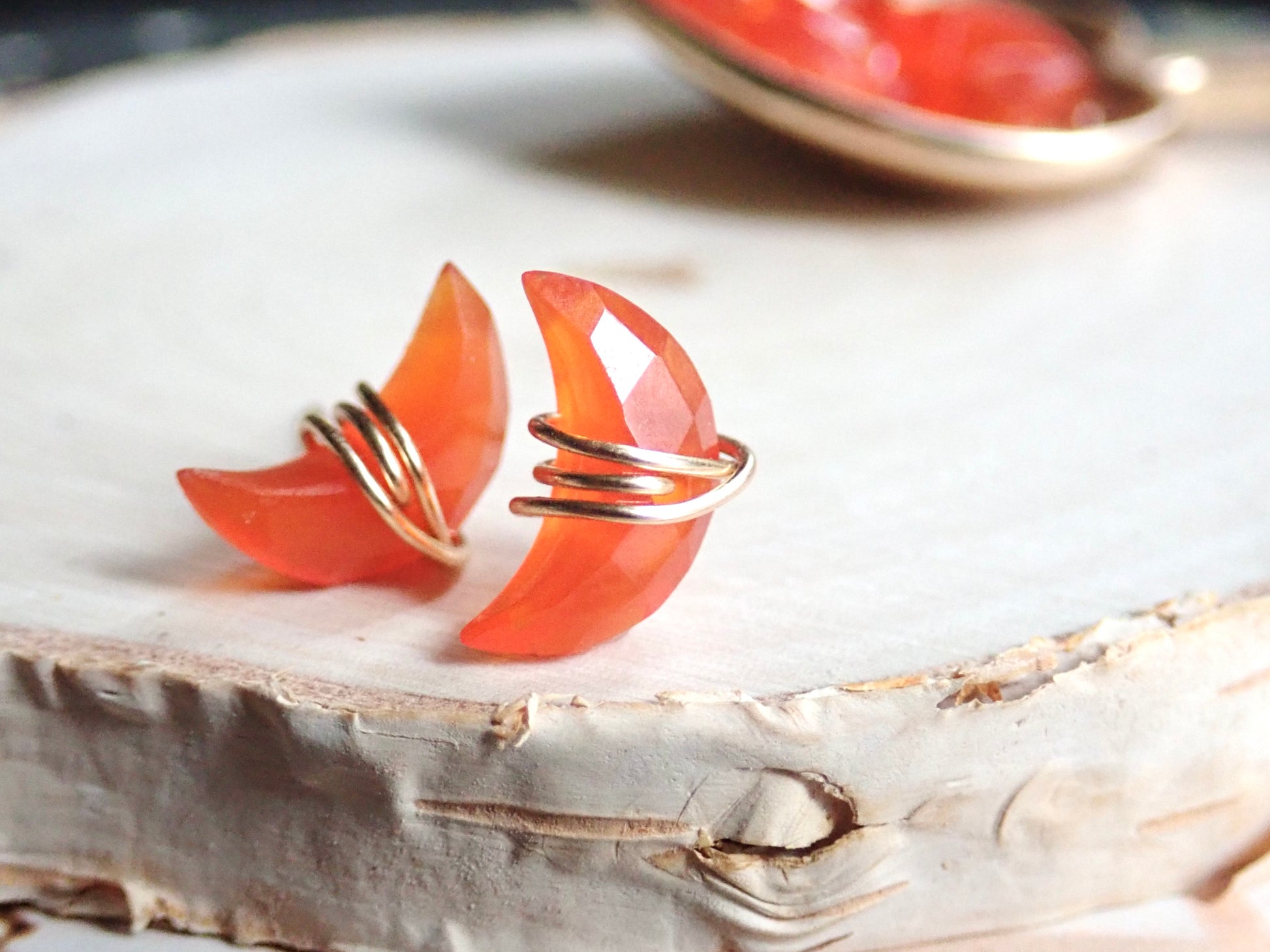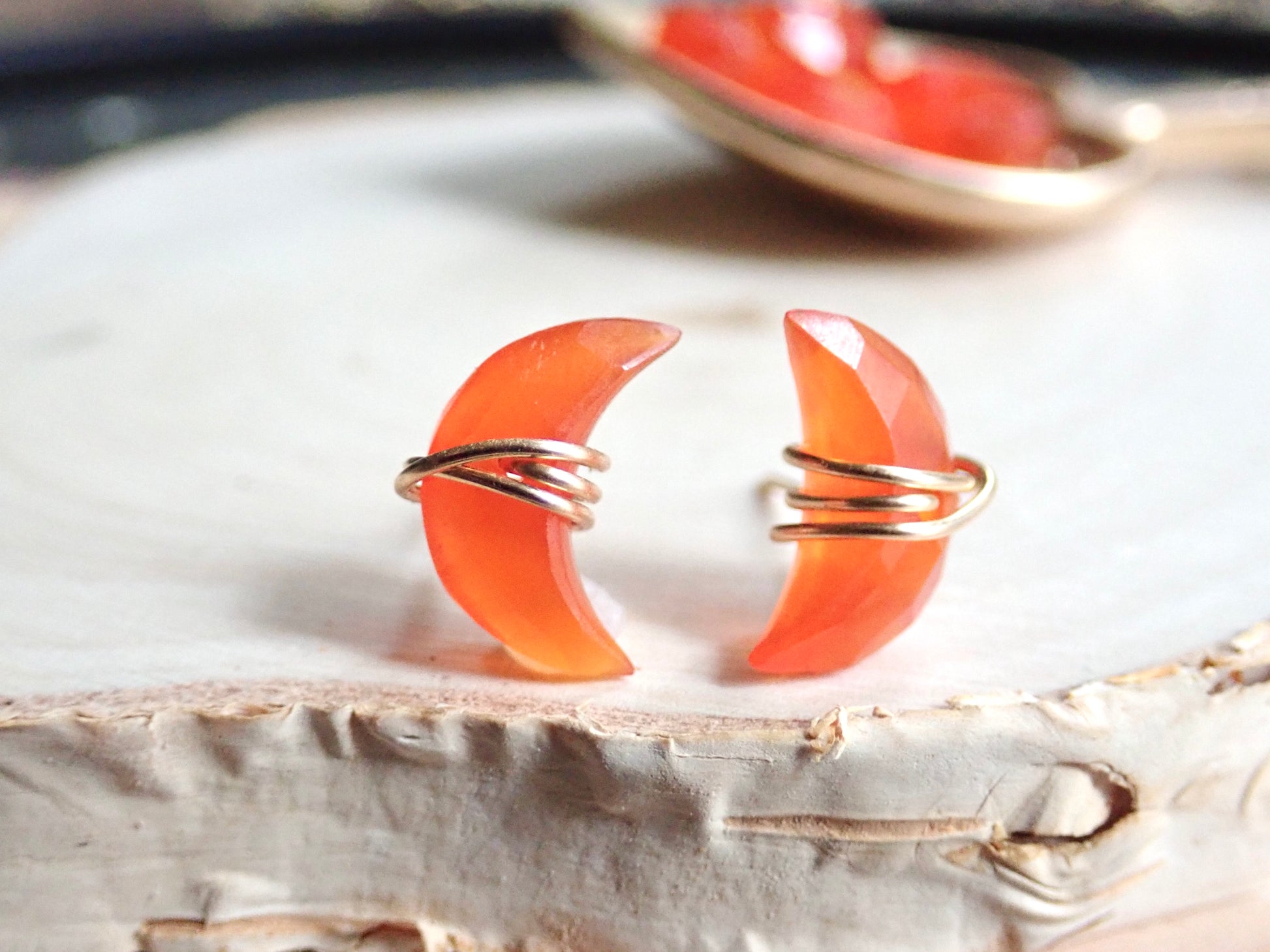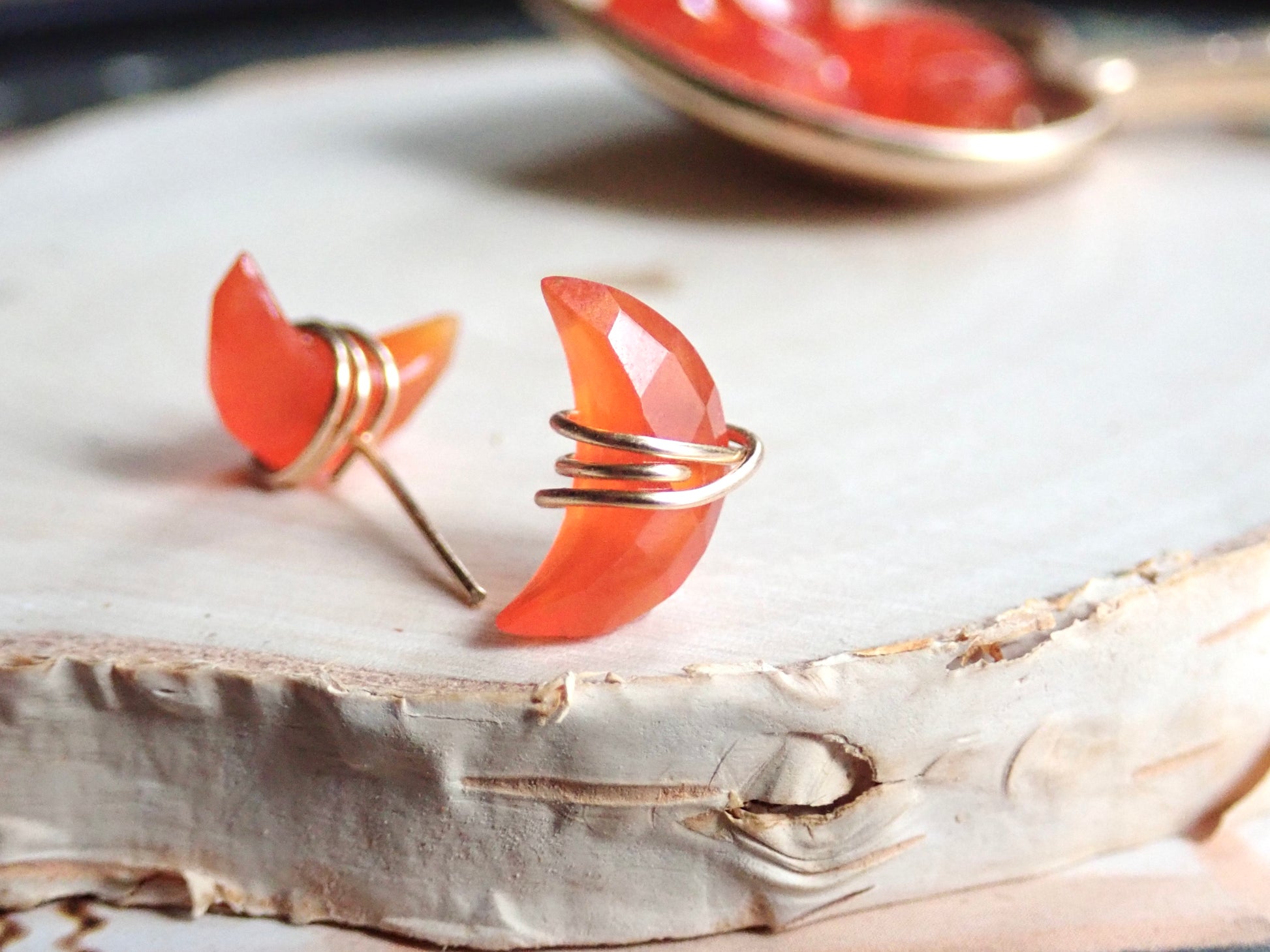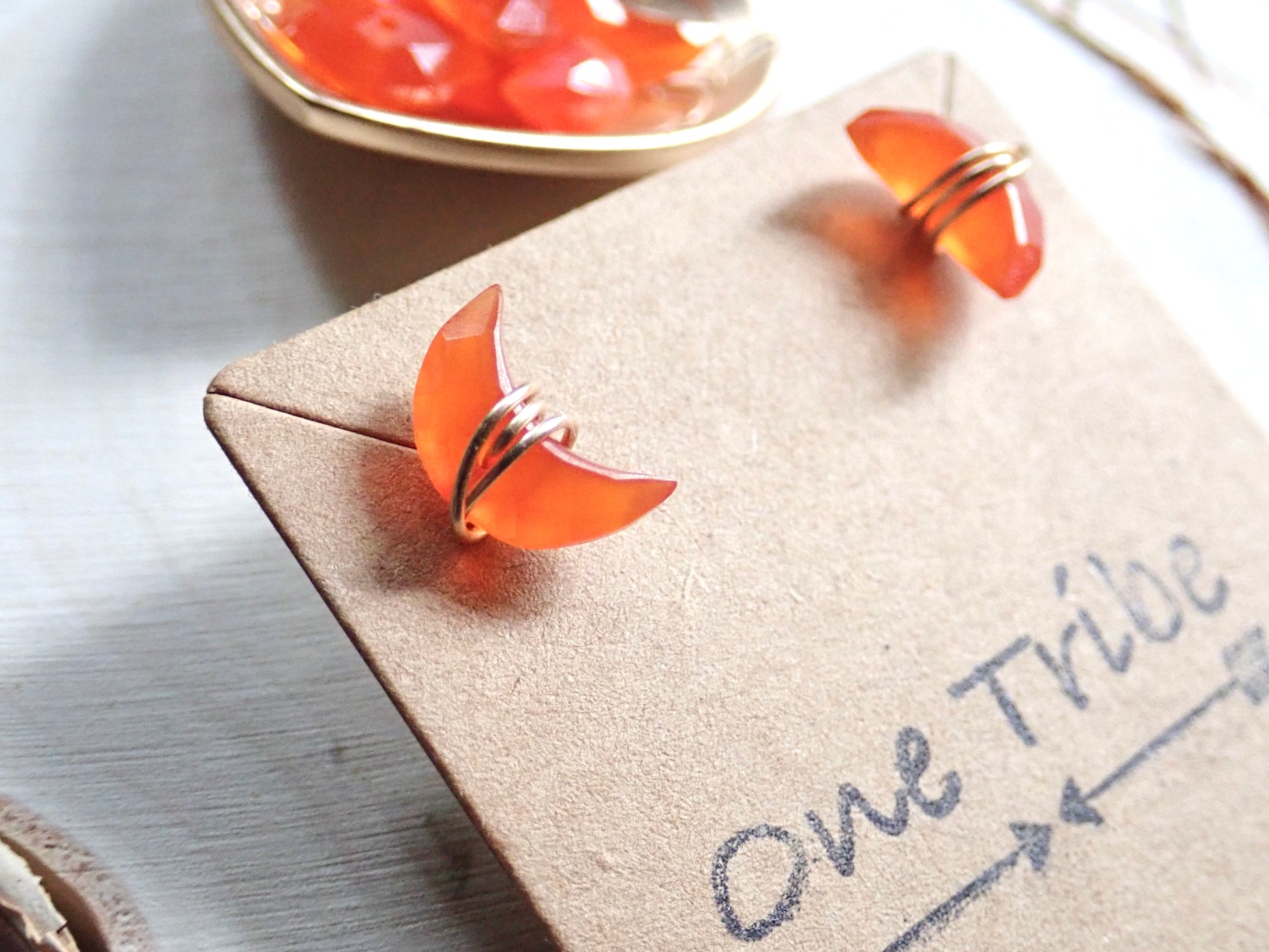 🌙Elevate your celestial style with these stunning Carnelian Crescent Moon Stud Earrings! Crafted with love and attention to detail, these unique earrings are perfect for those who appreciate the enchanting beauty of the night sky and the grounding energy of Carnelian gemstones.