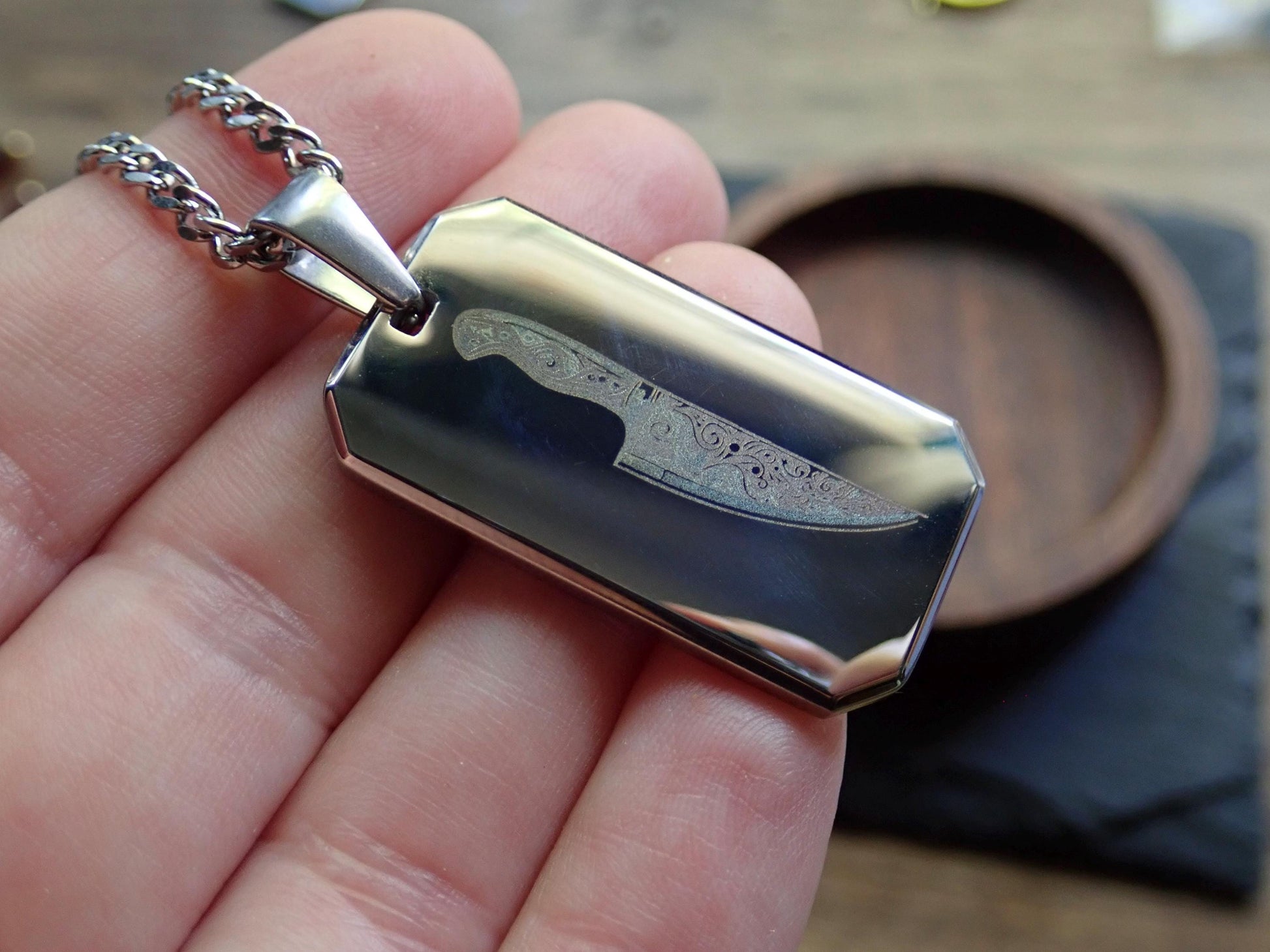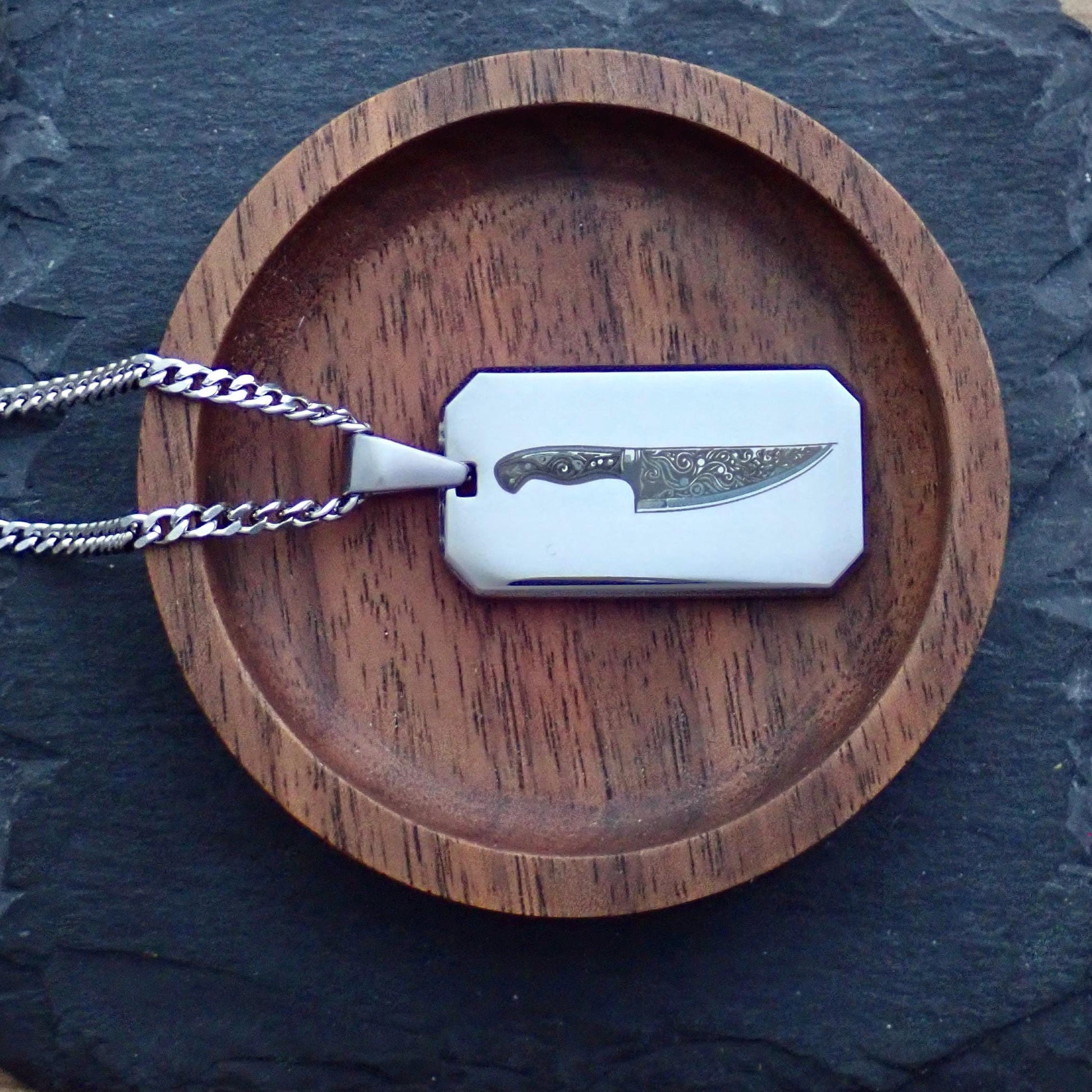Sharp Style: Silver Stainless Steel Dog Tag Necklace with Chef Knife Engraving