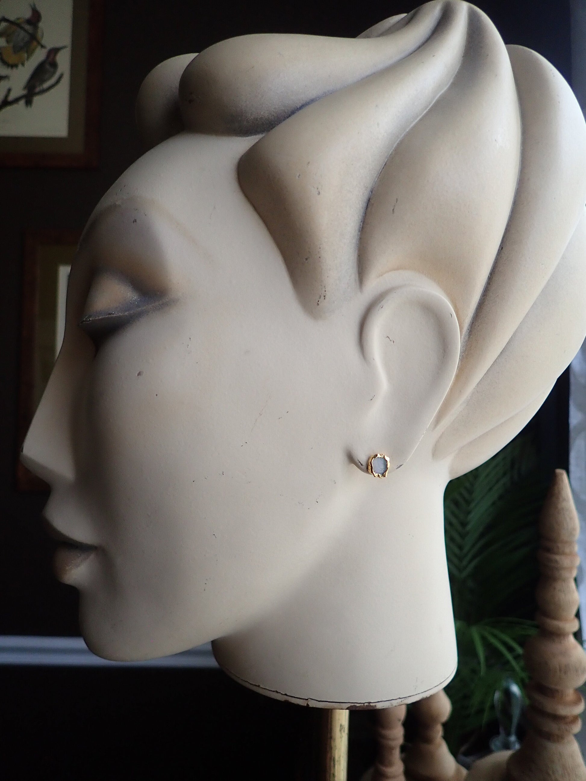 Super sweet and dainty minimalist gold stud earrings in genuine, untreated raw Fire Opal, electoplated in 14k gold. The opals in this listing are not flashy but rather more clear with an tinge of color. .This October Birthstone is known for enhancing love and thoughtfulness. It is also called a "a stone of hope." Perfect for everyday wear and one of my most popular gift items.