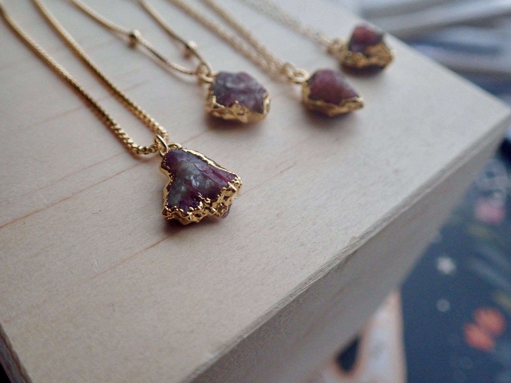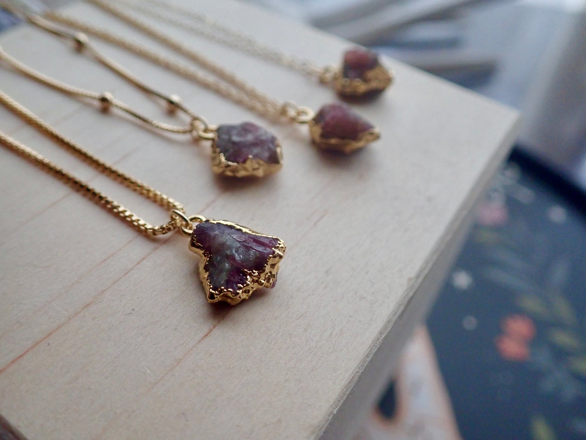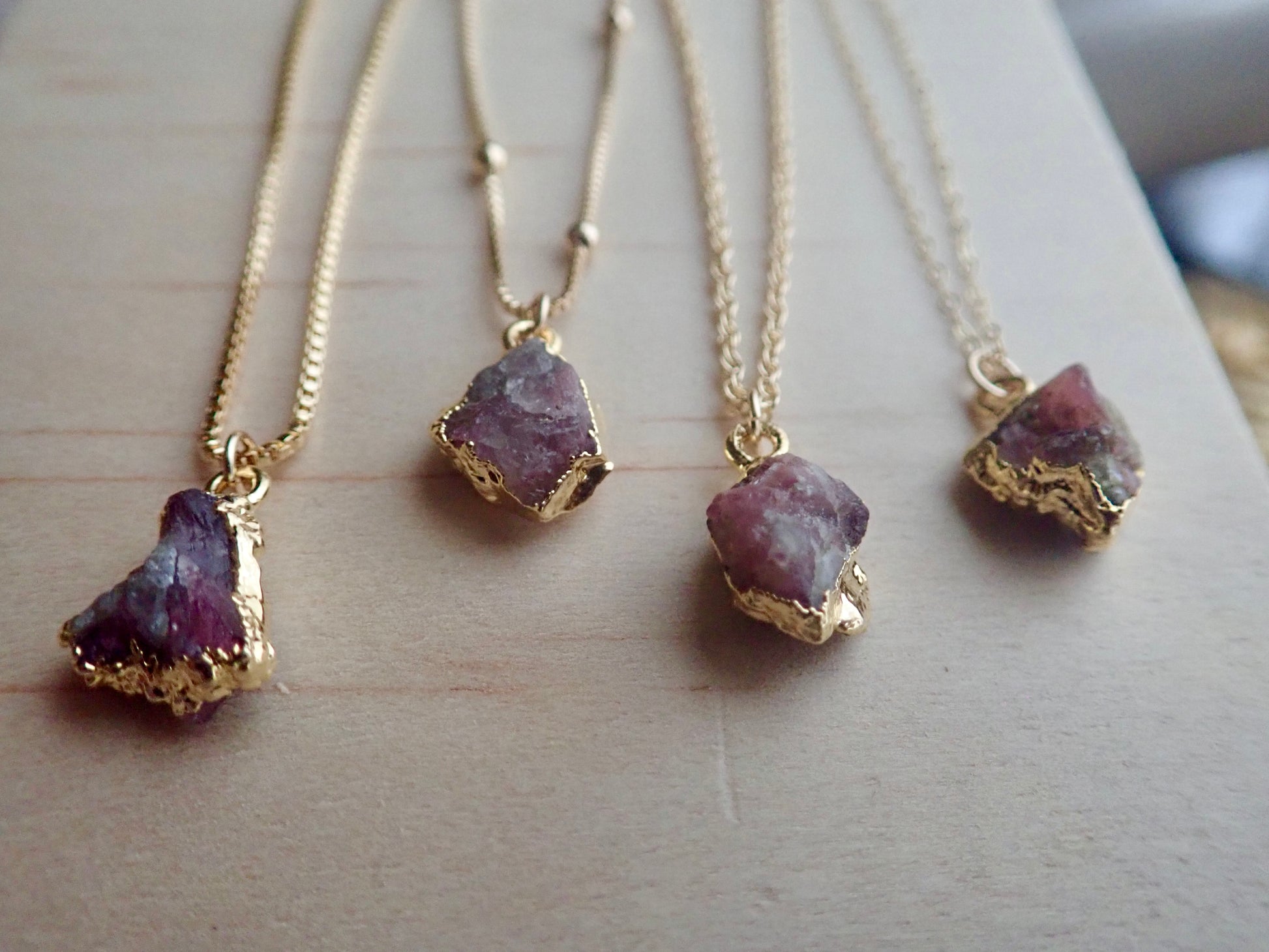 Beautiful and all-natural tourmaline gemstones electoplated in 14k gold and hung from your choice of high quality gold fill chain.