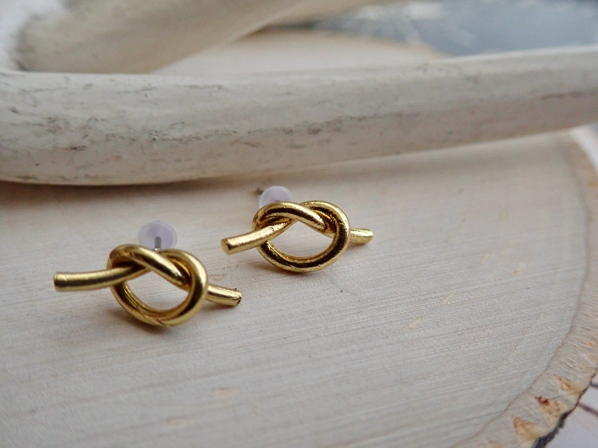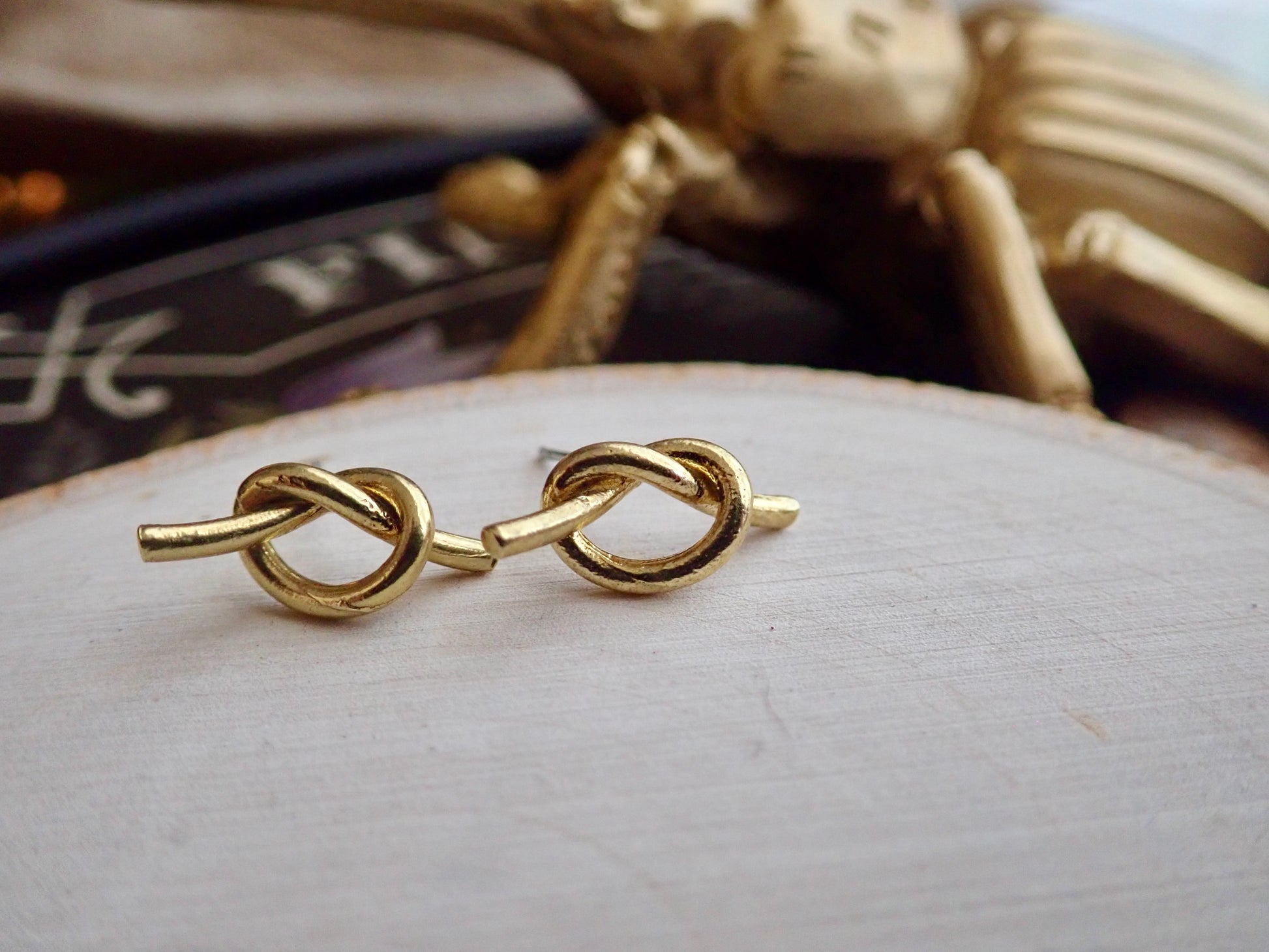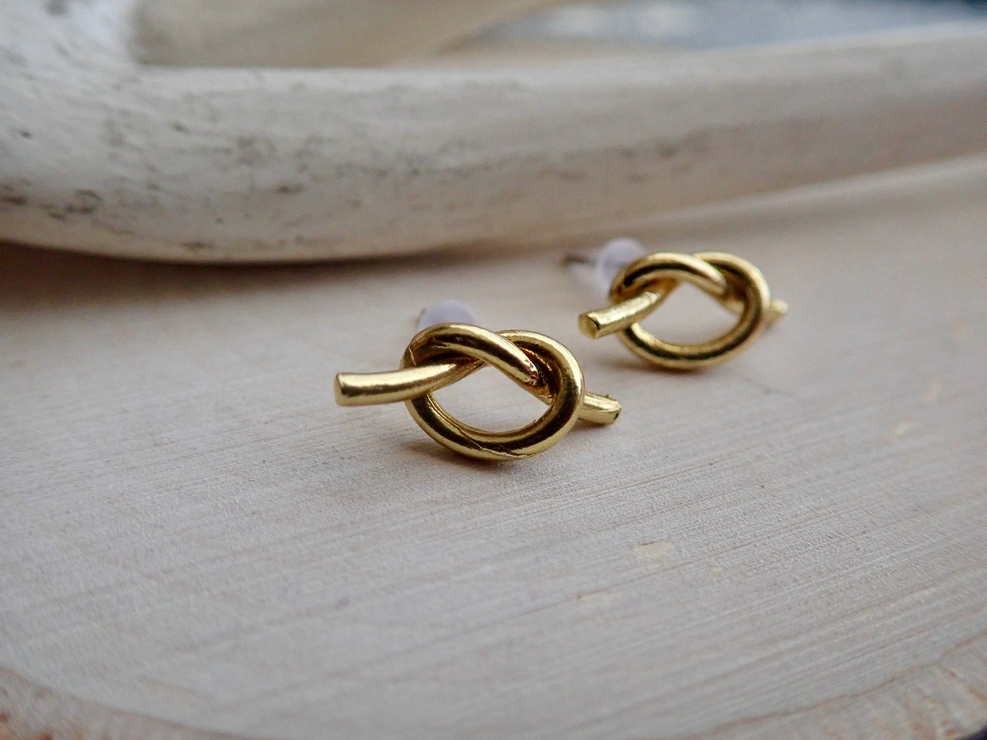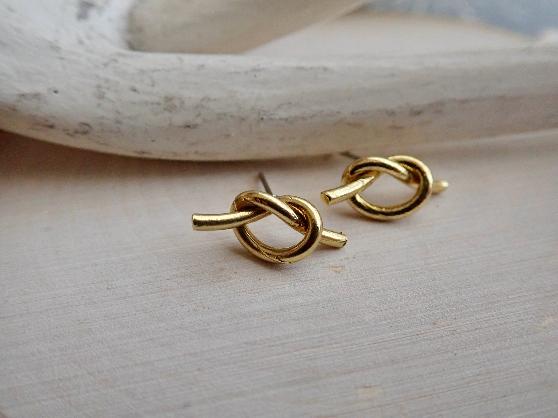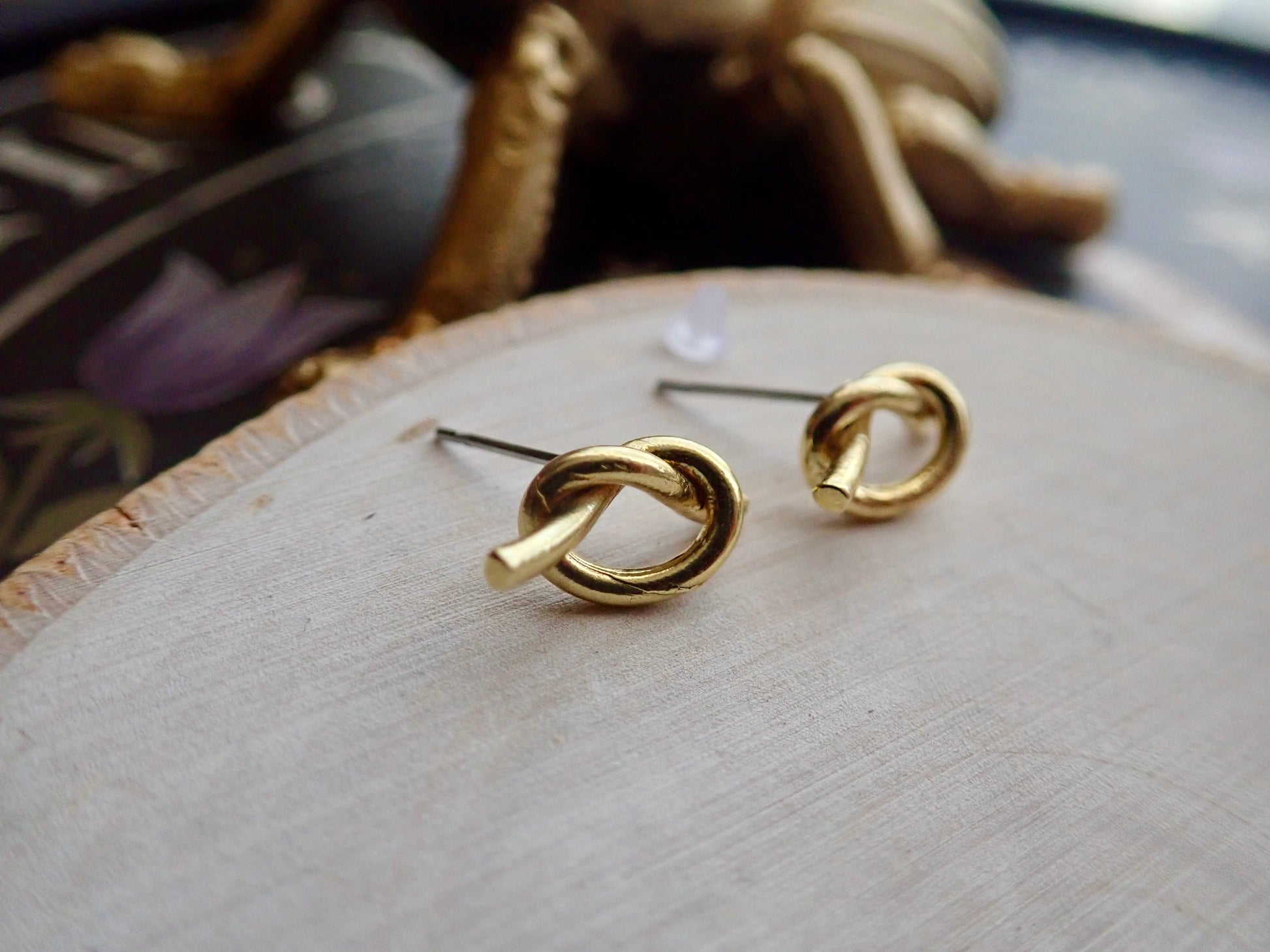 Super sweet and dainty raw brass knot stud earrings. Love knots represent LOVE, unity, and friendship. Would make perfect bridesmaid earrings or gifts for someone you love. These will arrive ready for gifting in a cute boho gift box and they usually ship same day or next.