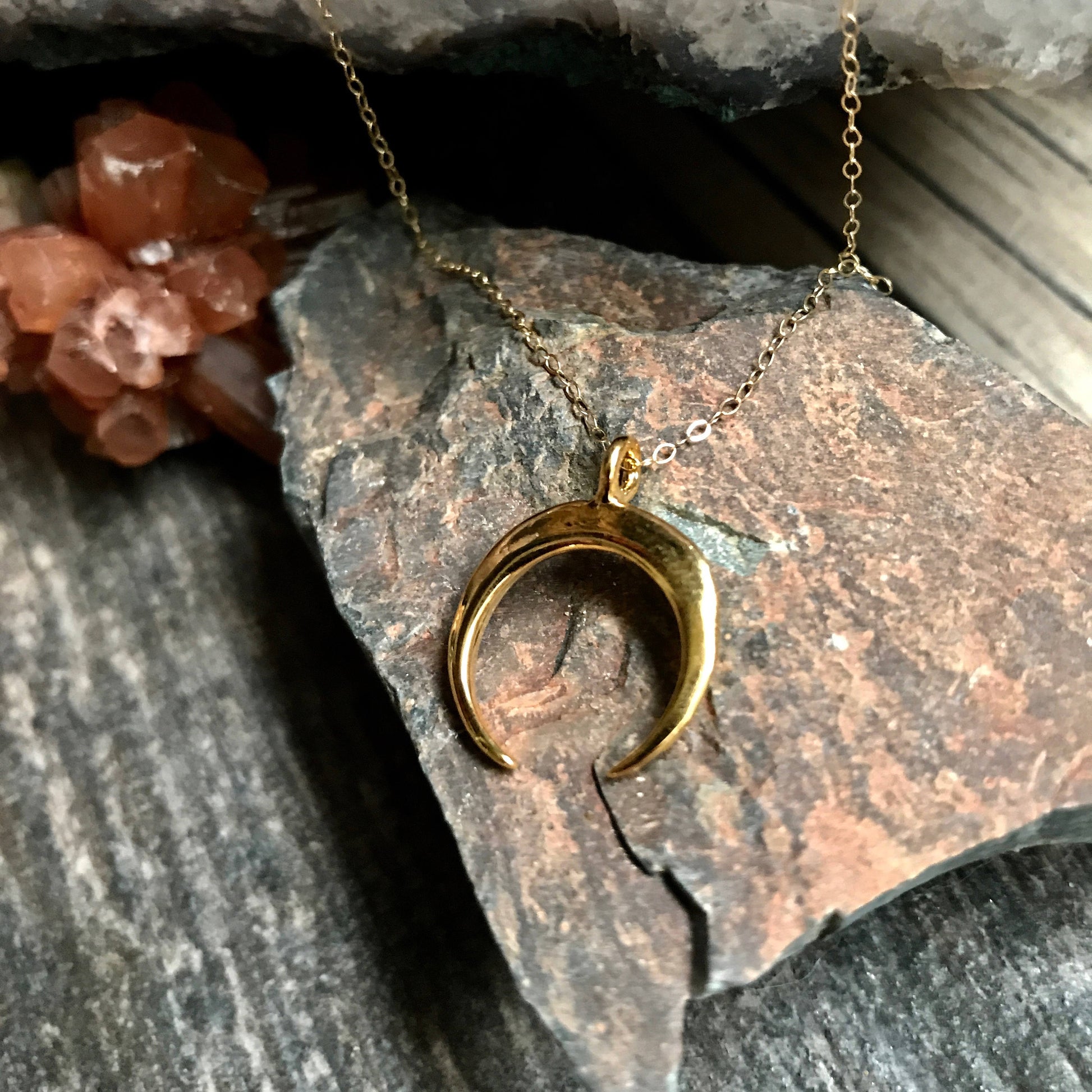 MATERIAL: -Gold Crescent Moon is vermeil gold (18k gold over Sterling silver), chain, jump rings and clasp are 14k Gold Filled