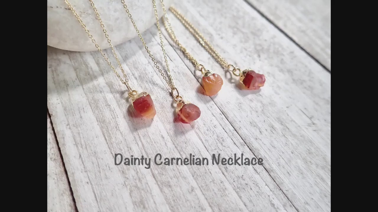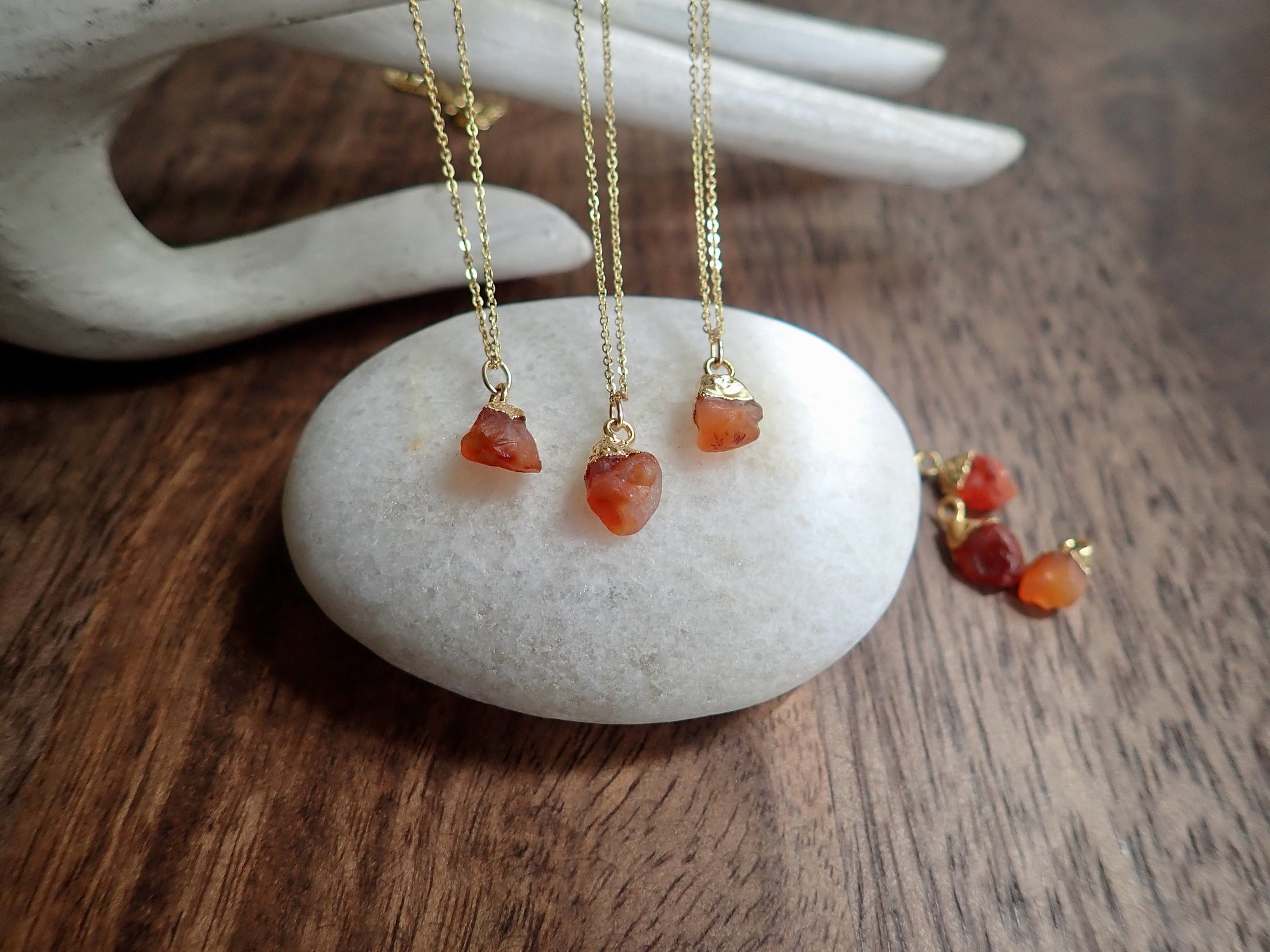 Raw Carnelian Pendant Necklace – 18k Gold Chain & 14k Gold Detailing
