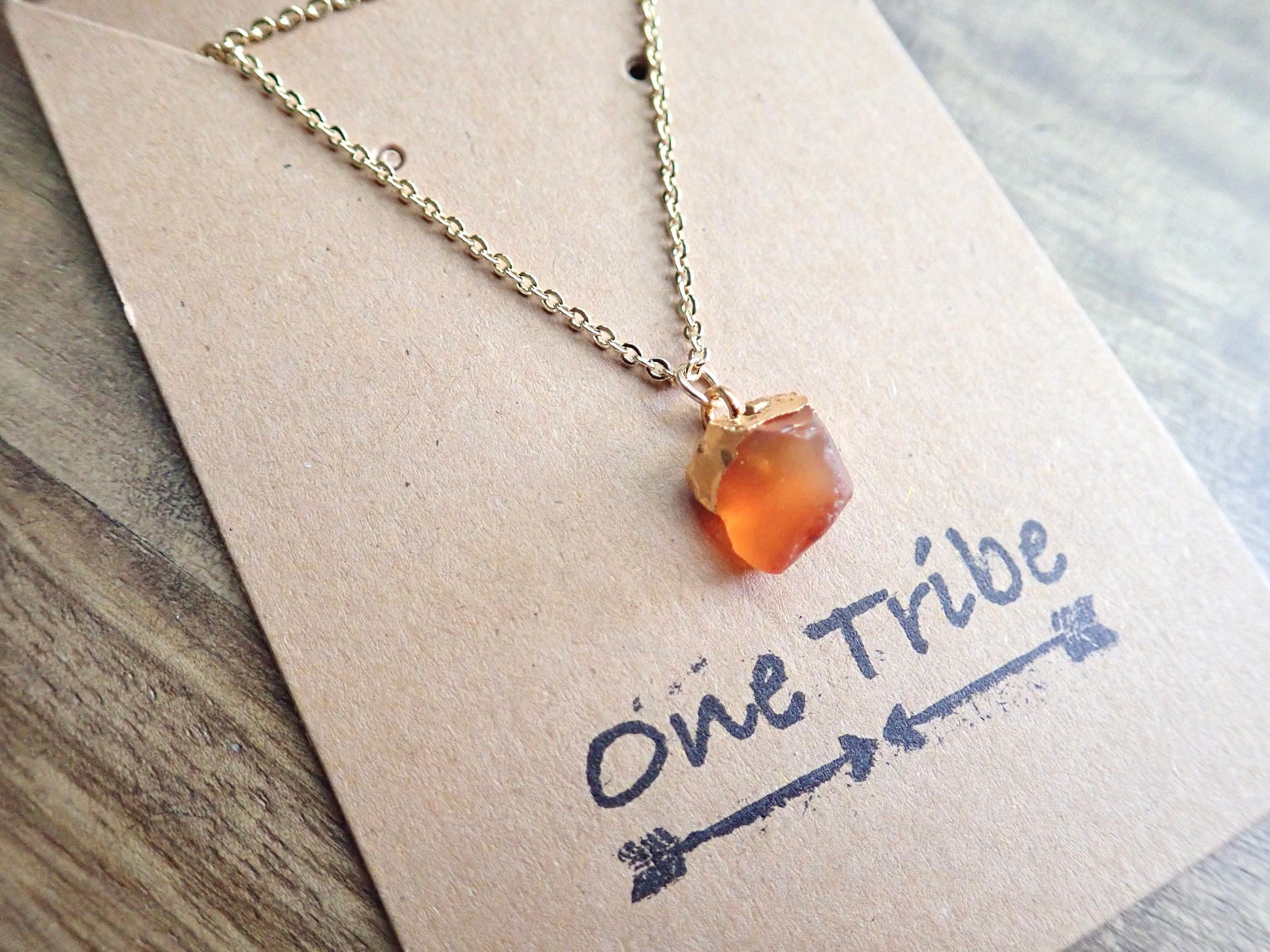 So simple and so cool with an earthy boho vibe! Dainty and vibrant carnelian stones electroformed with 14k gold hang from high quality gold fill chain. Each stone is genuine carnelian and cut by hand so no two are exactly alike. Soulful, earthy, and oh so cool.