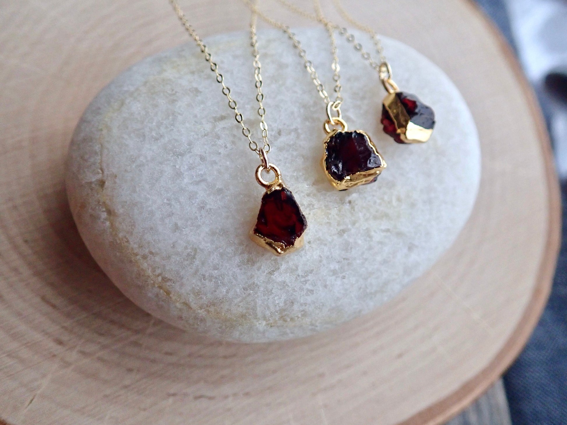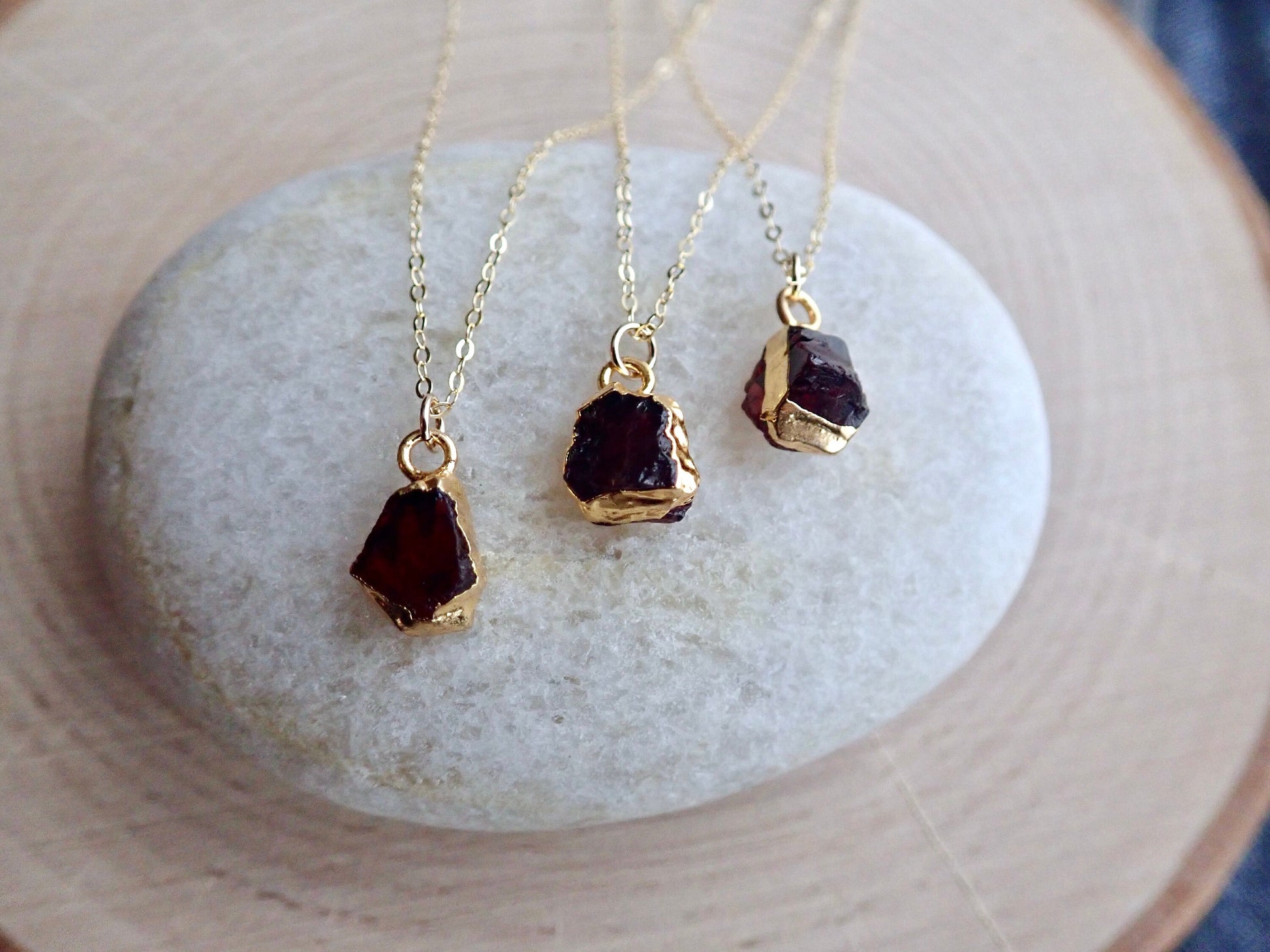 Dainty Raw Garnet Crystal Necklace,Garnet Jewelry,Birthstone Necklace Gift, Gold Edge Gemstone Pendant,January Birthstone Jewelry