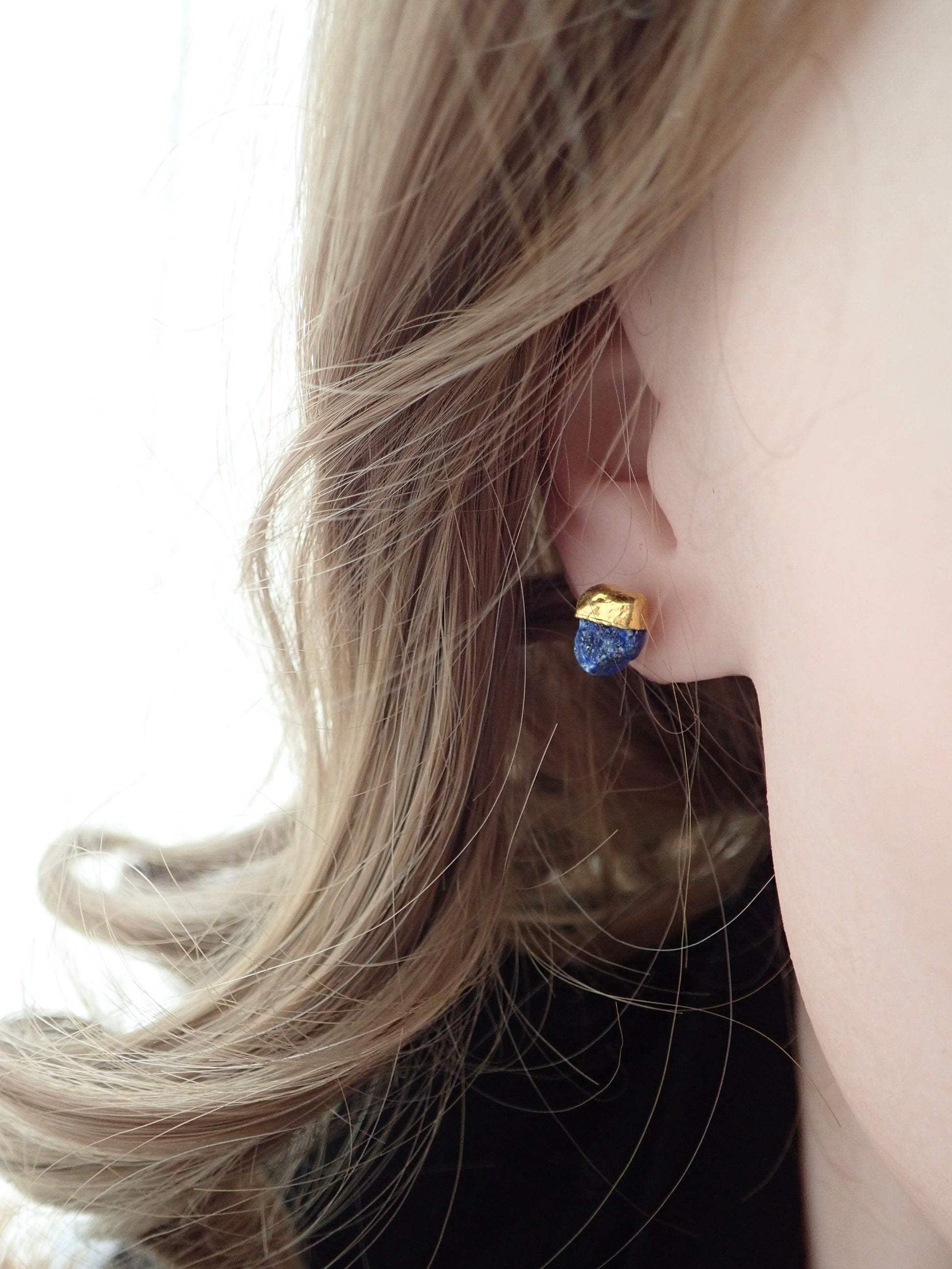 Sweet little everyday stud earrings in deep blue lapis lazuli and lustrous 14k Gold. Lapis lazuli is a deep-blue stone which has been prized since antiquity for its intense color and has been one of the most sought after stones in use since man's history began. Its deep, celestial blue remains the symbol of royalty and honor, gods and power, spirit and vision. It is a universal symbol of wisdom and truth.