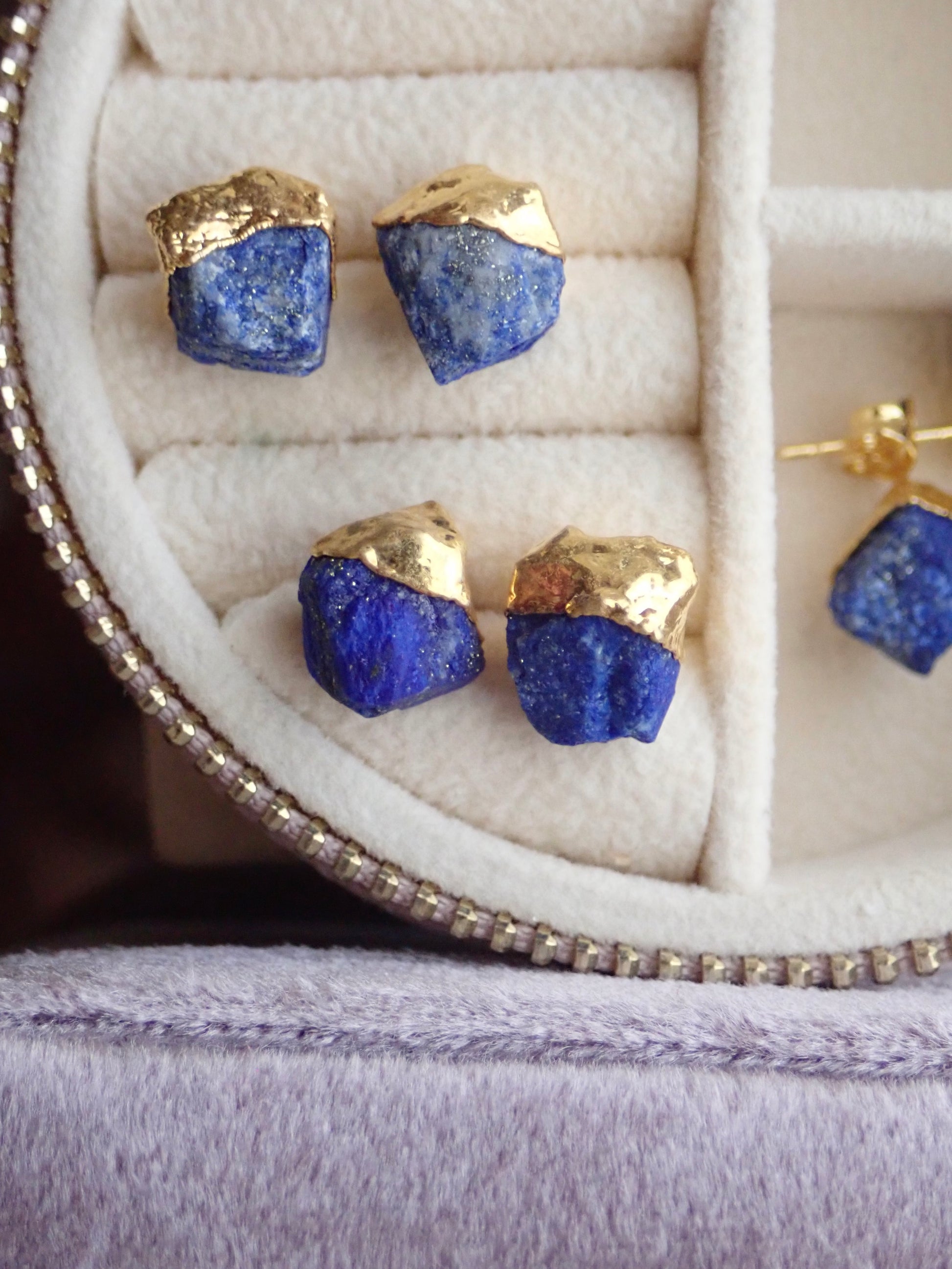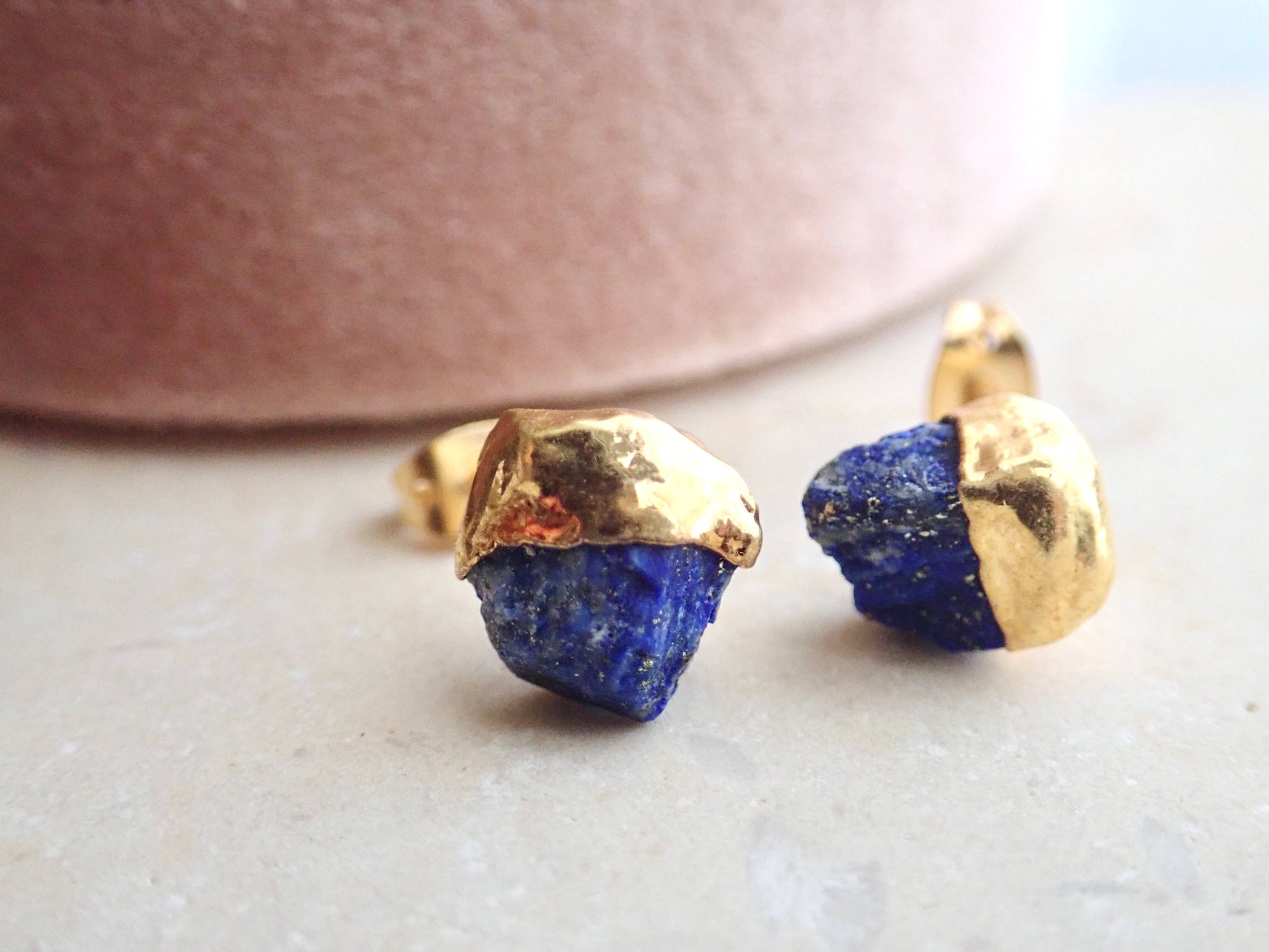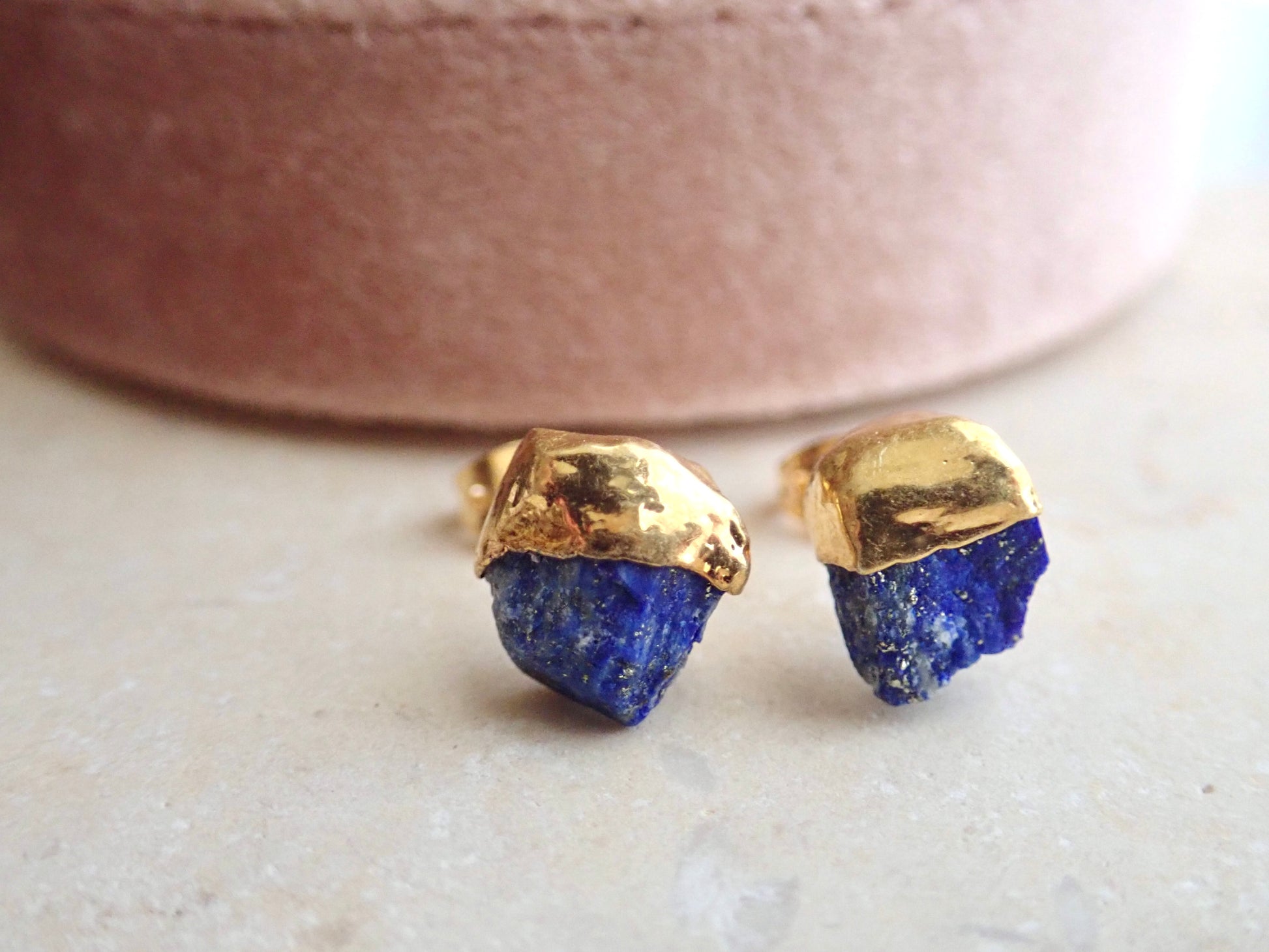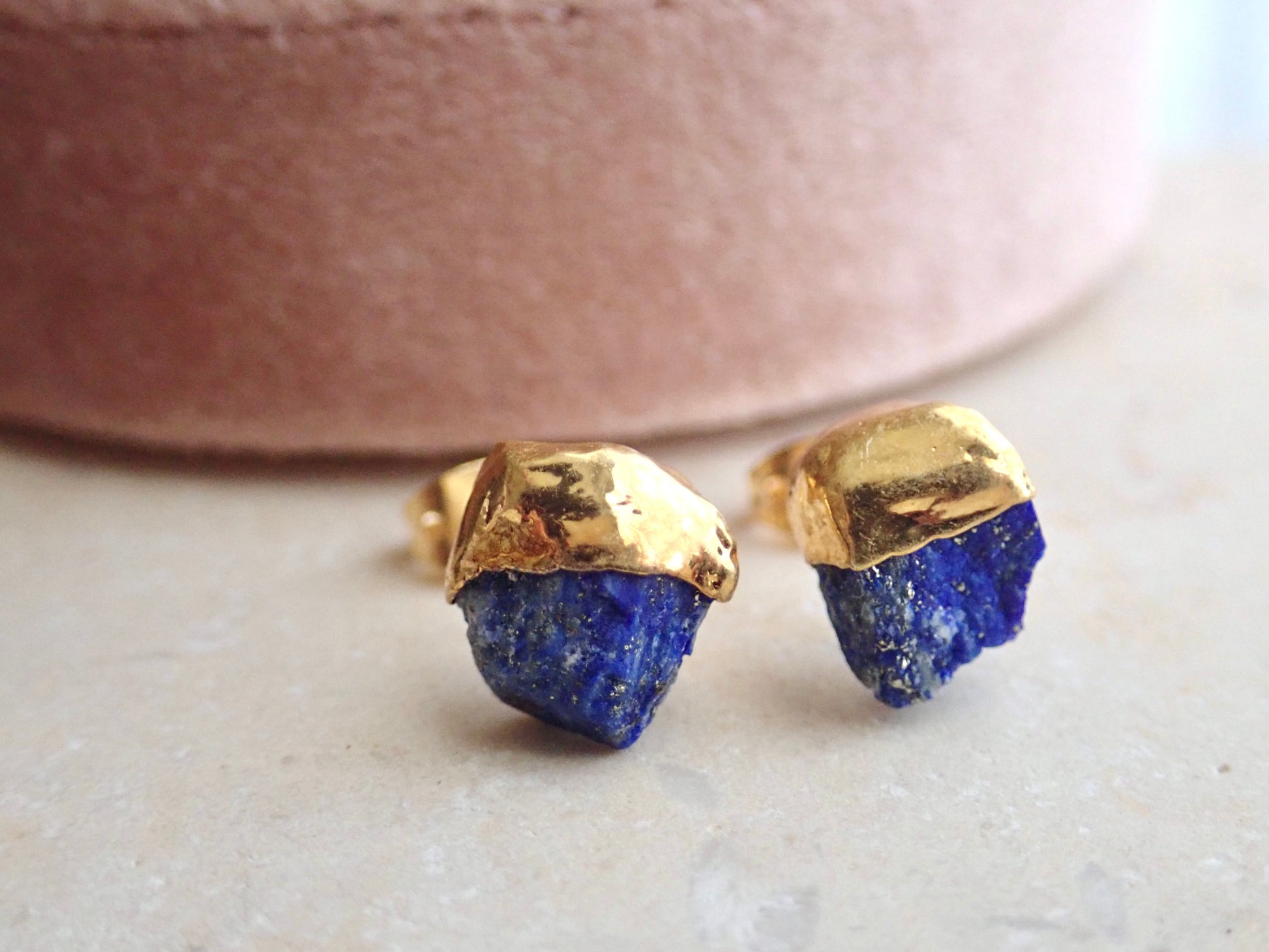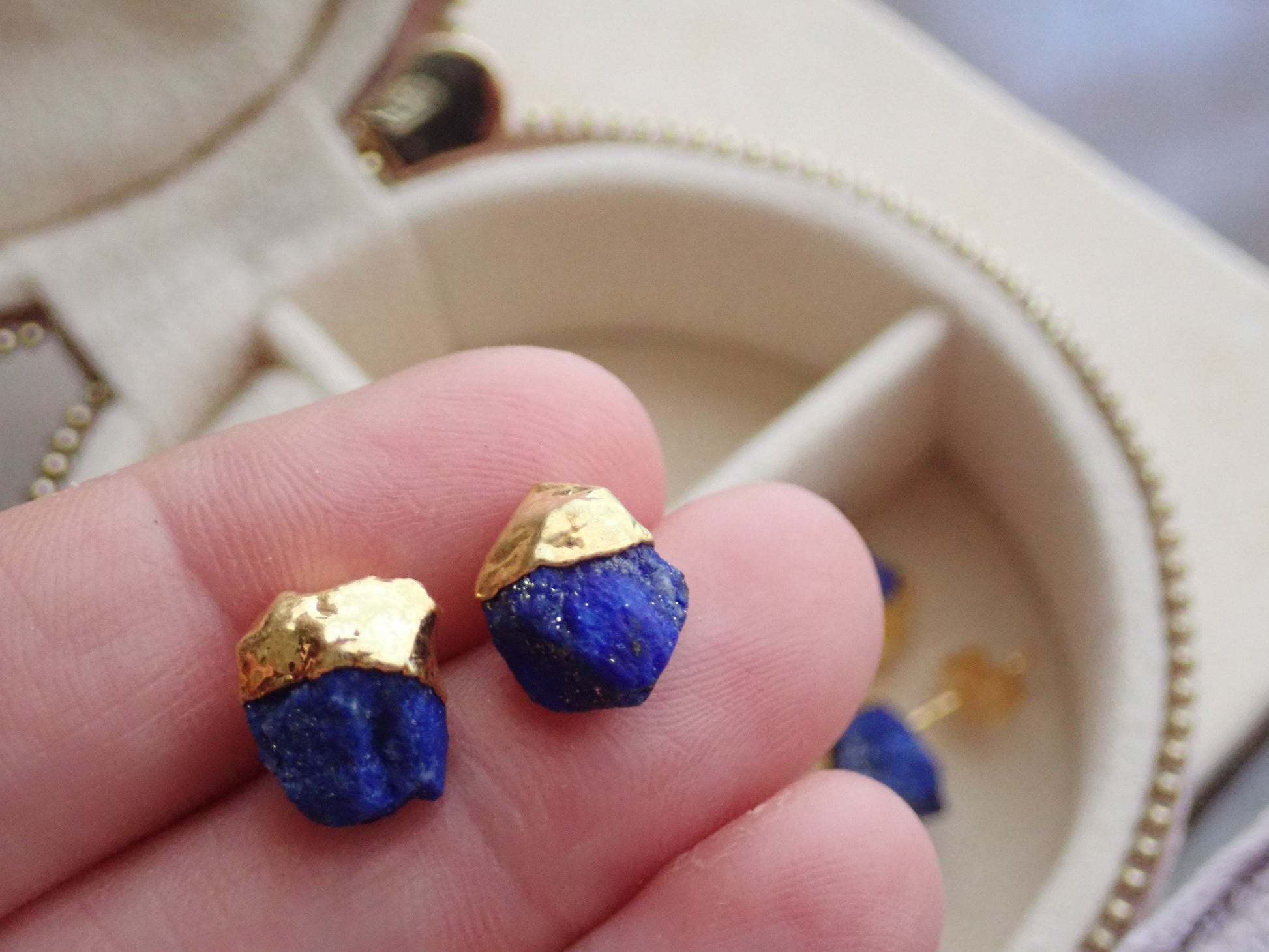 All stones are natural and thus no two are exactly alike. All are beautiful and very similar to the ones in the photos. Last photo shows other stones available in the shop. This listing is for one pair of lapis earrings only.
