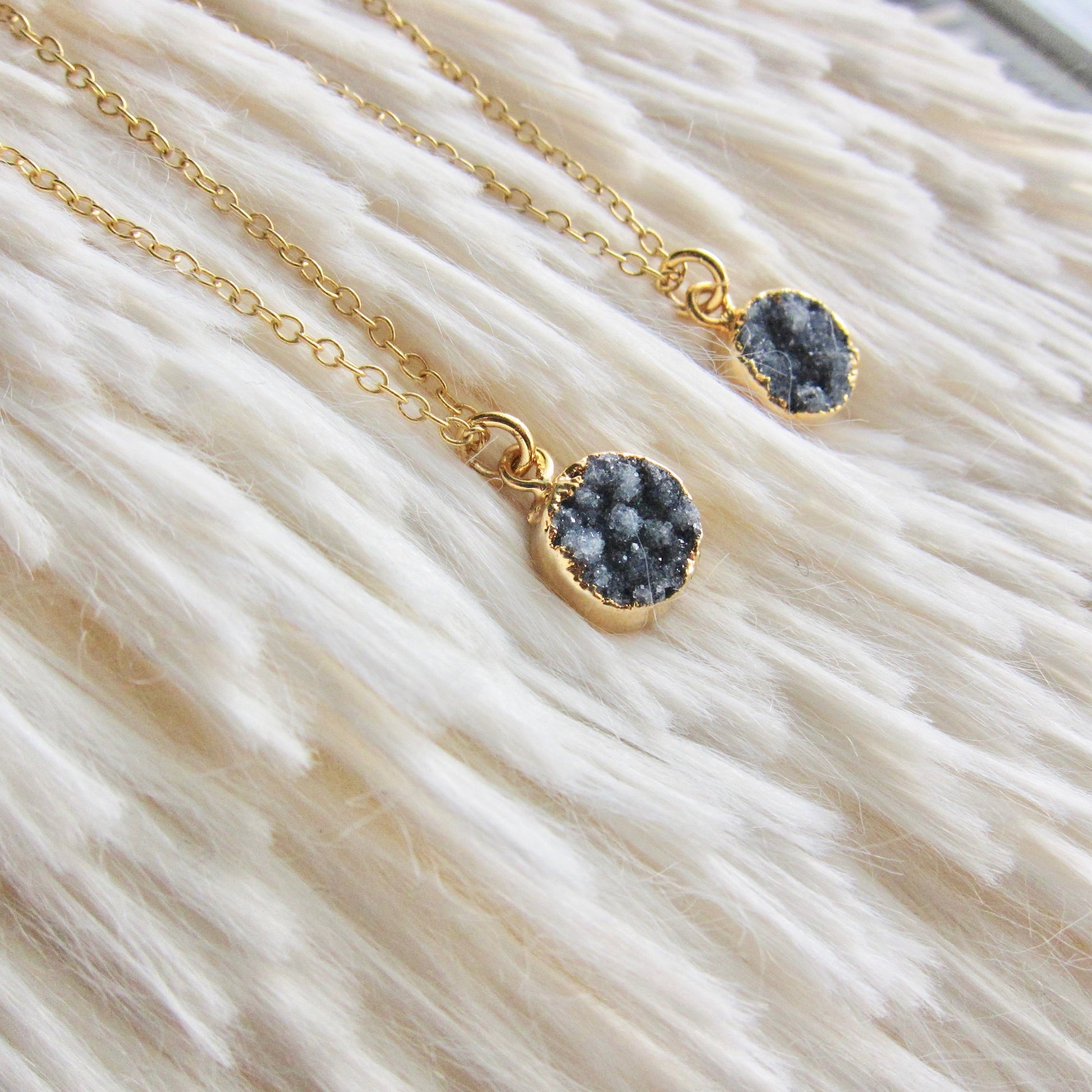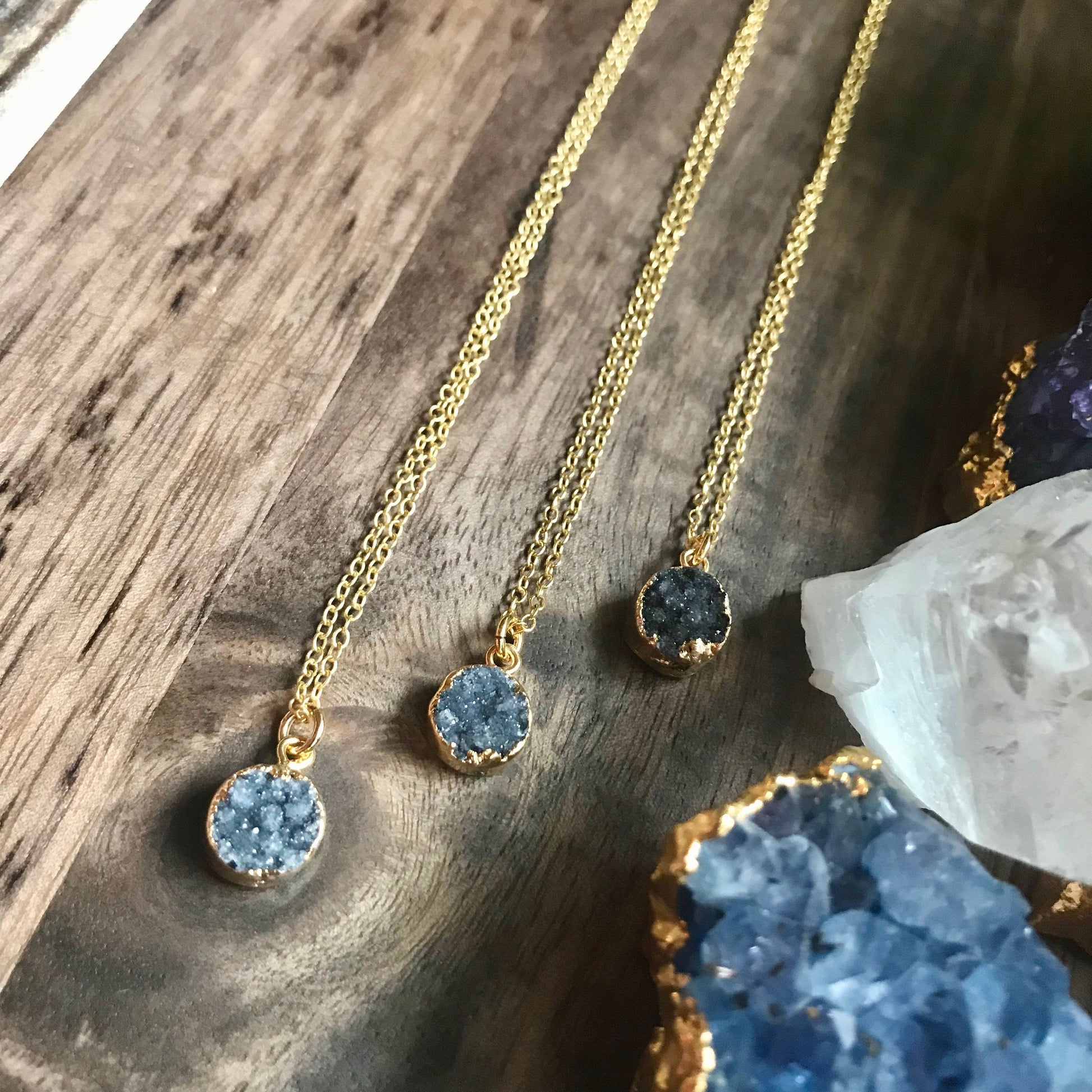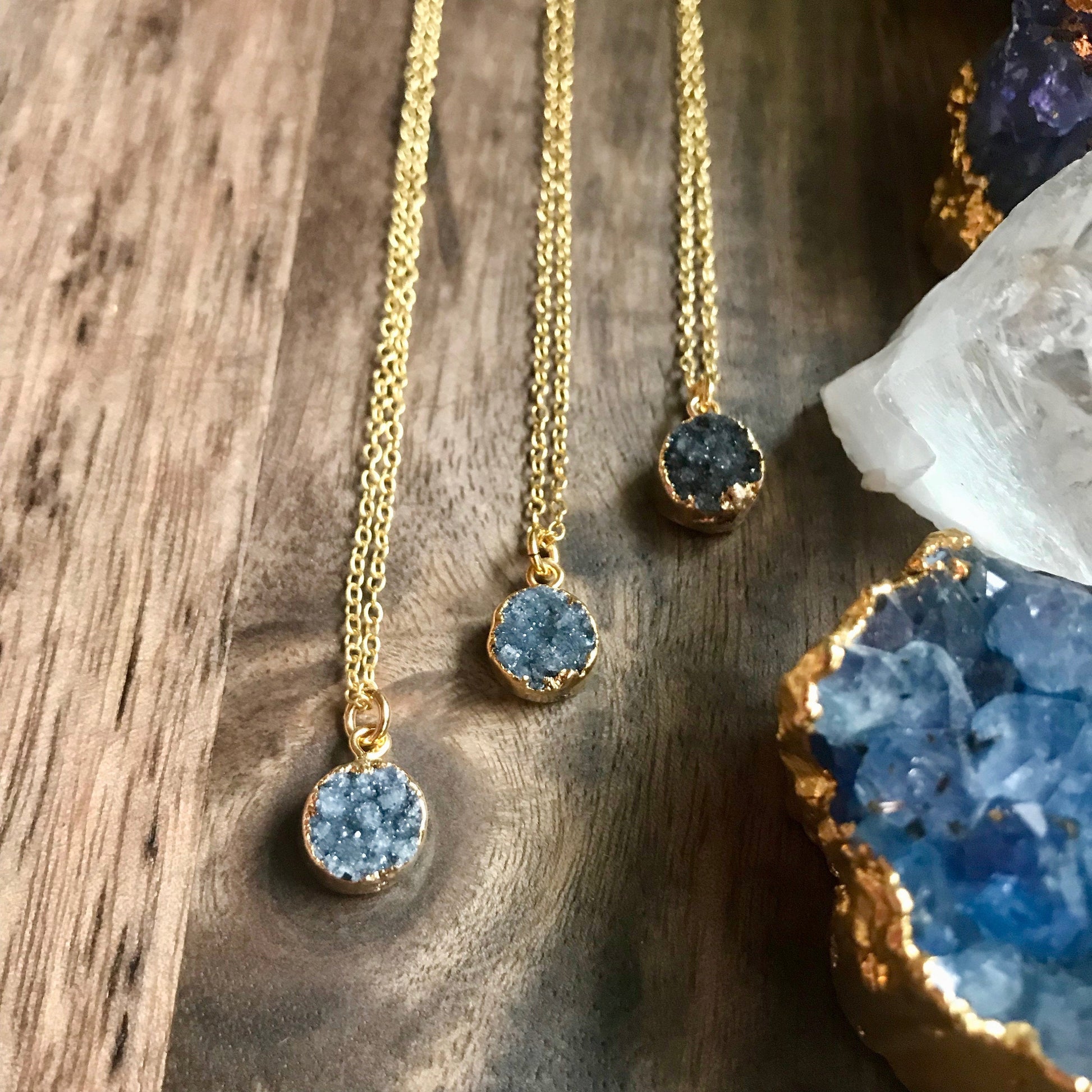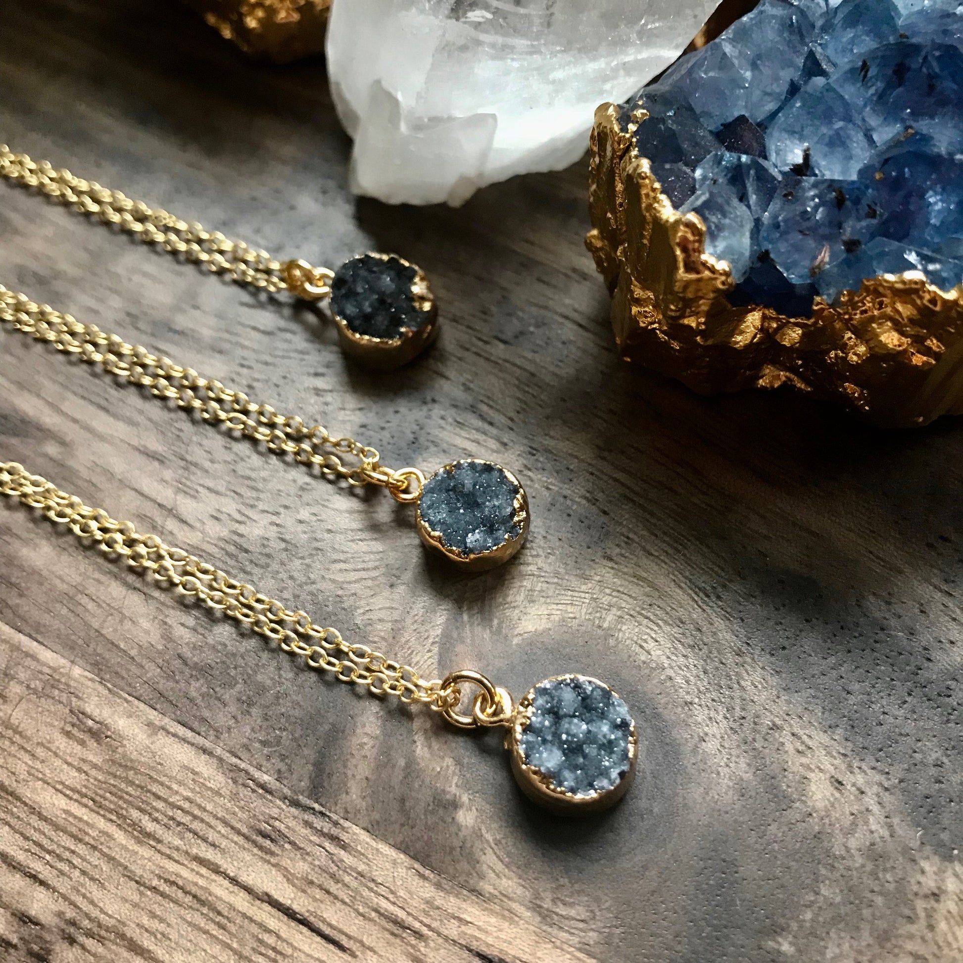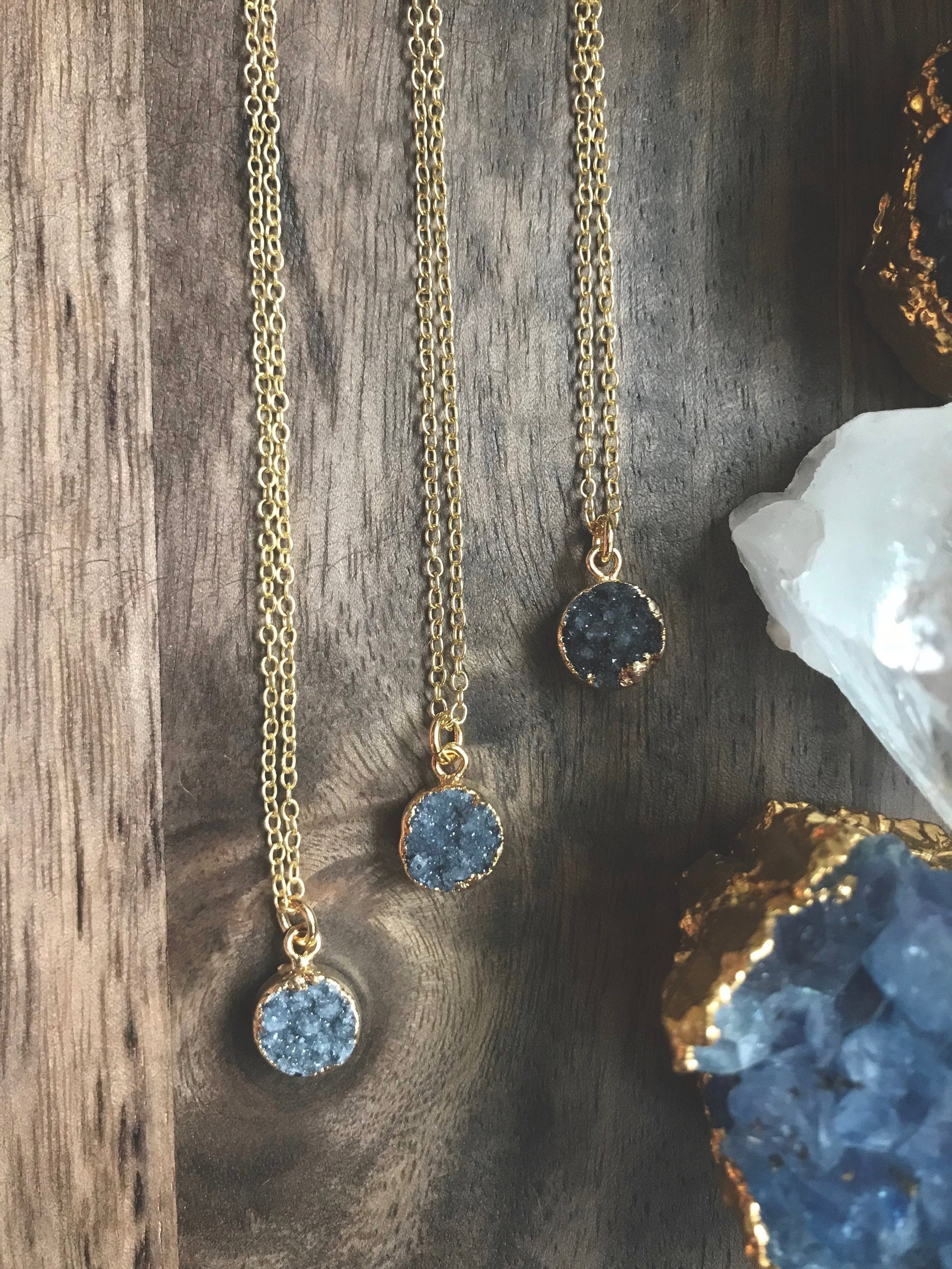 Dainty Blue Druzy Necklace