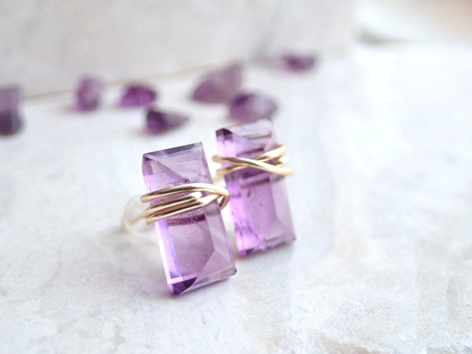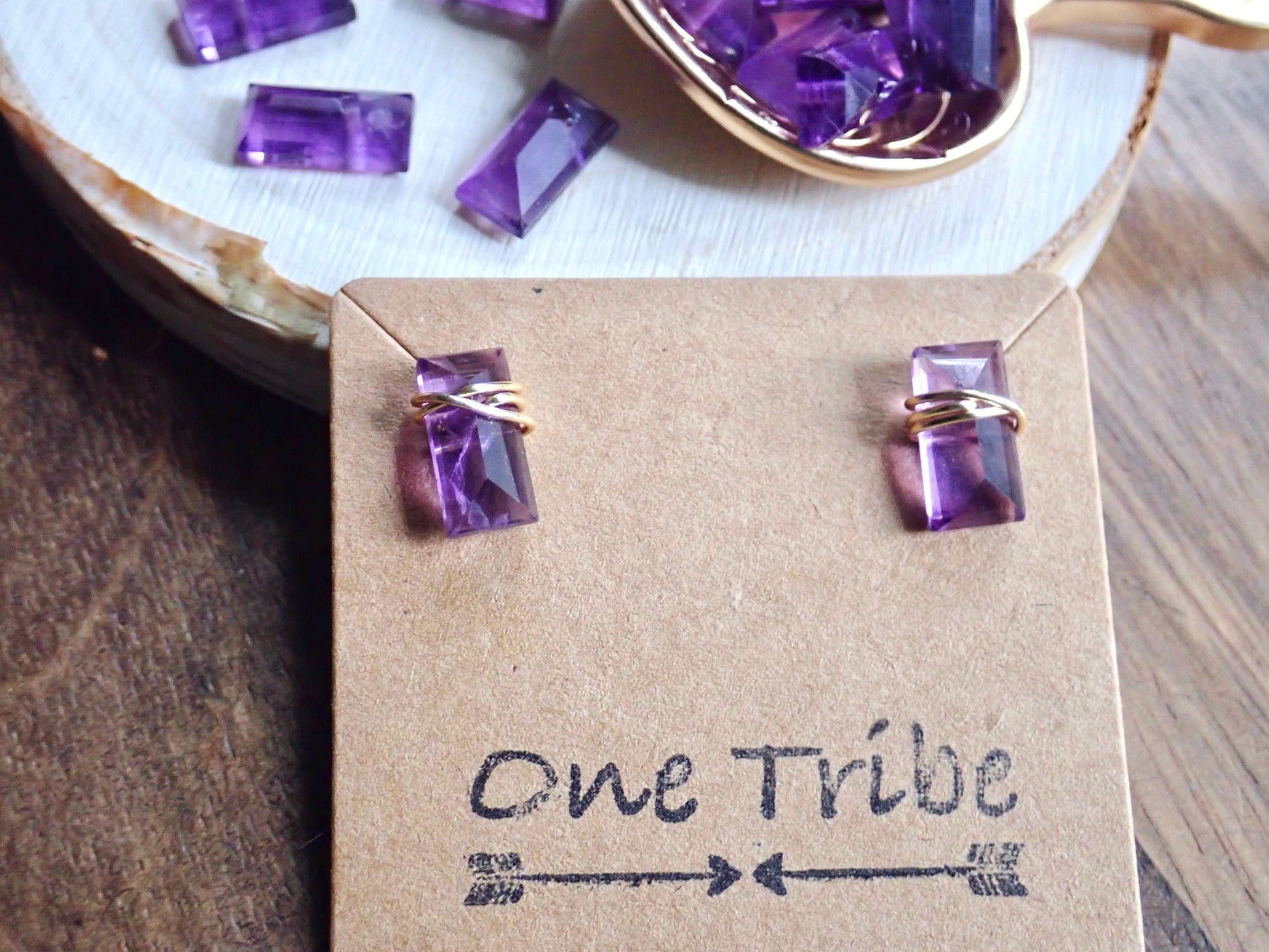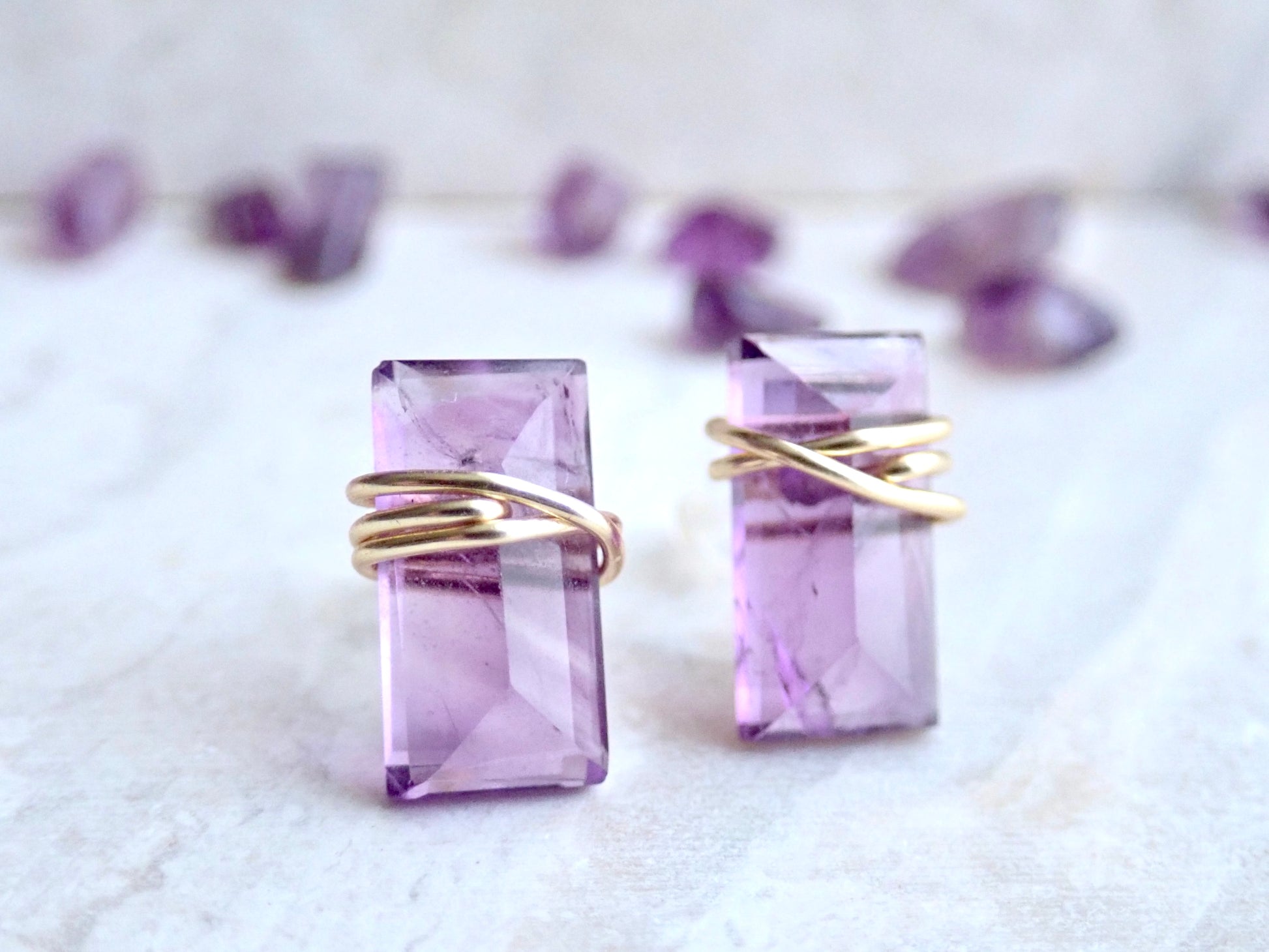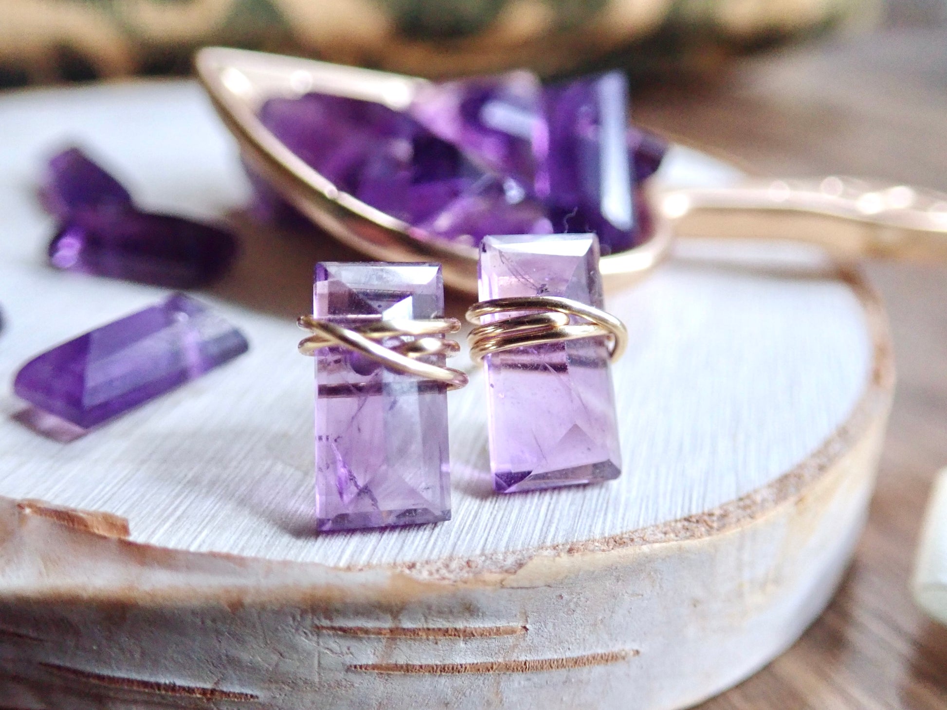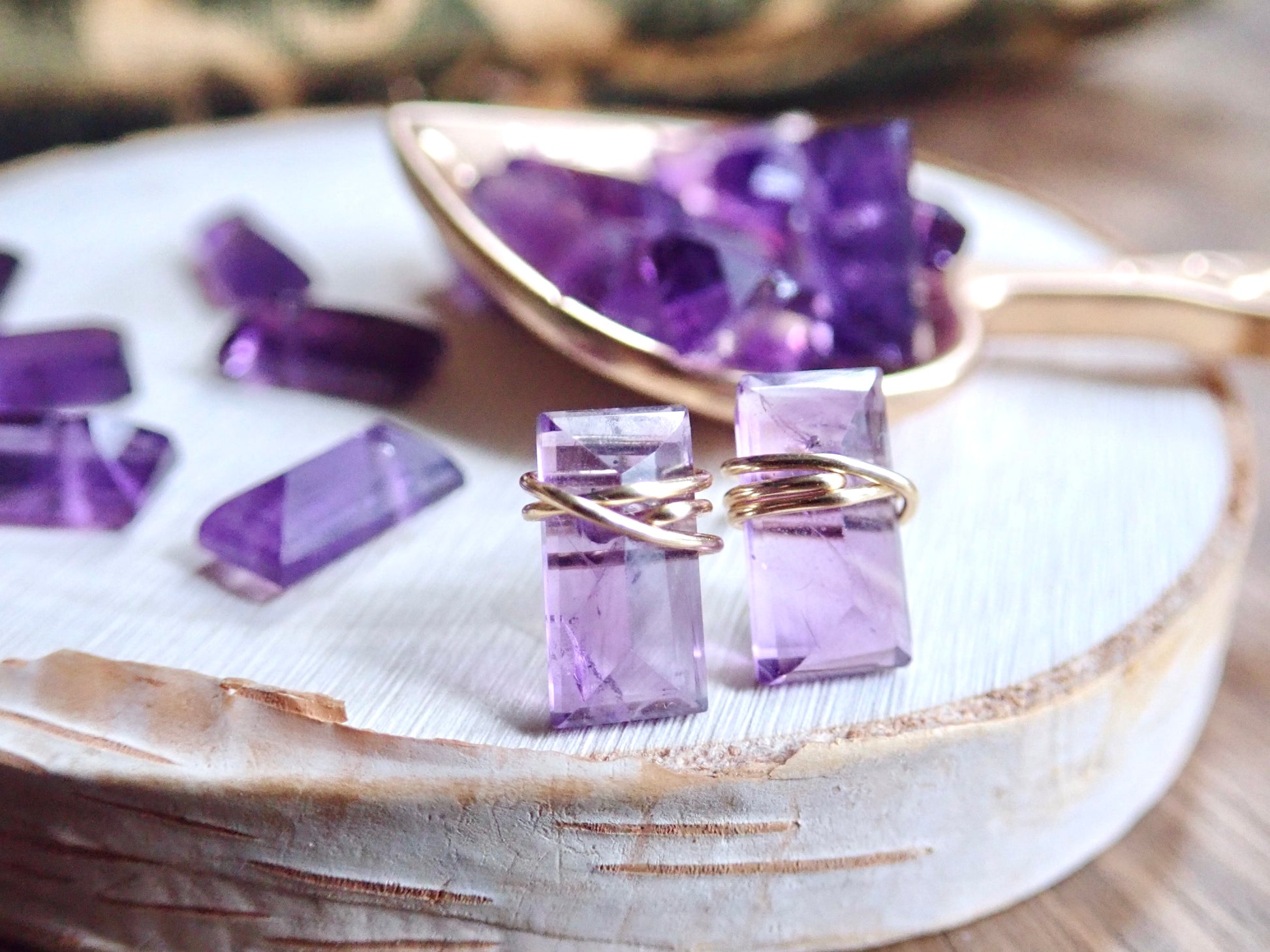 These little wire-wrapped studs are a celebration of the regal beauty of Amethyst. These earrings are a testament to the enduring charm of this mesmerizing gemstone. Choose your preferred metal finish and experience the clarity, balance, and inner strength that amethysts bring to your jewelry collection.