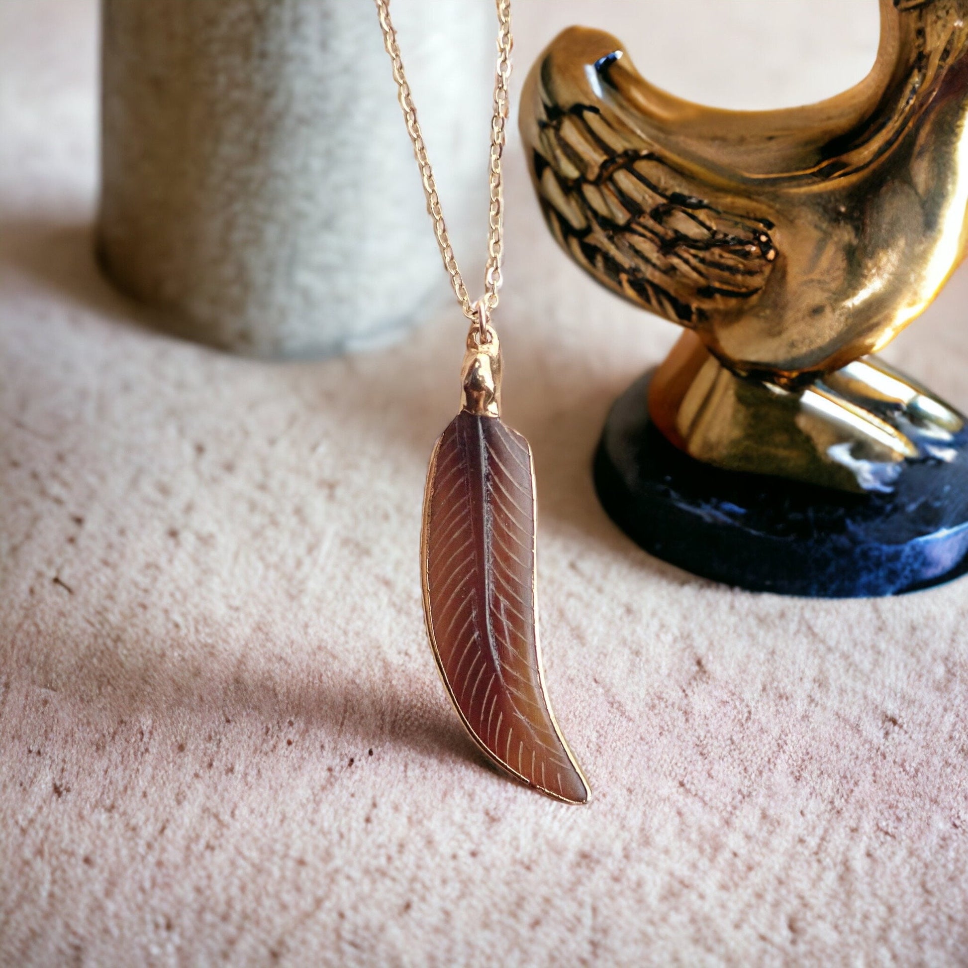 Hand Carved Feather Pendant – Gold Filled Chain, Tribal Boho Vibes