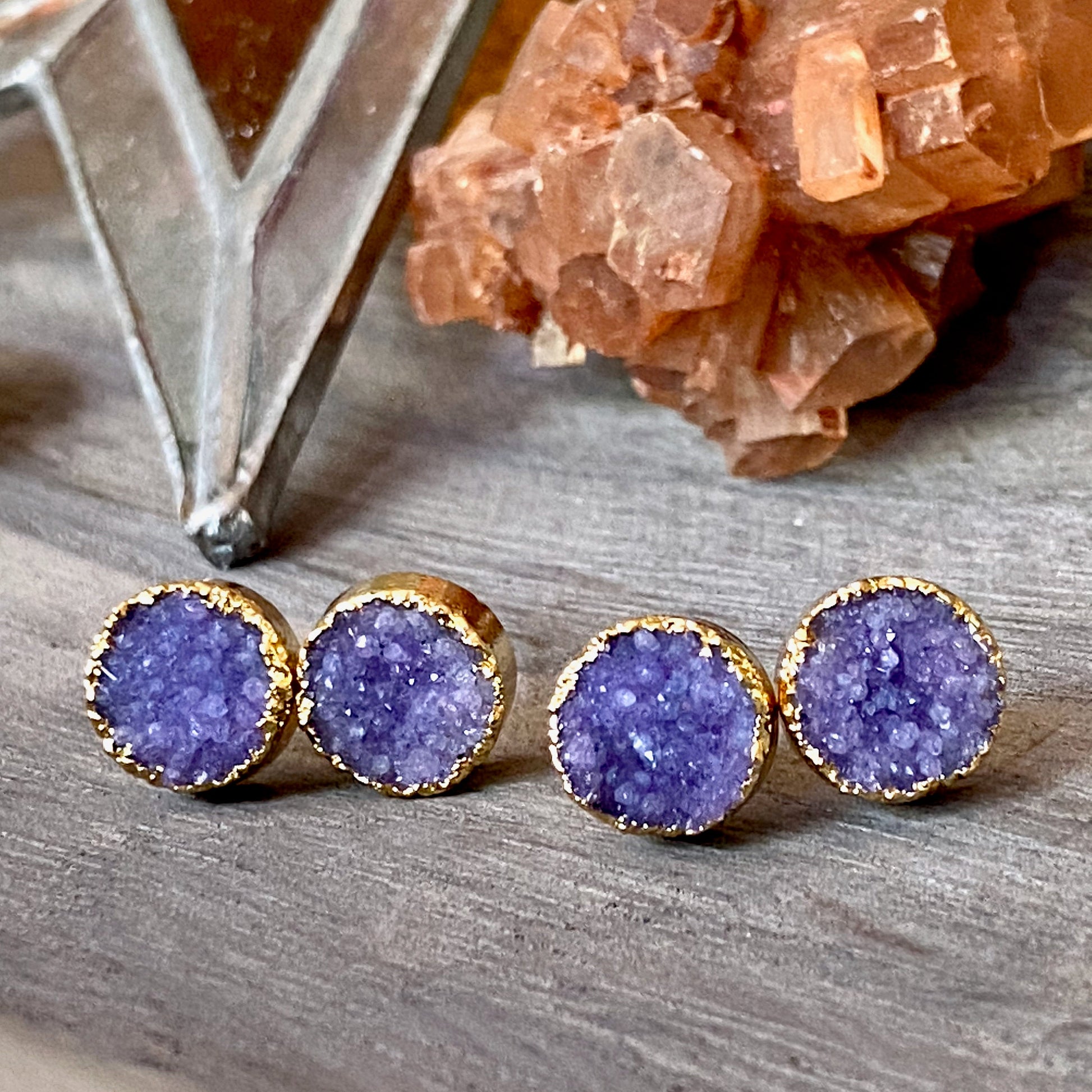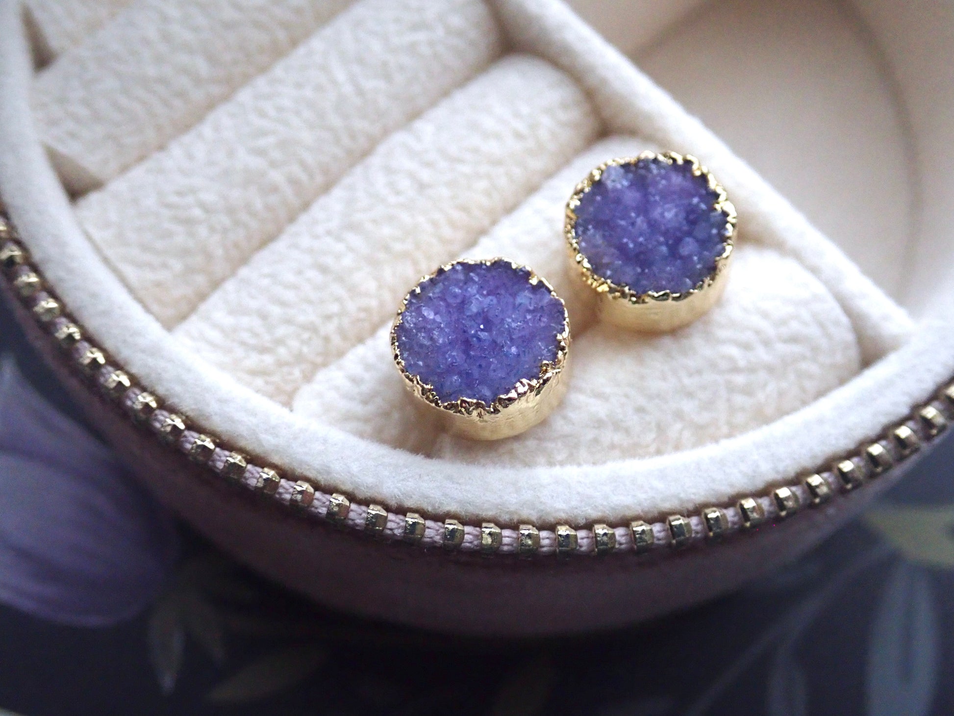 Everyday earrings that pack a punch. Who doesn't love a little sparkle? With these dainty little beauties you can wear that unmistakable druzy shimmer every day of the week. Super hot right now, these druzy stones in subtle colors go with so many looks...beachy, tribal, boho, hippie, whatever style you call your own these will fit right in. Great for every day wear..super light and carefree. The stones are electroplated in 24k gold. Each set is unique and varies in color as can be seen in the photos.