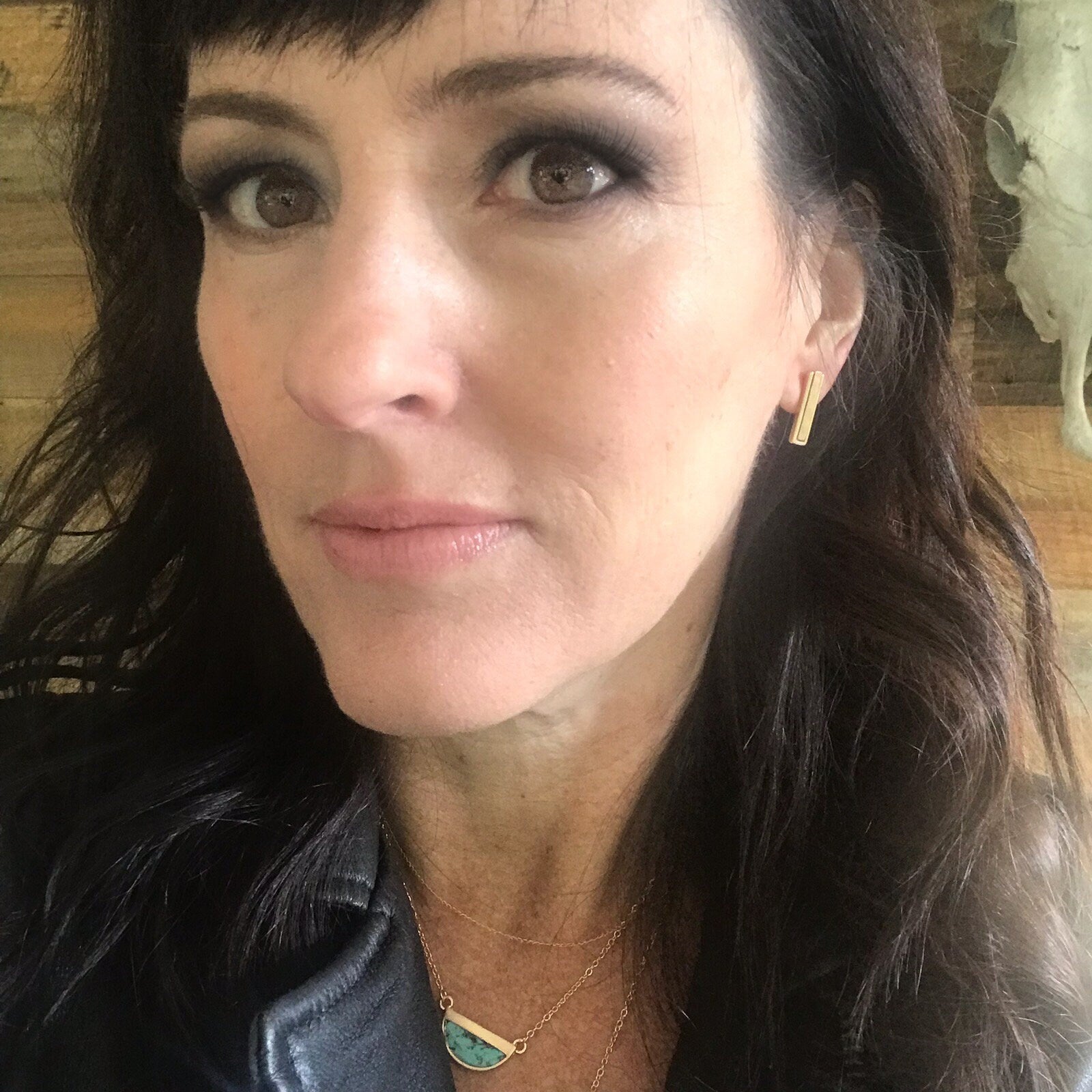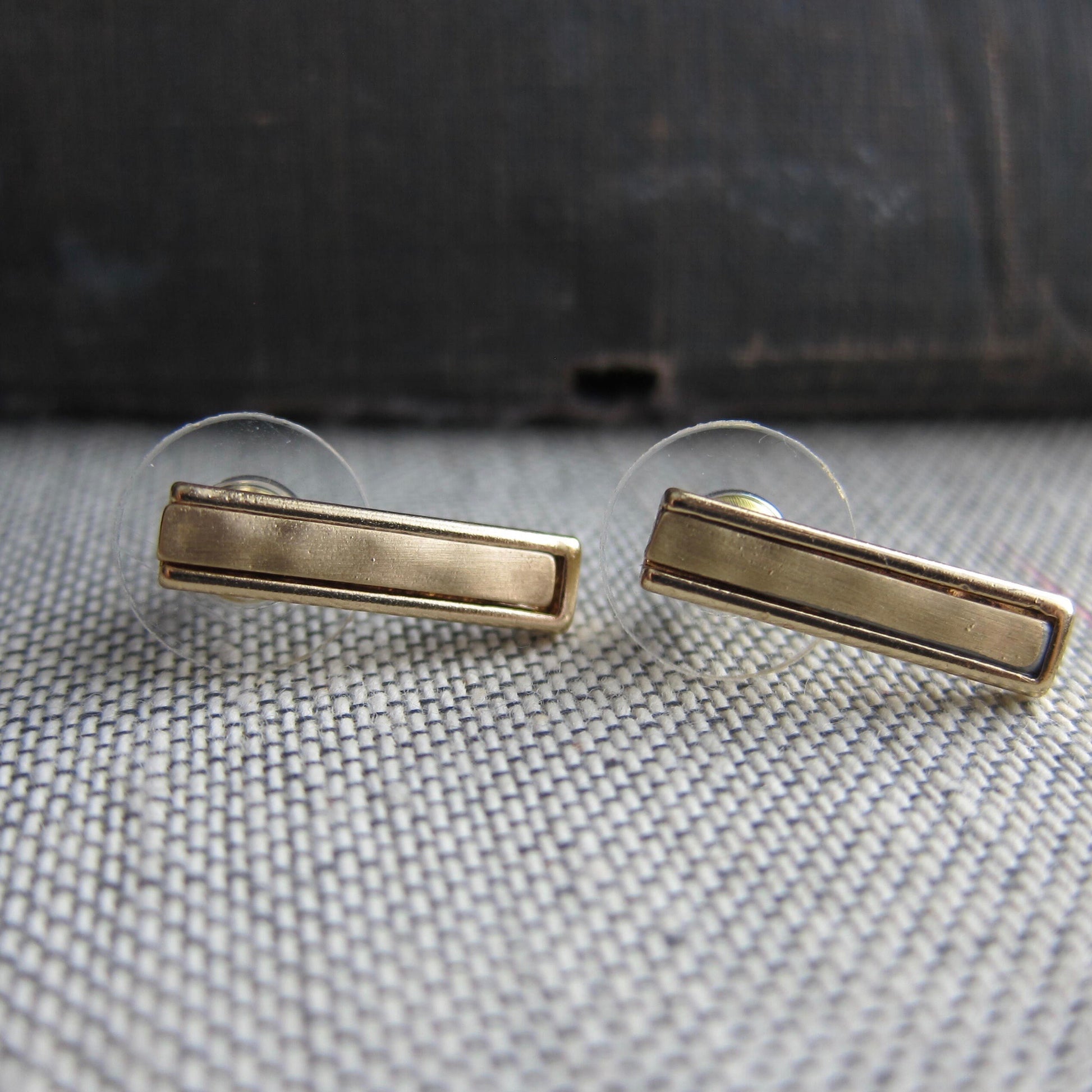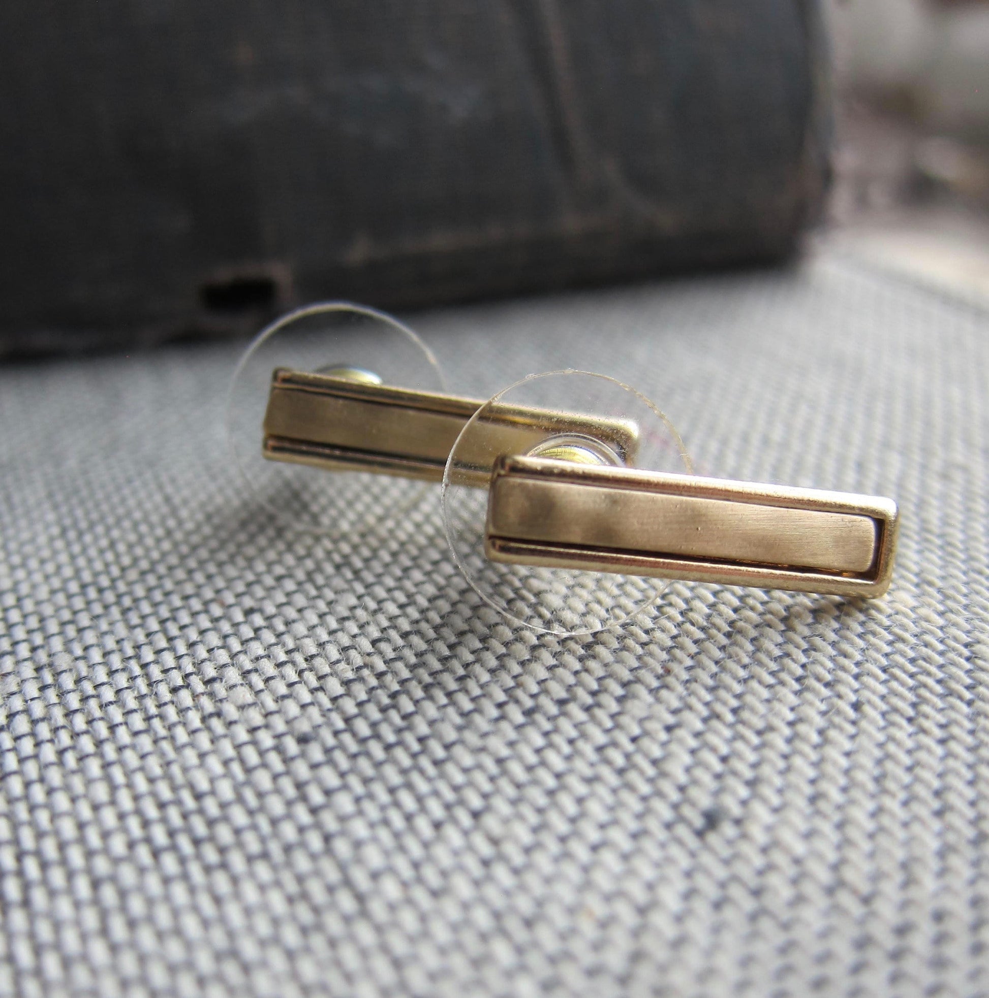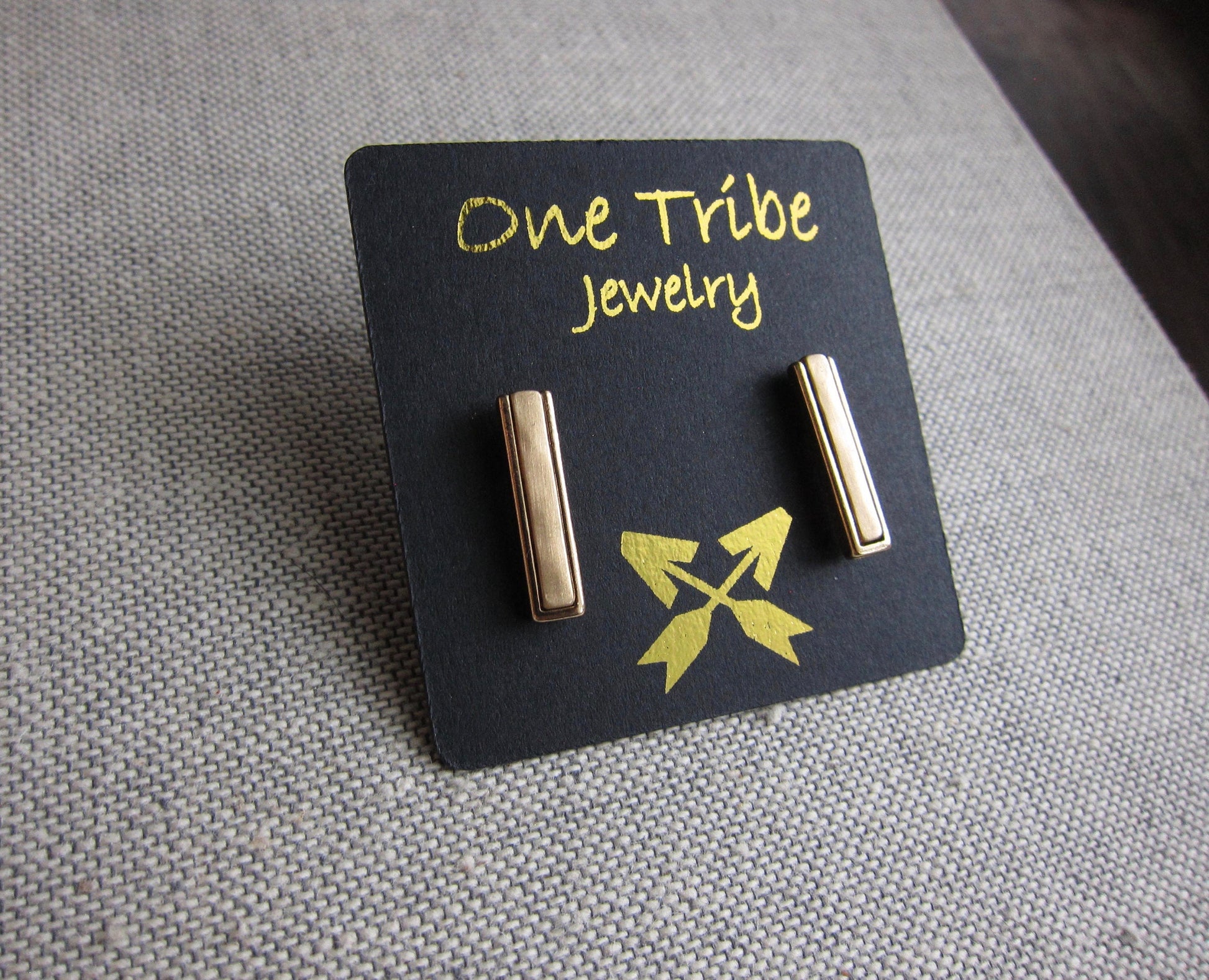 We love these minimalist gold bar earrings. Shiny brass inset with matte brass center. Minimal doesn't have to be boring!!