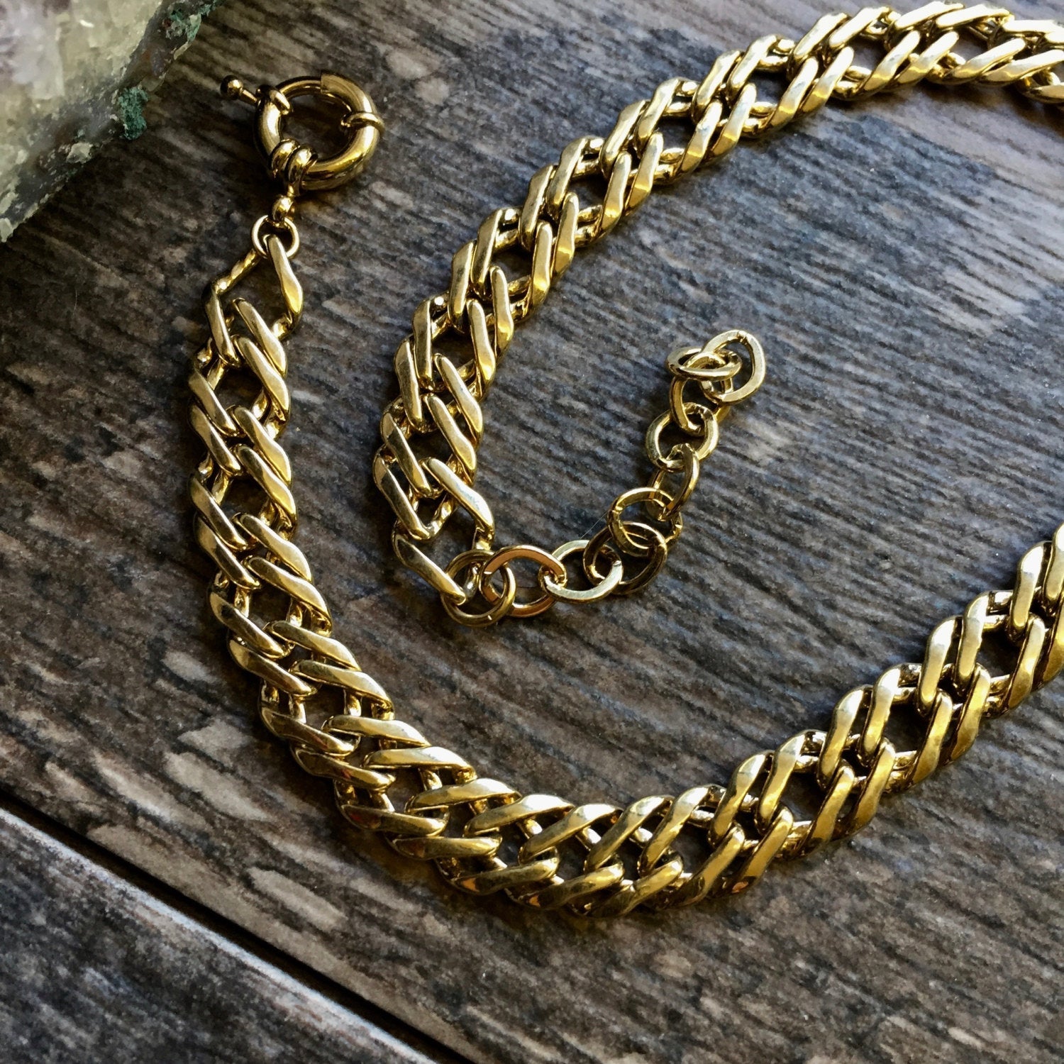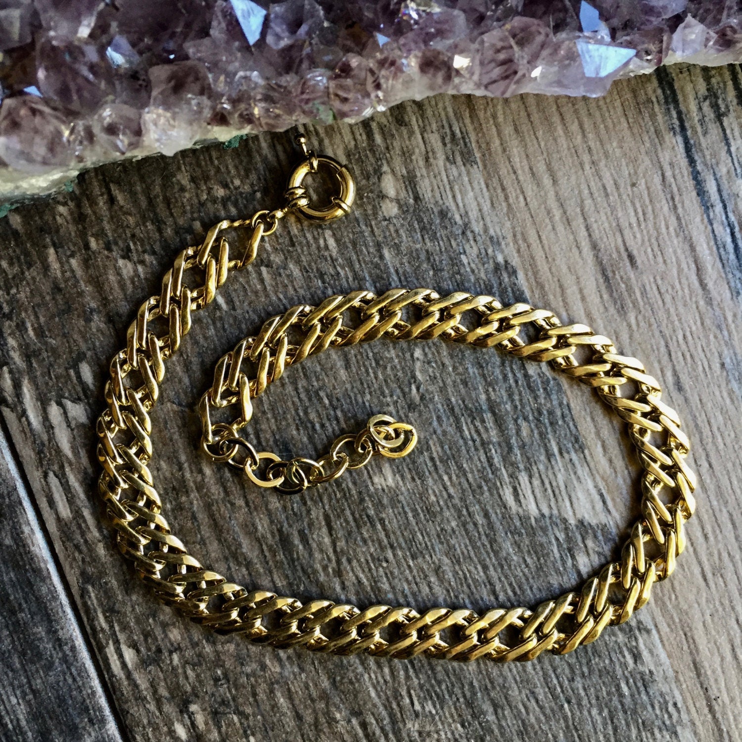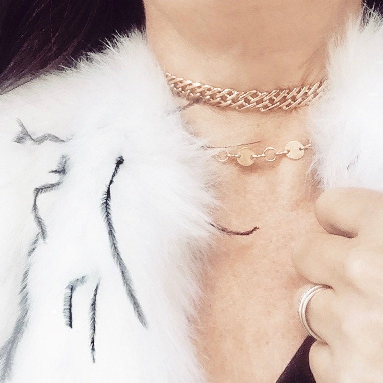 Get your shimmer on! A dazzling little choker necklace you can wear alone or layer for a perfect boho vibe. A nice thick, chunky chain which lays super sleekly around your neck. At a generous 1/3 of an inch wide this chain will not go un-noticed. Super sexy! All components including the super cool chunky spring clasp and extender chain are all high quality gold overlay.