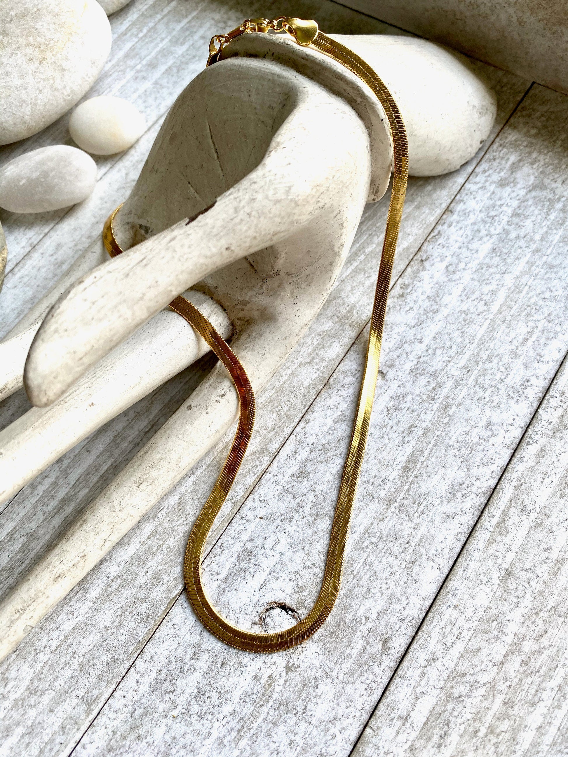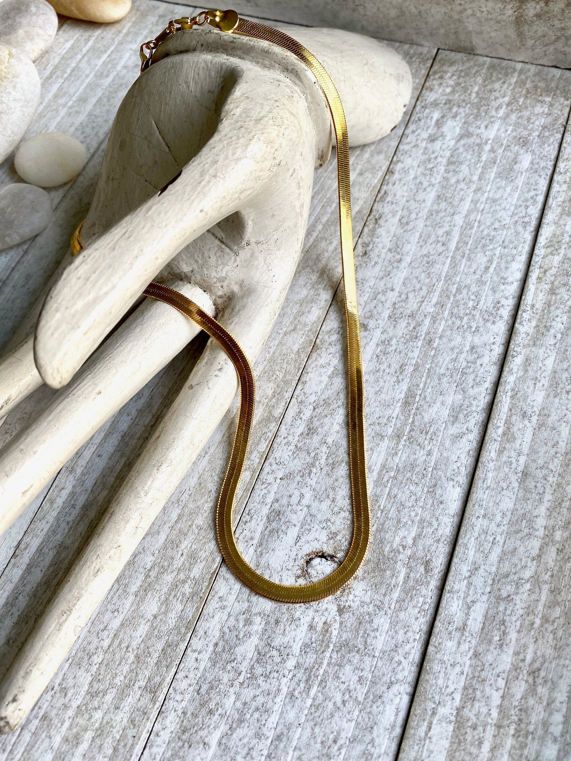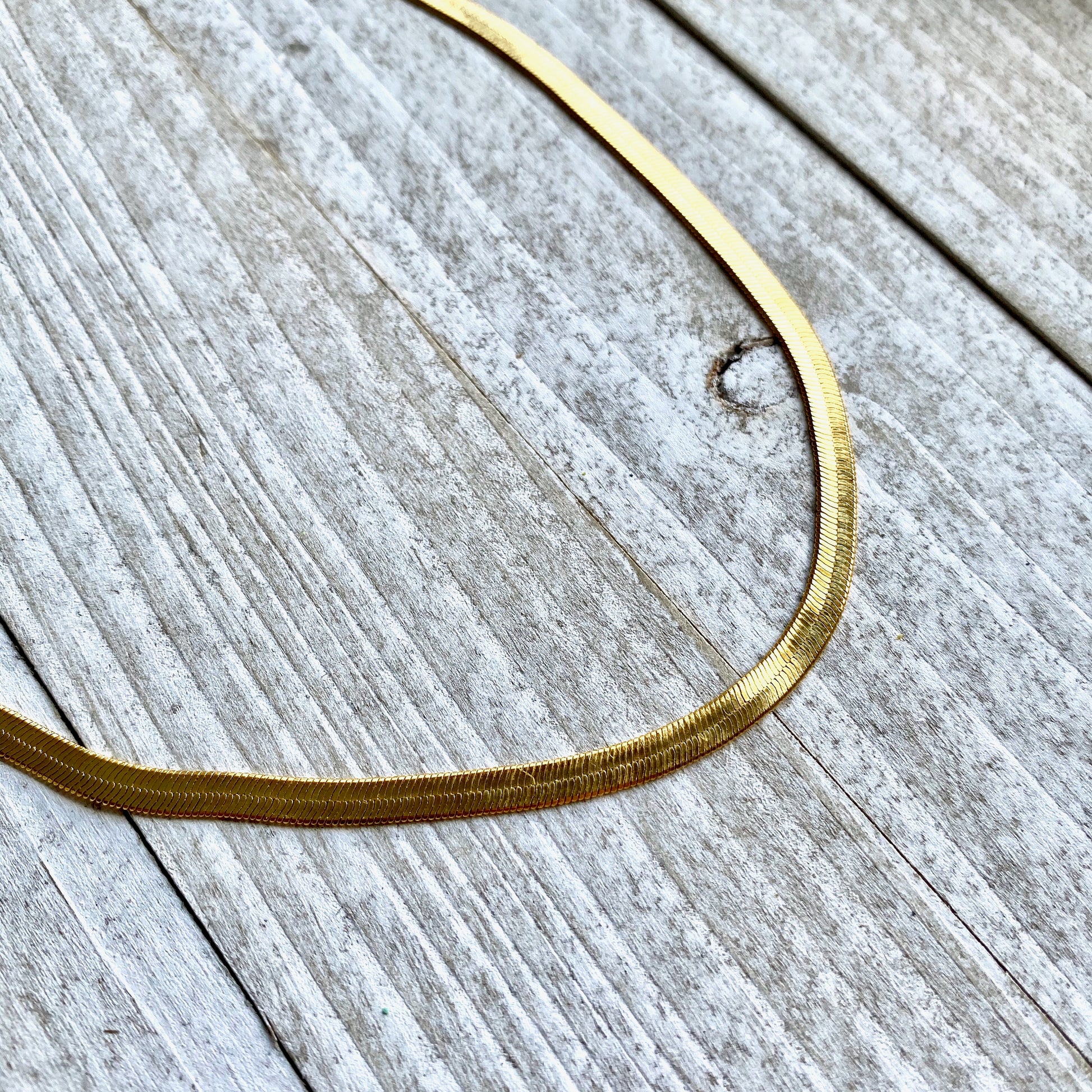 Get your shimmer on! An amazing minimalist gold herringbone chain necklace will be your new go-to whether worn alone or layered with other pieces. A little throwback to the 80's but with a definitive modern edge. 24k gold plated over brass makes this supple high-quality chain totally affordable for gifting or for treating yourself!