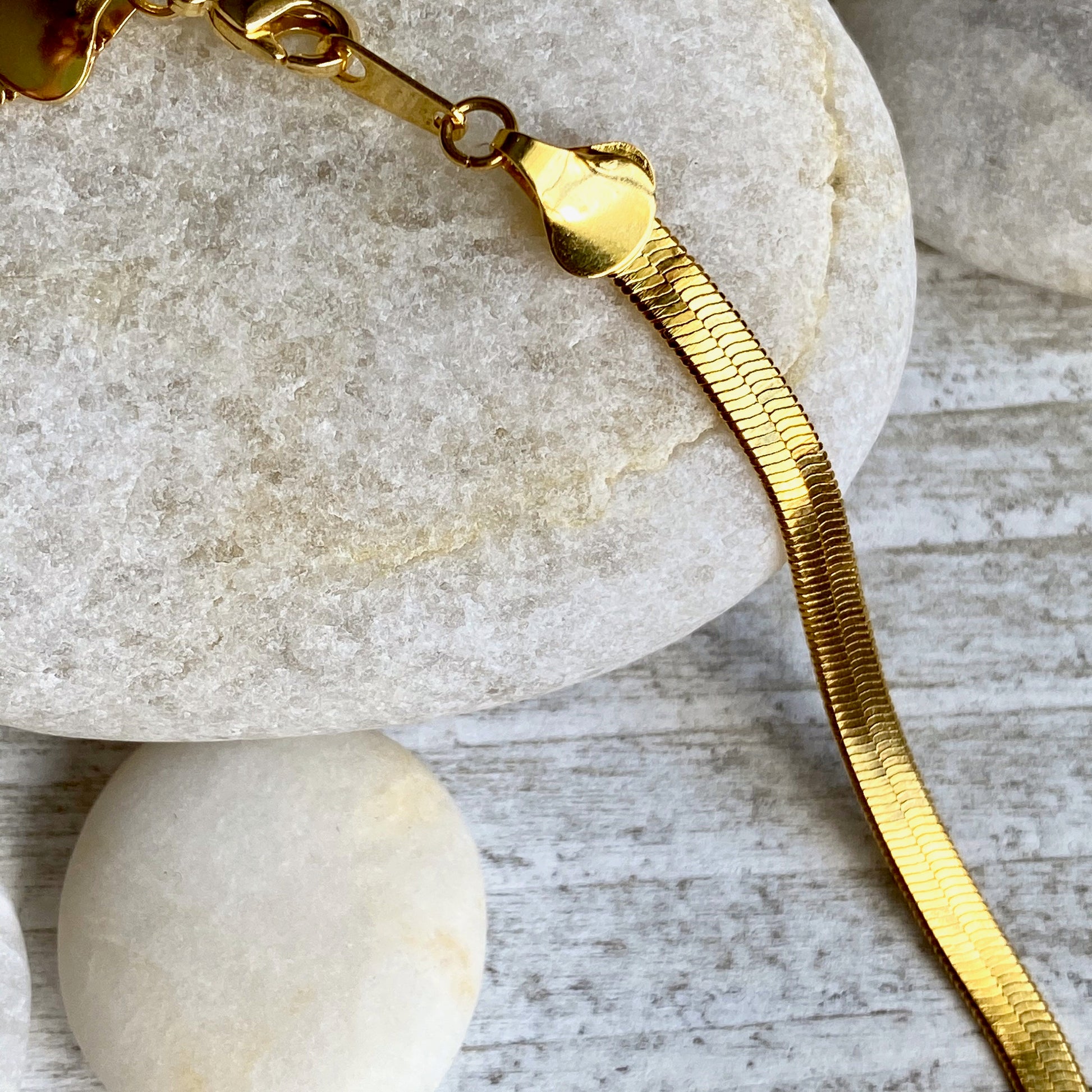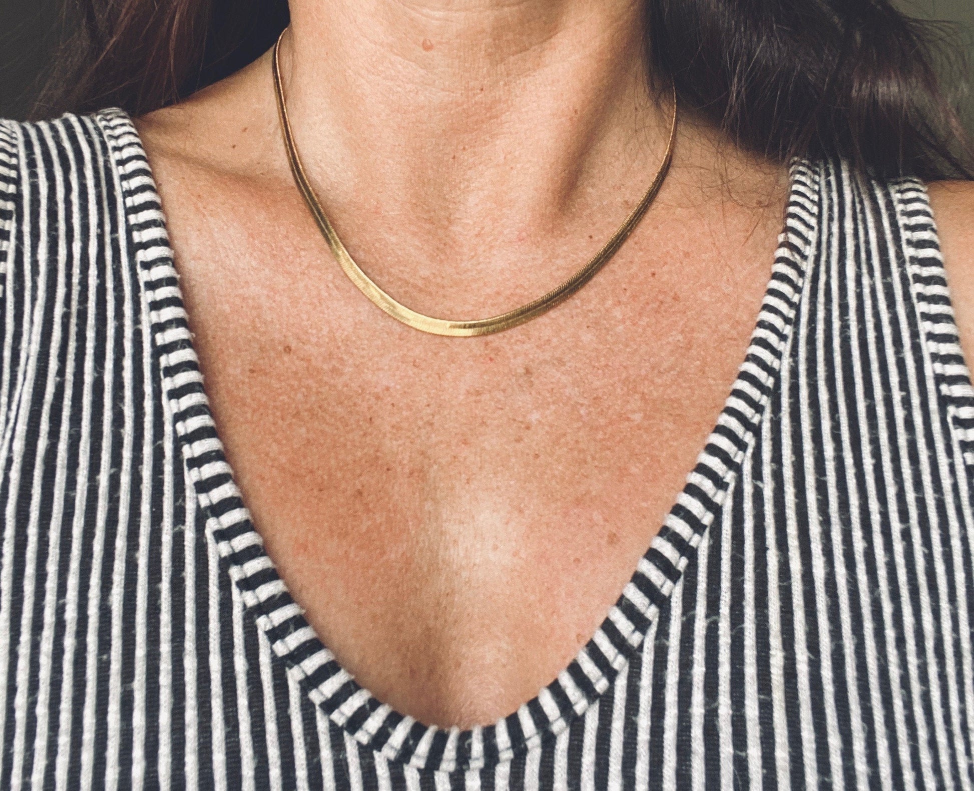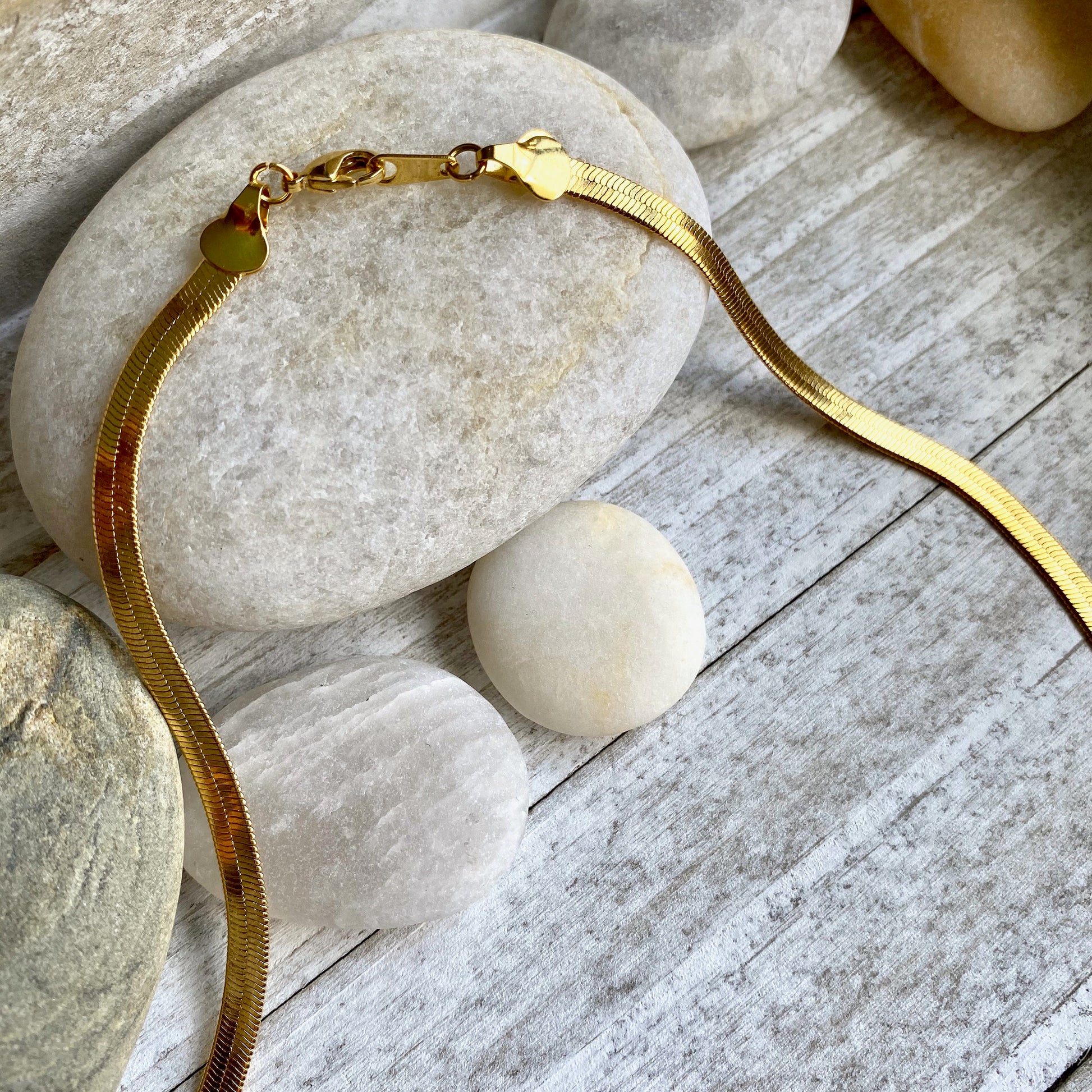 Get your shimmer on! An amazing minimalist gold herringbone chain necklace will be your new go-to whether worn alone or layered with other pieces. A little throwback to the 80's but with a definitive modern edge. 24k gold plated over brass makes this supple high-quality chain totally affordable for gifting or for treating yourself!
