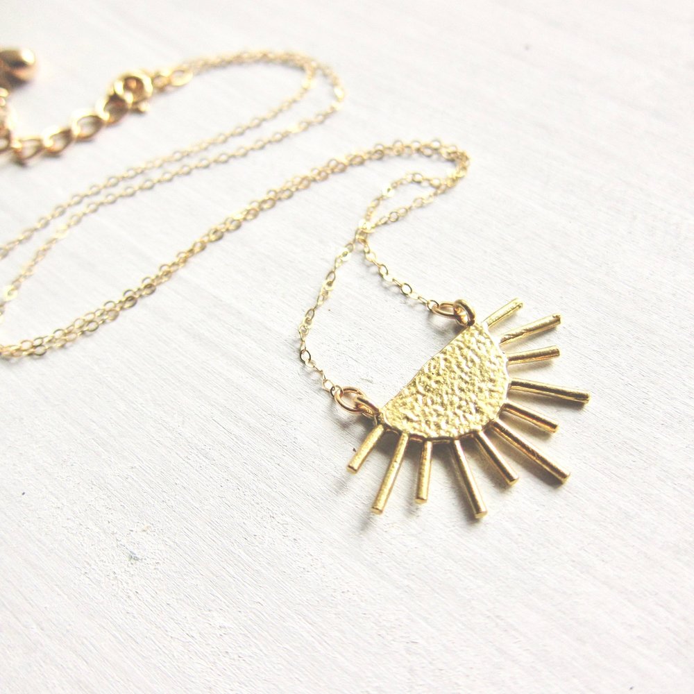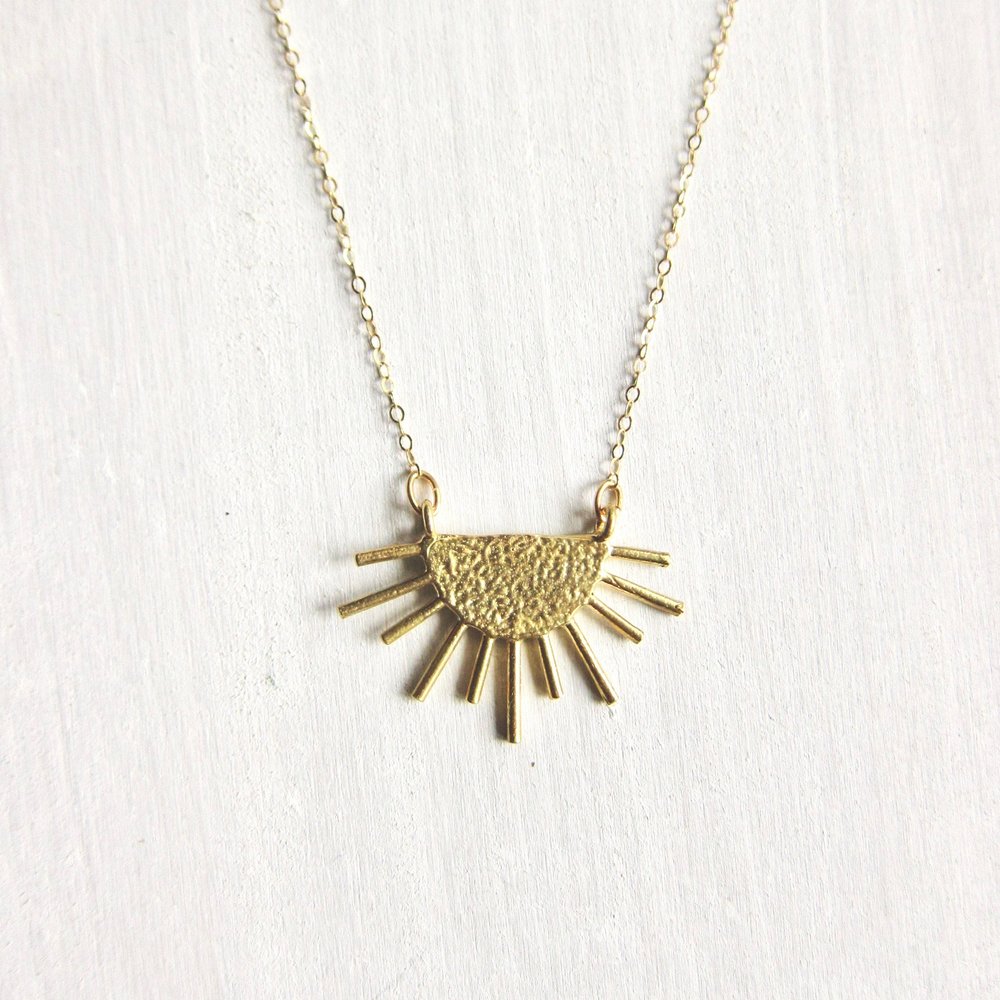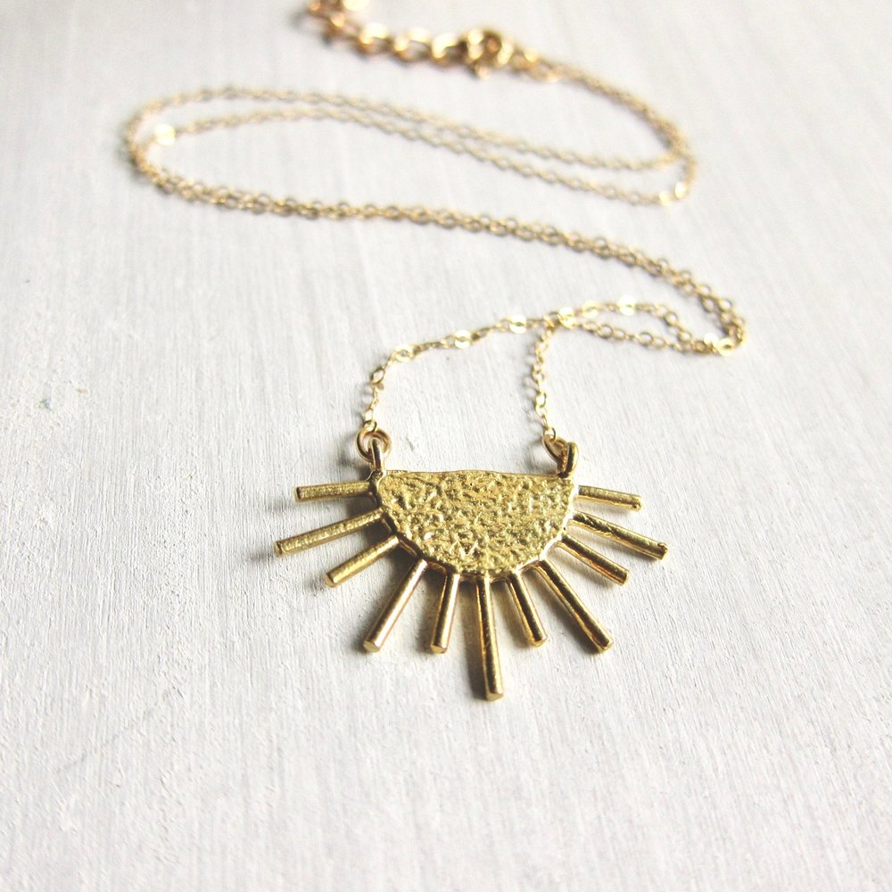 Get ready for summer sunshine with this dainty raw brass sunburst necklace, perfect for layering but also super cute all by itself. The chain is high quality gold fill and is super sparkly and light catching. All hardware is also gold fill.