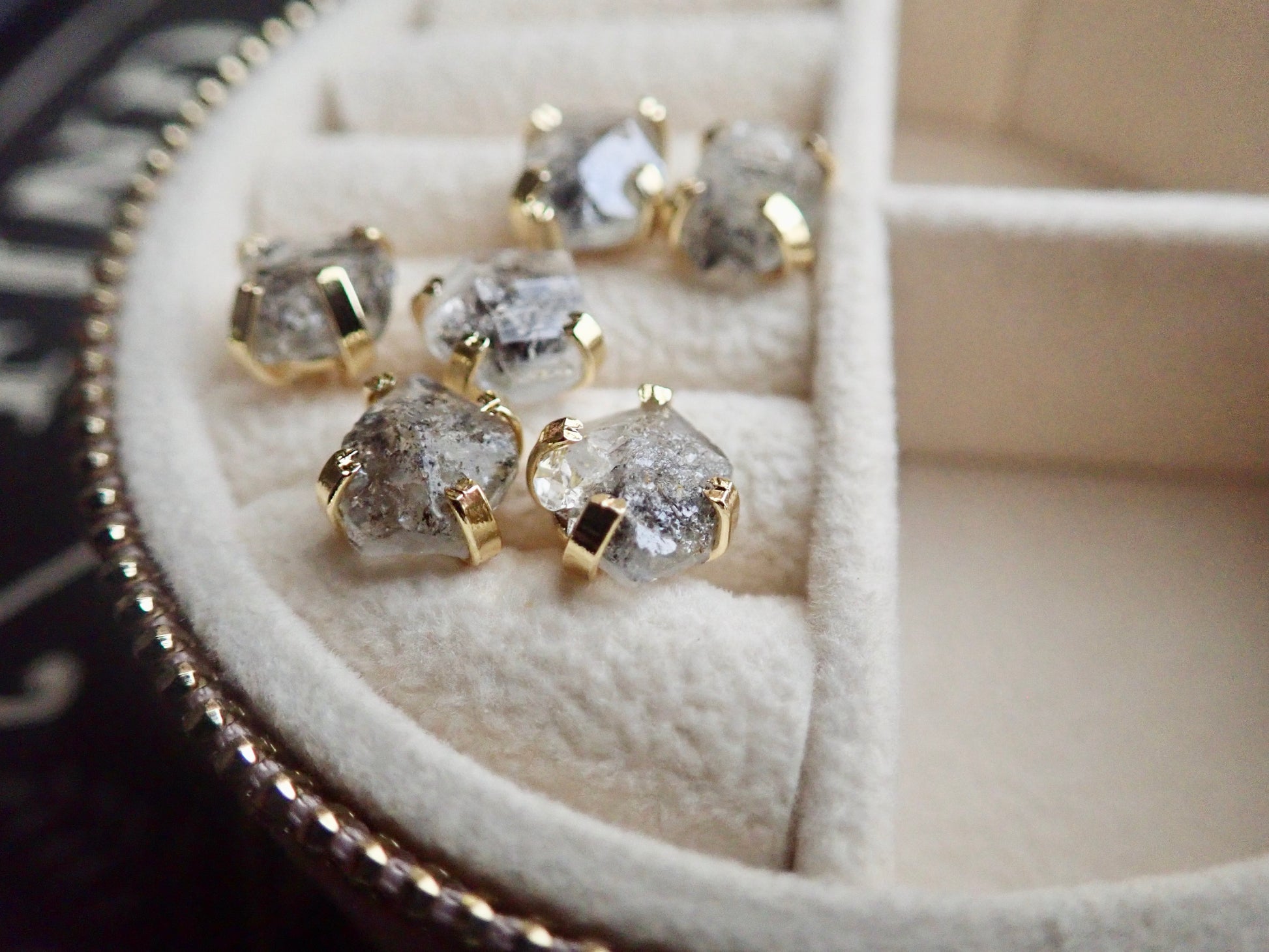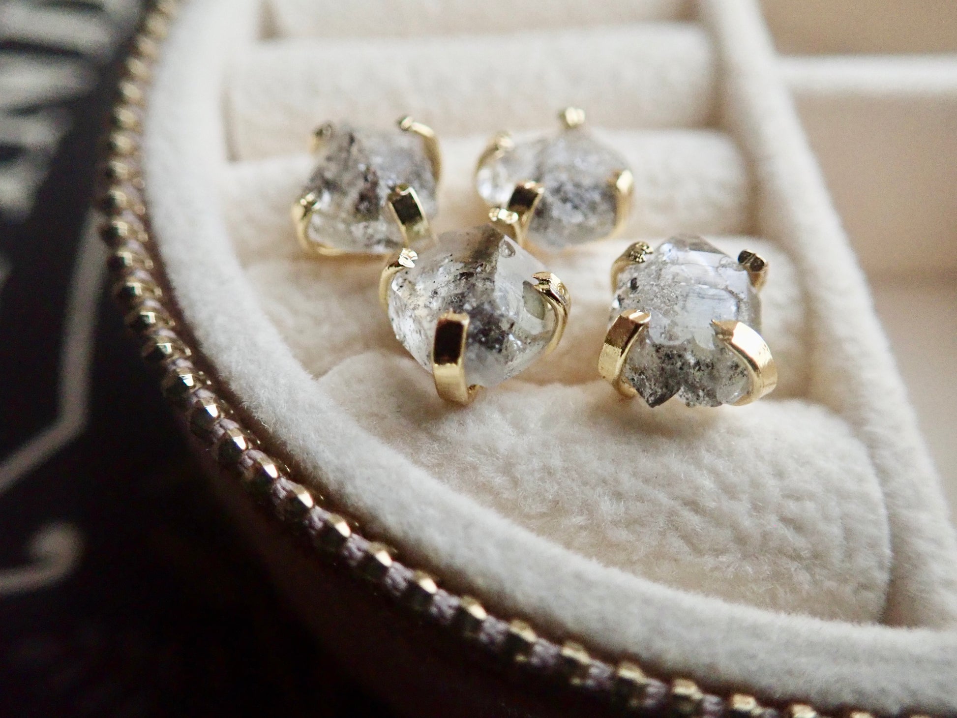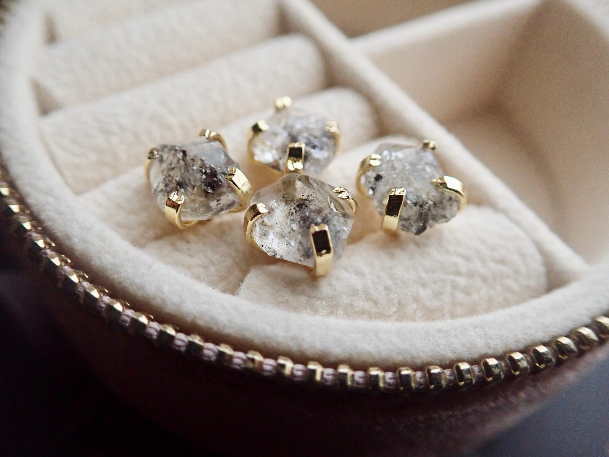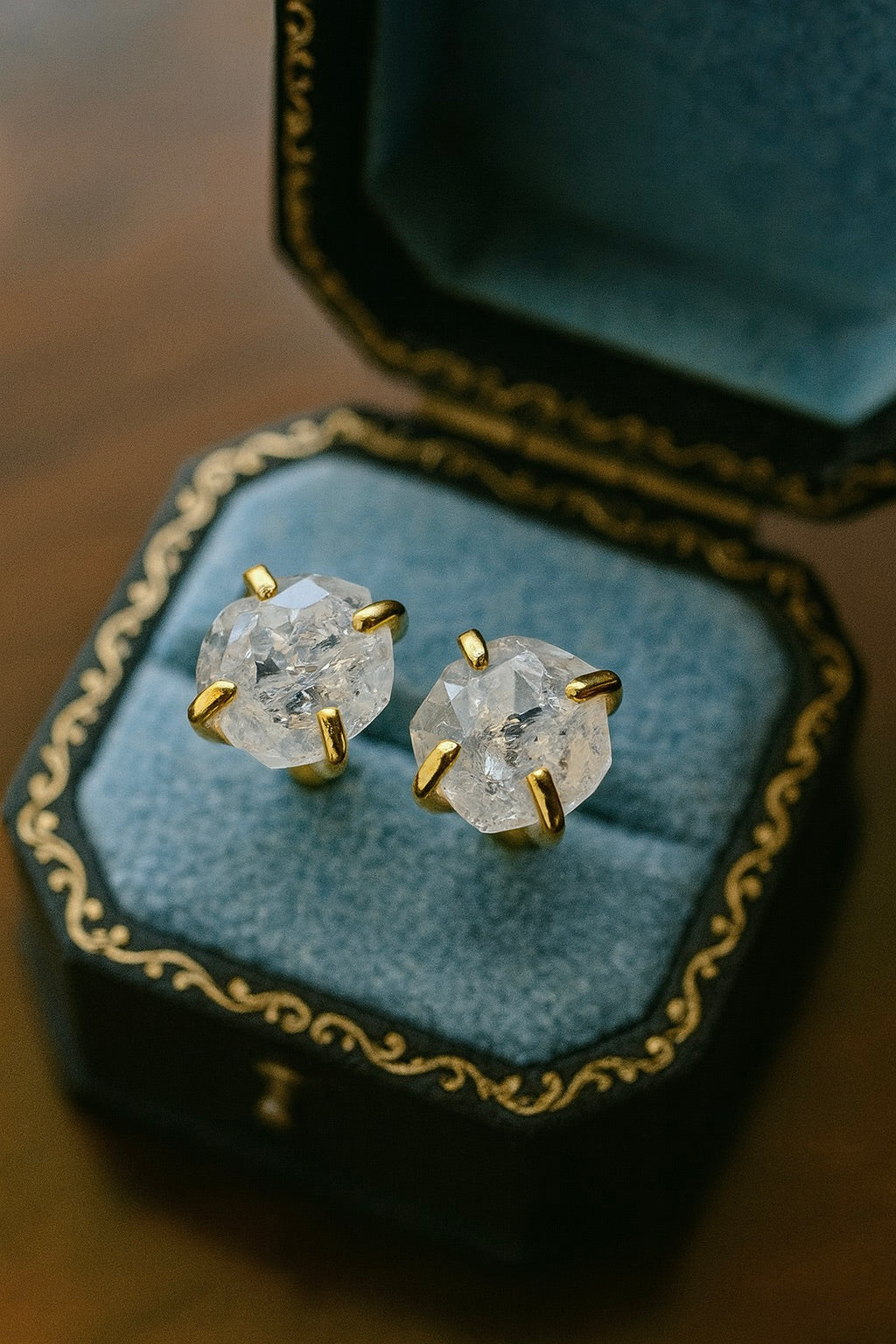 Say hello to your new favorite everyday earrings in fun Herkimer diamonds prong-set in 14k gold over brass! The April birthstone, diamond, in addition to being a symbol of everlasting love, was once thought to bring courage.