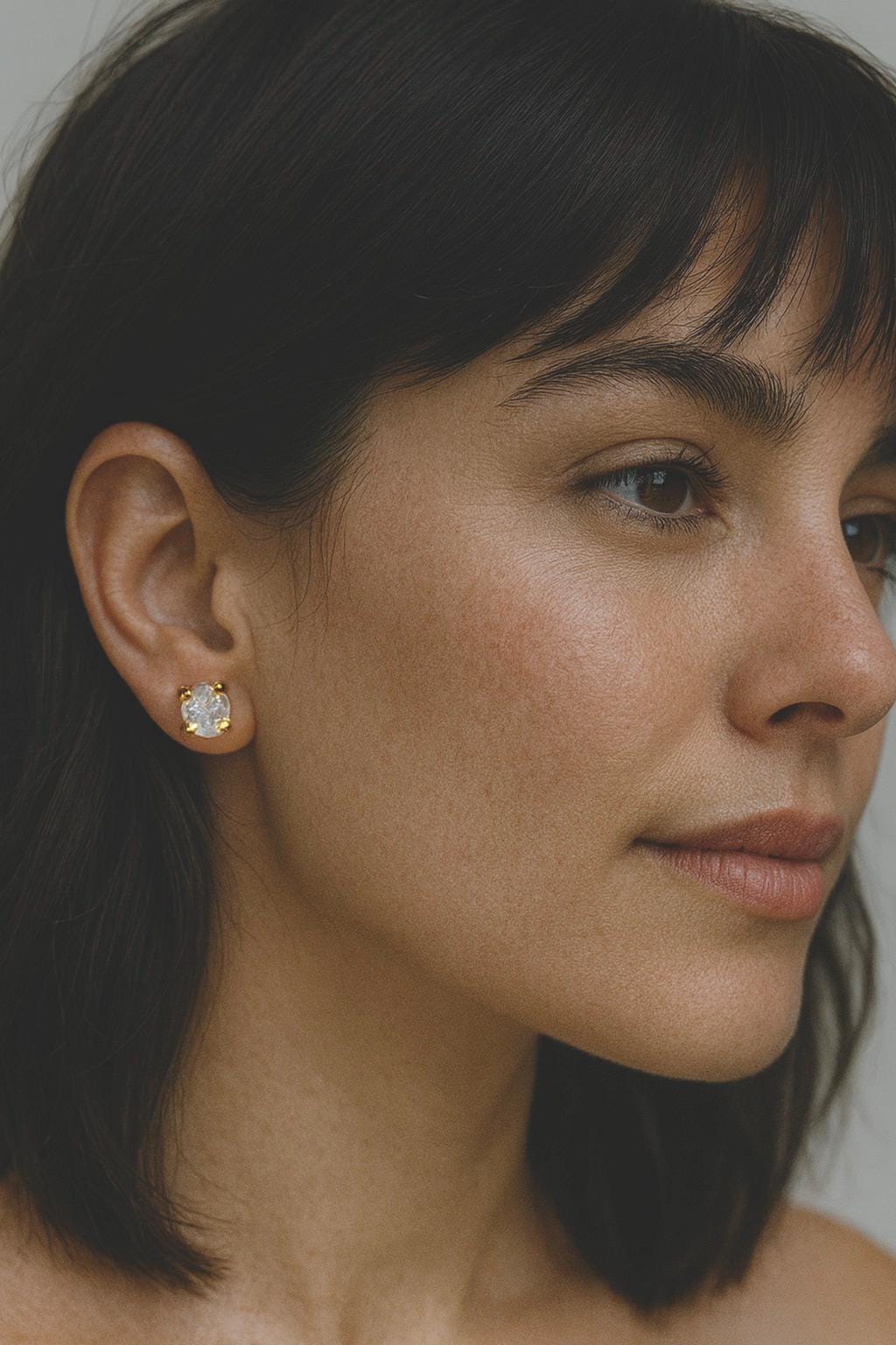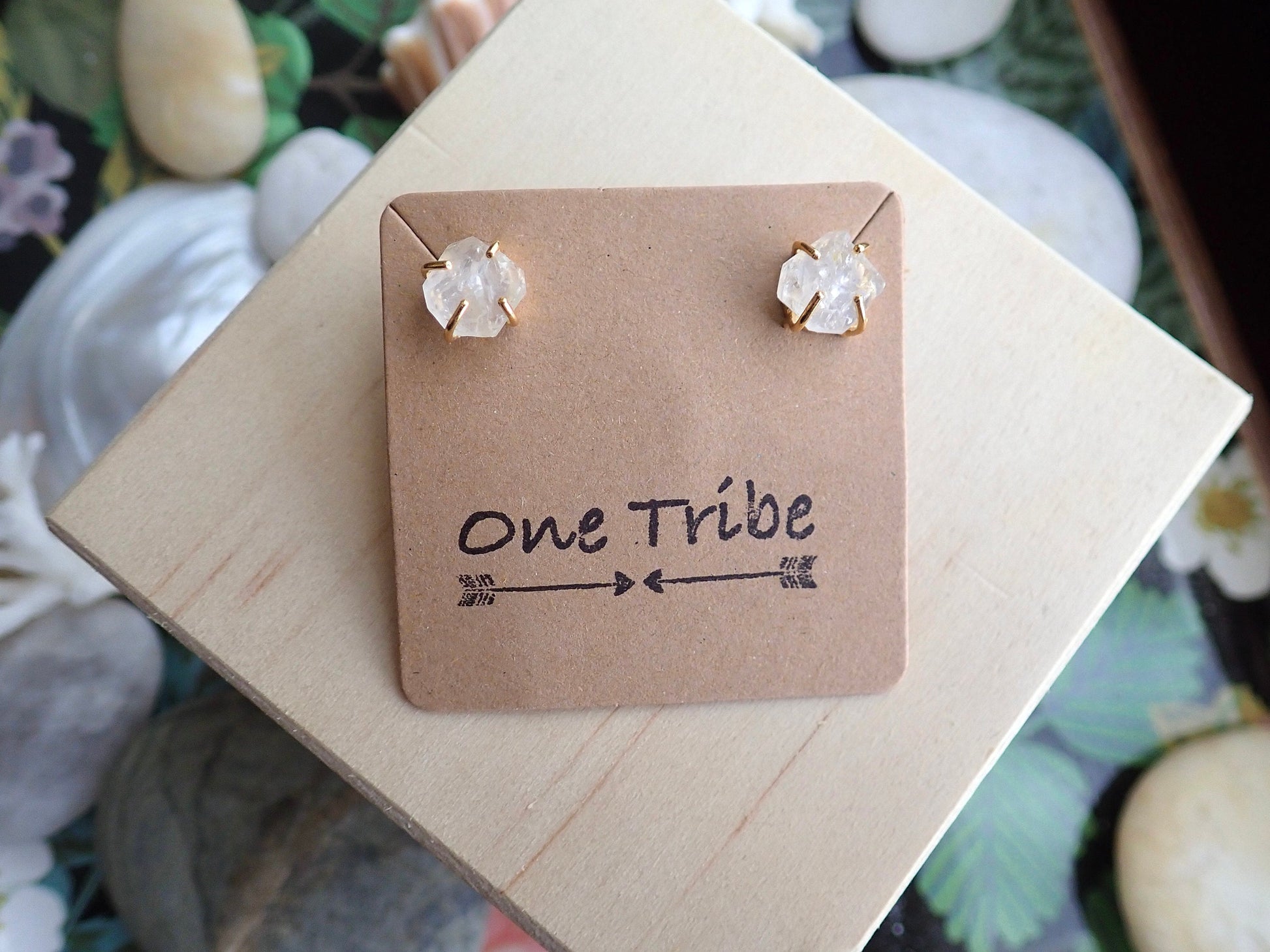Herkimer Diamond Earrings - Raw Crystal Earrings, Natural Gemstone Studs