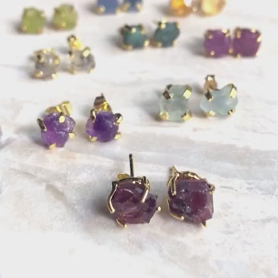 Each of the stones we use to create these special earrings were formed by nature over millions of years. Each one is unique and beautiful just like nature itself. They will vary one to another, just like Mother Nature intended. We don't treat our stones in any way and accept their rough and "imperfect" beauty and try to highlight their uniqueness in our plating process. We don't polish away "flaws" in the stones but rather leave them in their natural state. The pair you receive will be what nature intended that stone to be and may be lighter or darker, clear or more opaque, smooth or rough, rounded or angular. Just like people, each stone has special characteristics unique to itself and in that lies the beauty.