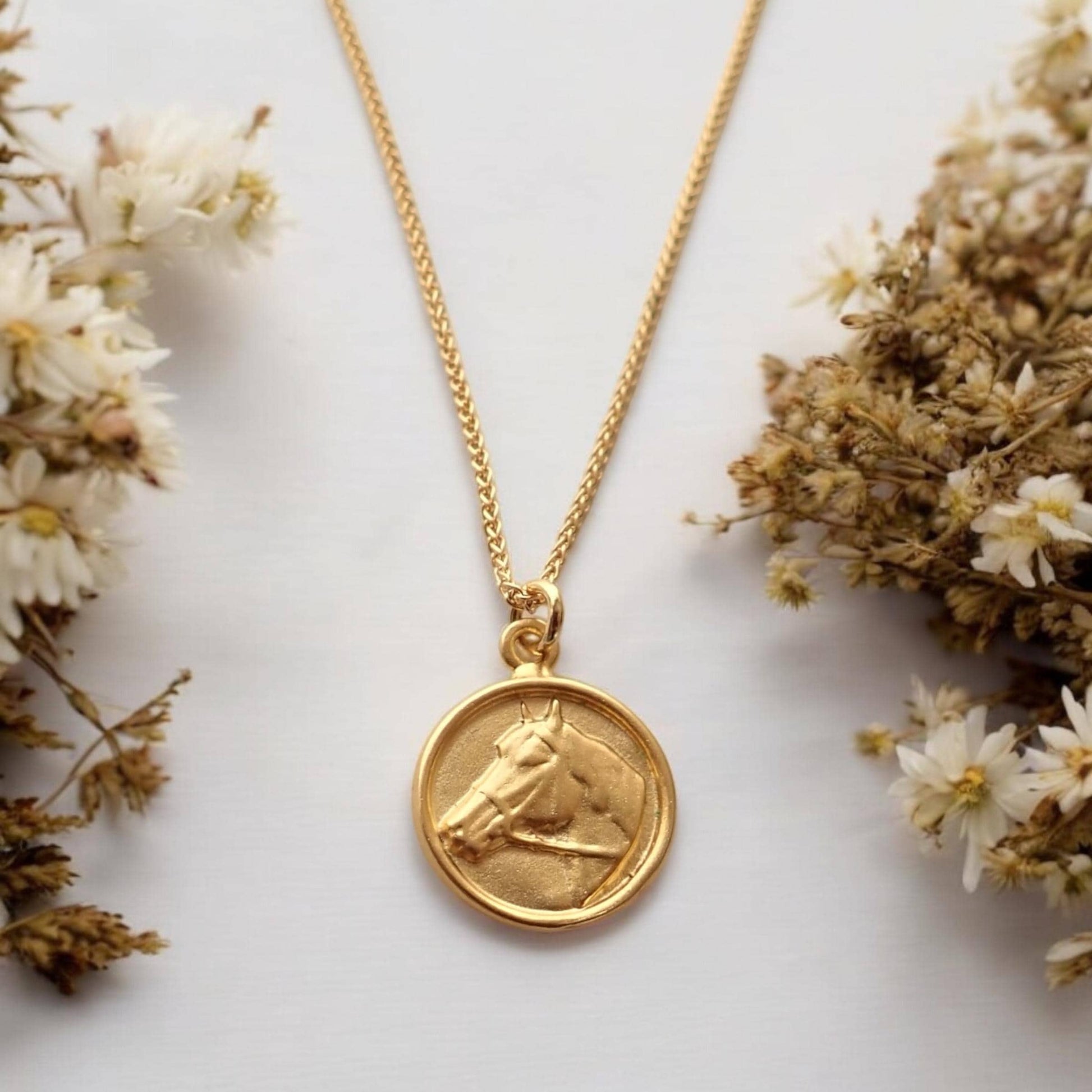Dainty Horse Medallion Necklace - Gold Vermeil - Round Animal Charm Necklace