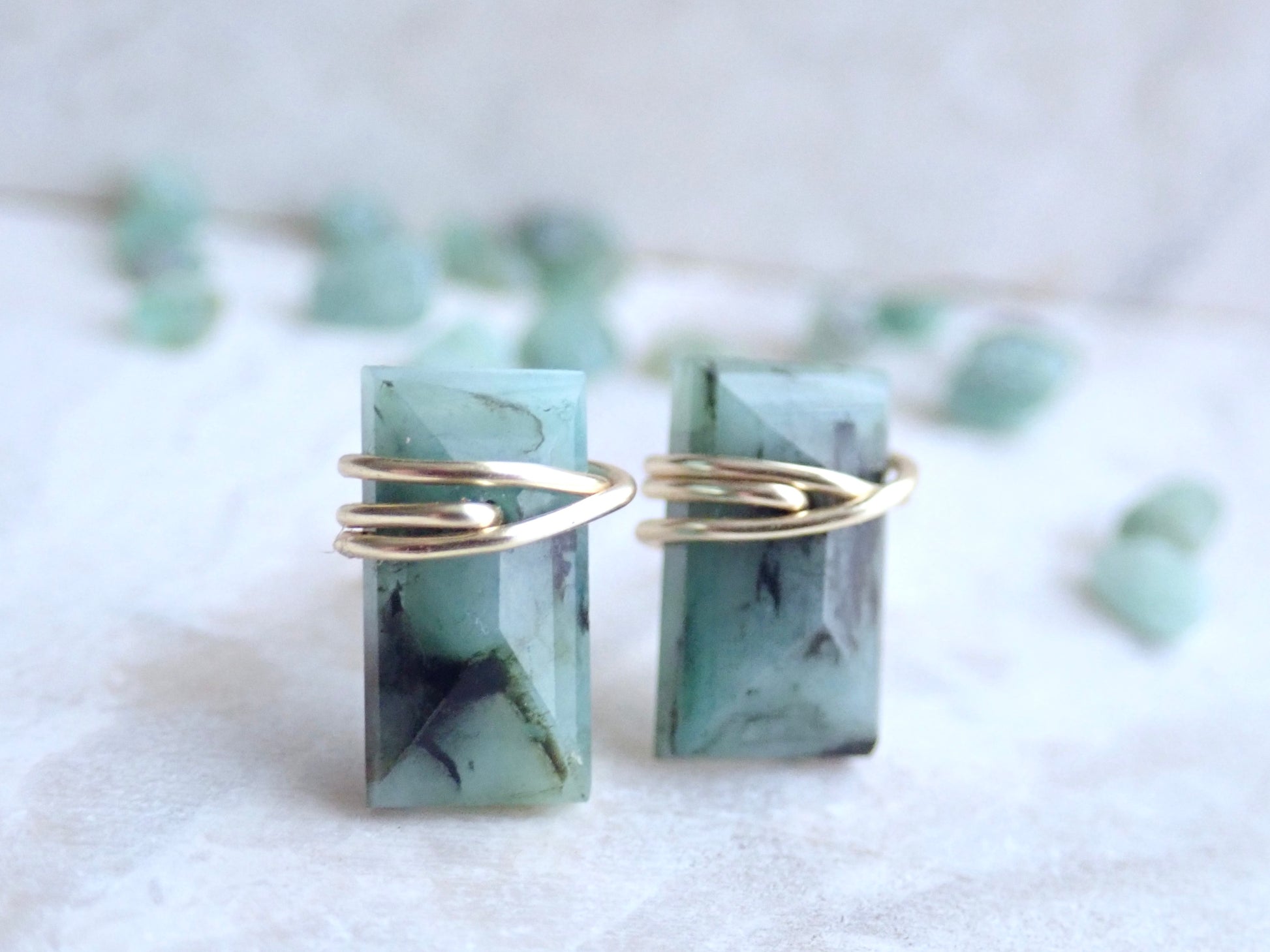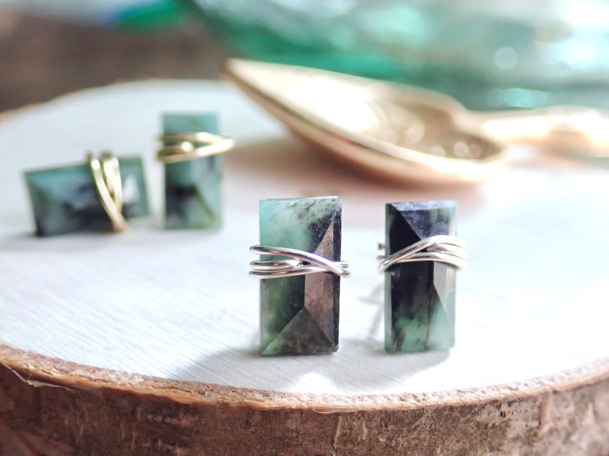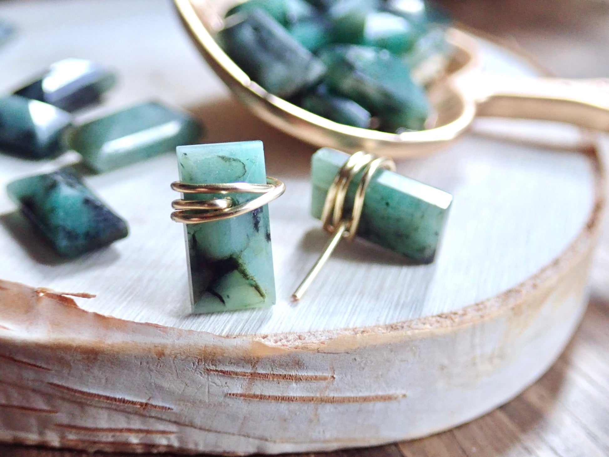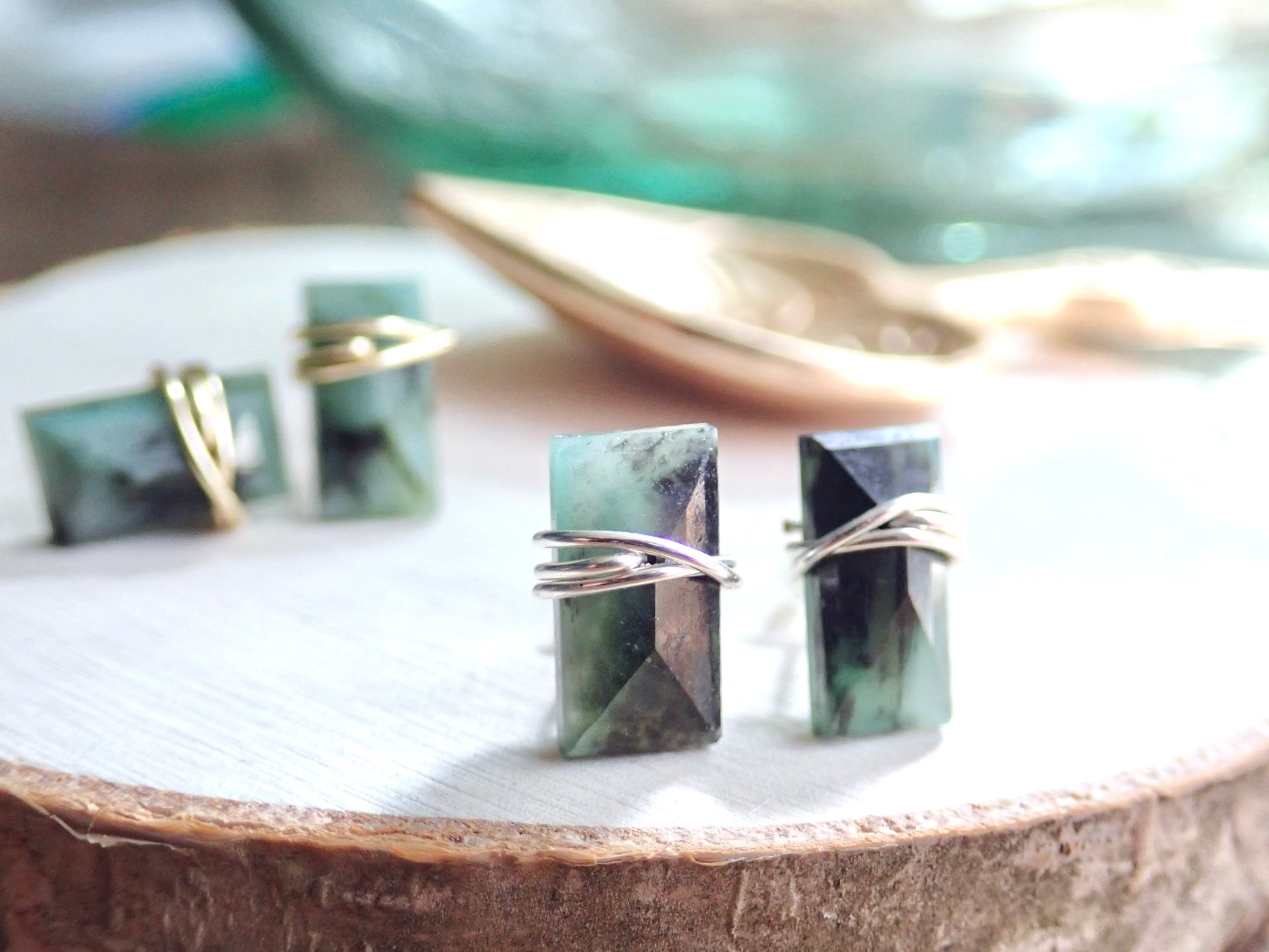 Beautifully unique baguette-cut raw emeralds are wrapped in your choice of either classic sterling silver or timeless 14k Gold Filled wire. These birthstones celebrates the vibrant and lush beauty of May-born souls. As the official birthstone for May, emeralds are more than just exquisite gems; they're a symbol of renewal, love, and growth.