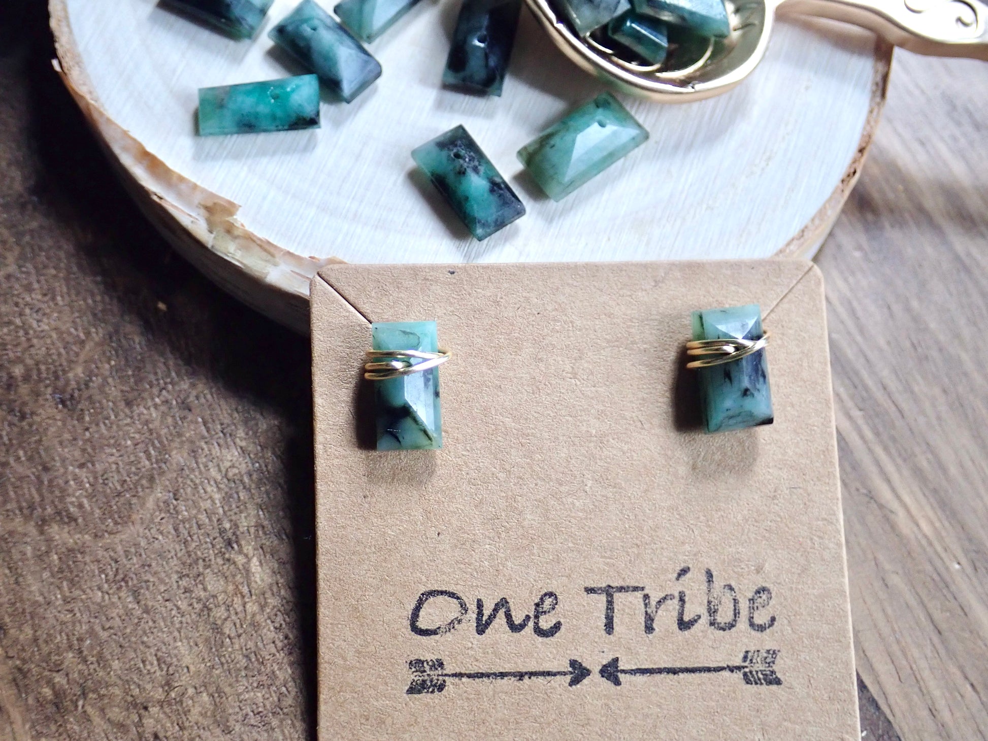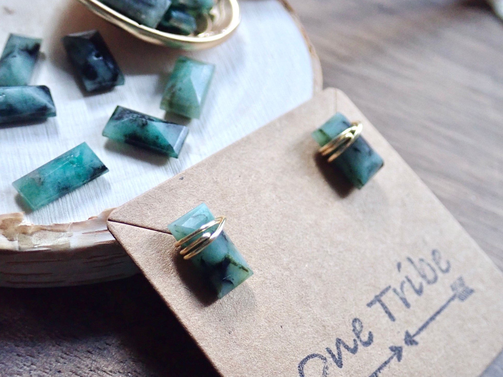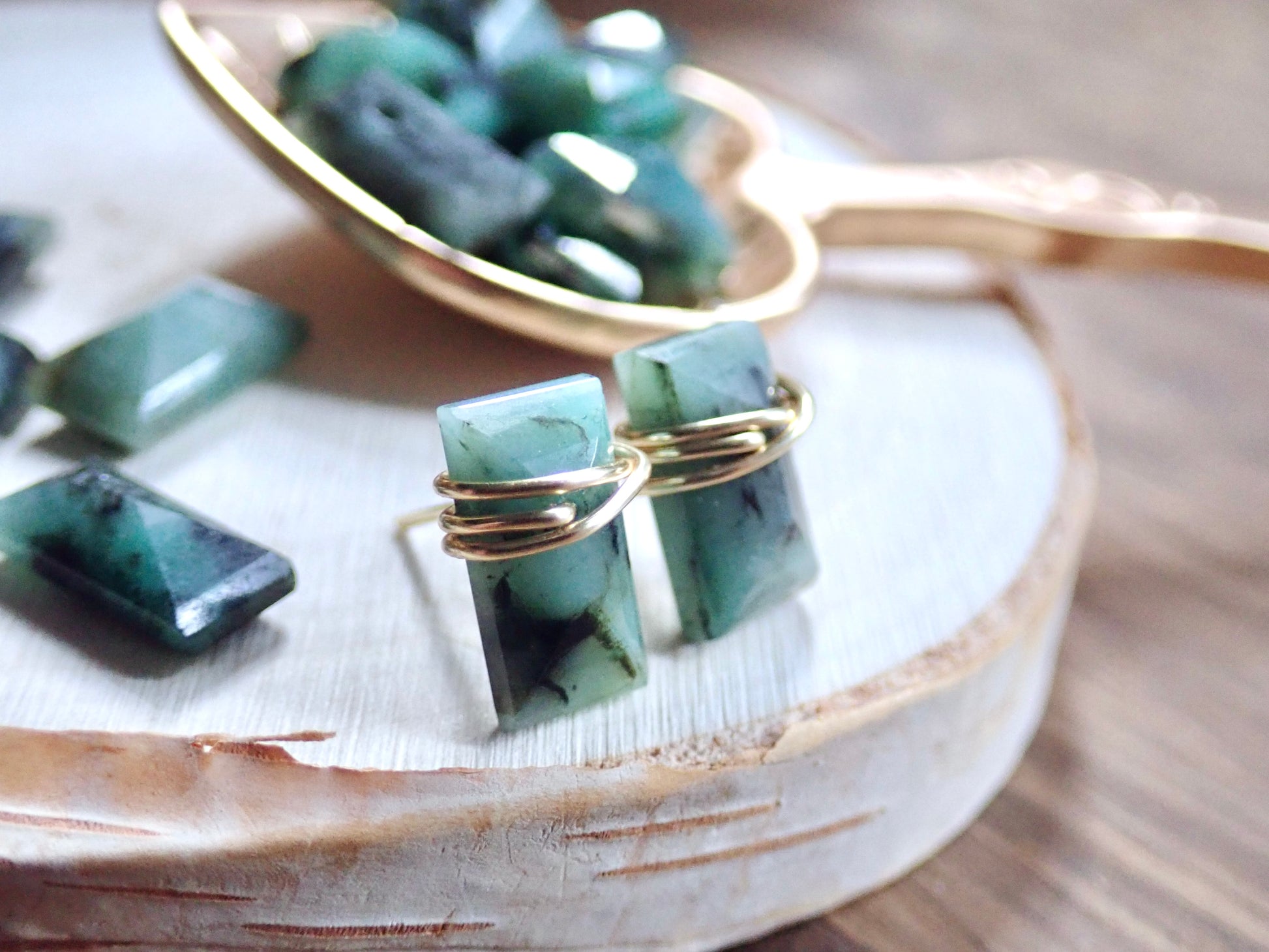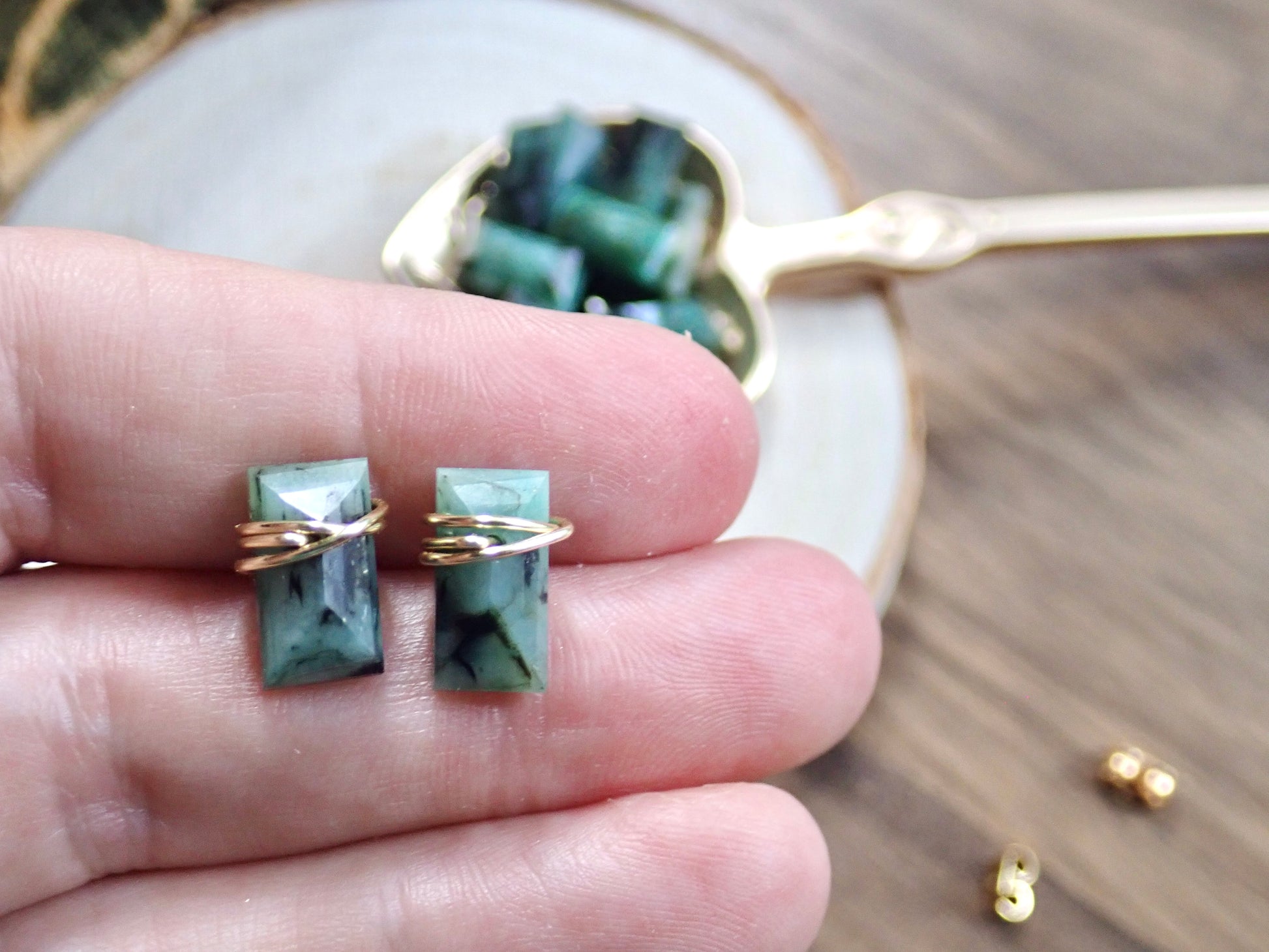 Beautifully unique baguette-cut raw emeralds are wrapped in your choice of either classic sterling silver or timeless 14k Gold Filled wire. These birthstones celebrates the vibrant and lush beauty of May-born souls. As the official birthstone for May, emeralds are more than just exquisite gems; they're a symbol of renewal, love, and growth.