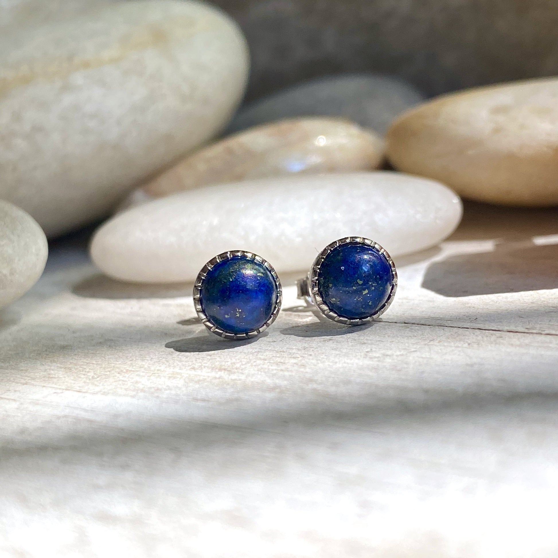 All stones are natural and thus no two are exactly alike. All are beautiful and very similar to the ones in the photos. Last photo shows other stones available in the shop. This listing is for one pair of lapis earrings only.