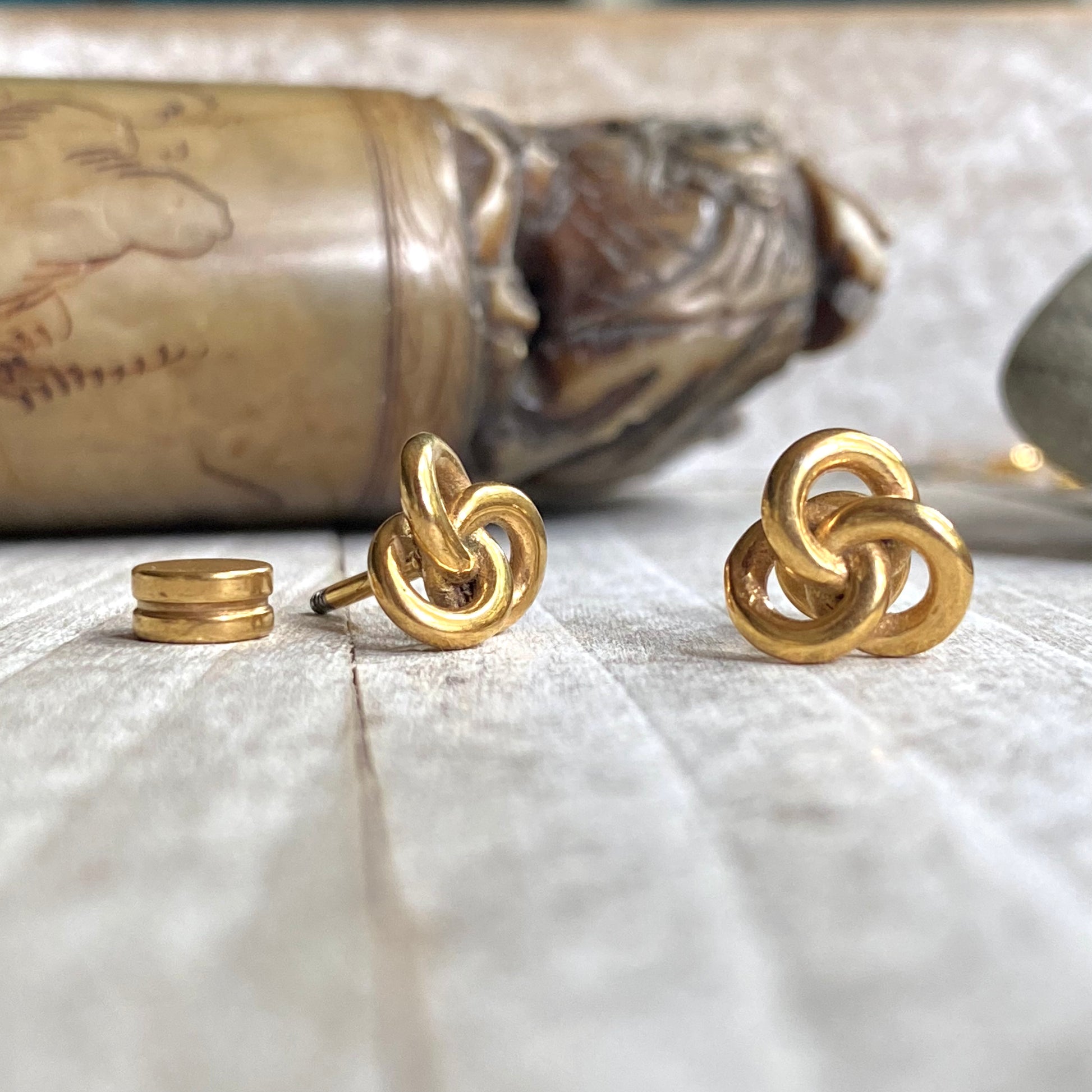 Super sweet and dainty gold knot stud earrings. Love knots represent LOVE, unity, and friendship. Would make perfect bridesmaid earrings or gifts for someone you love. These will arrive ready for gifting in a cute boho gift box and they usually ship same day or next.