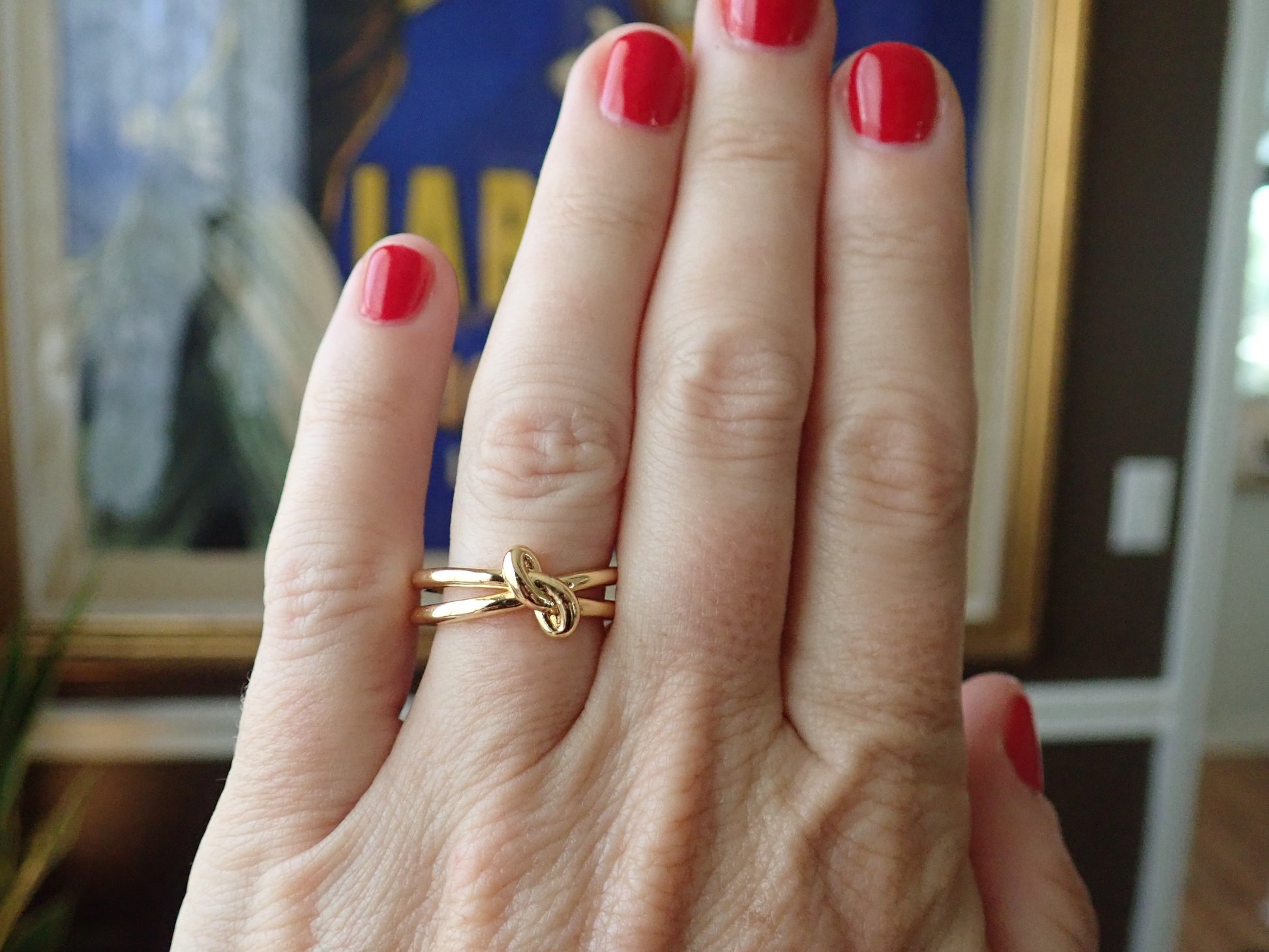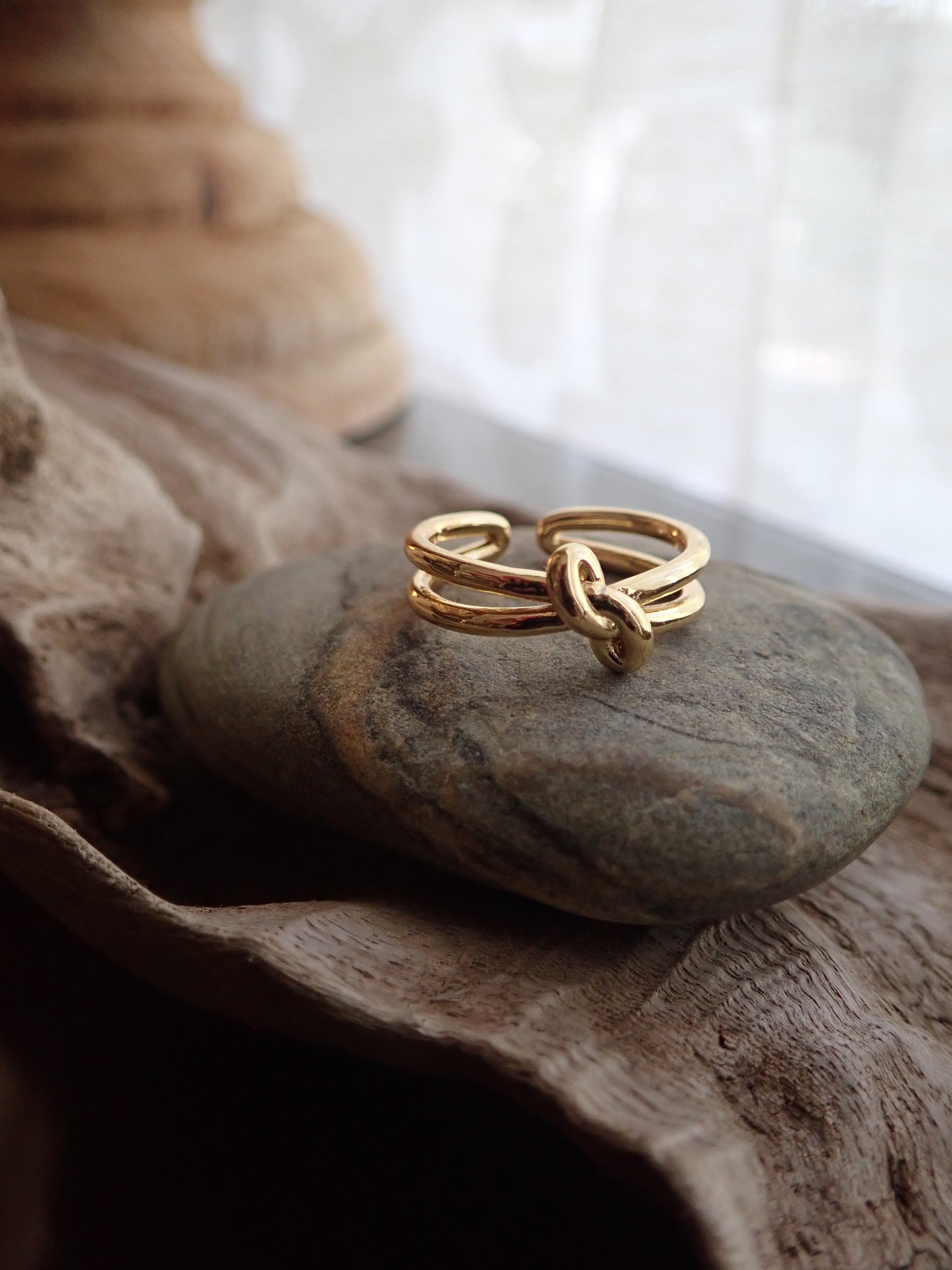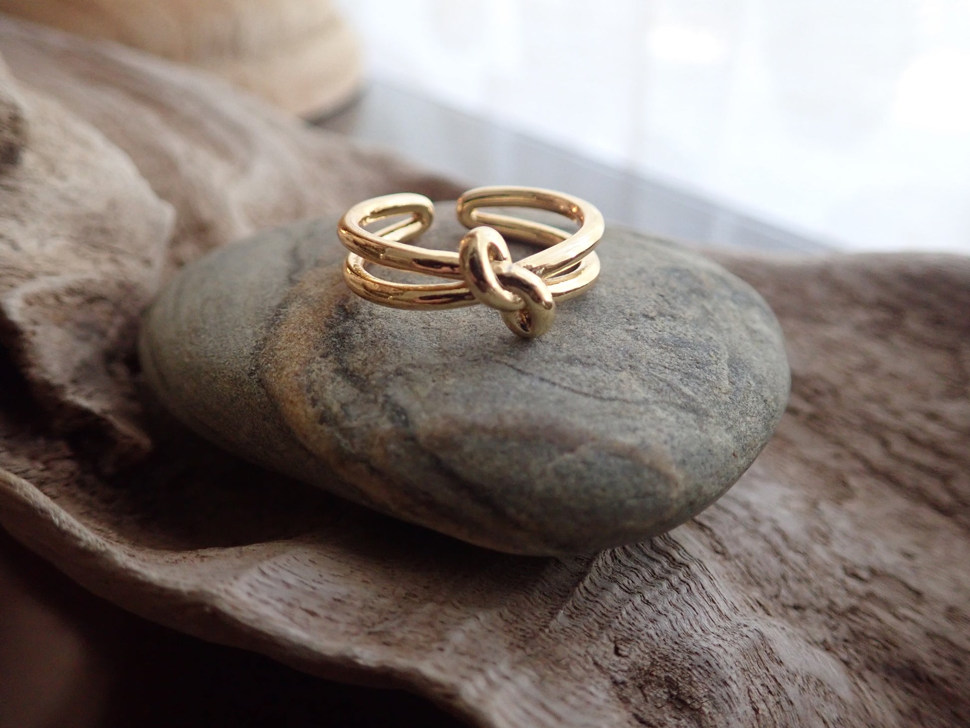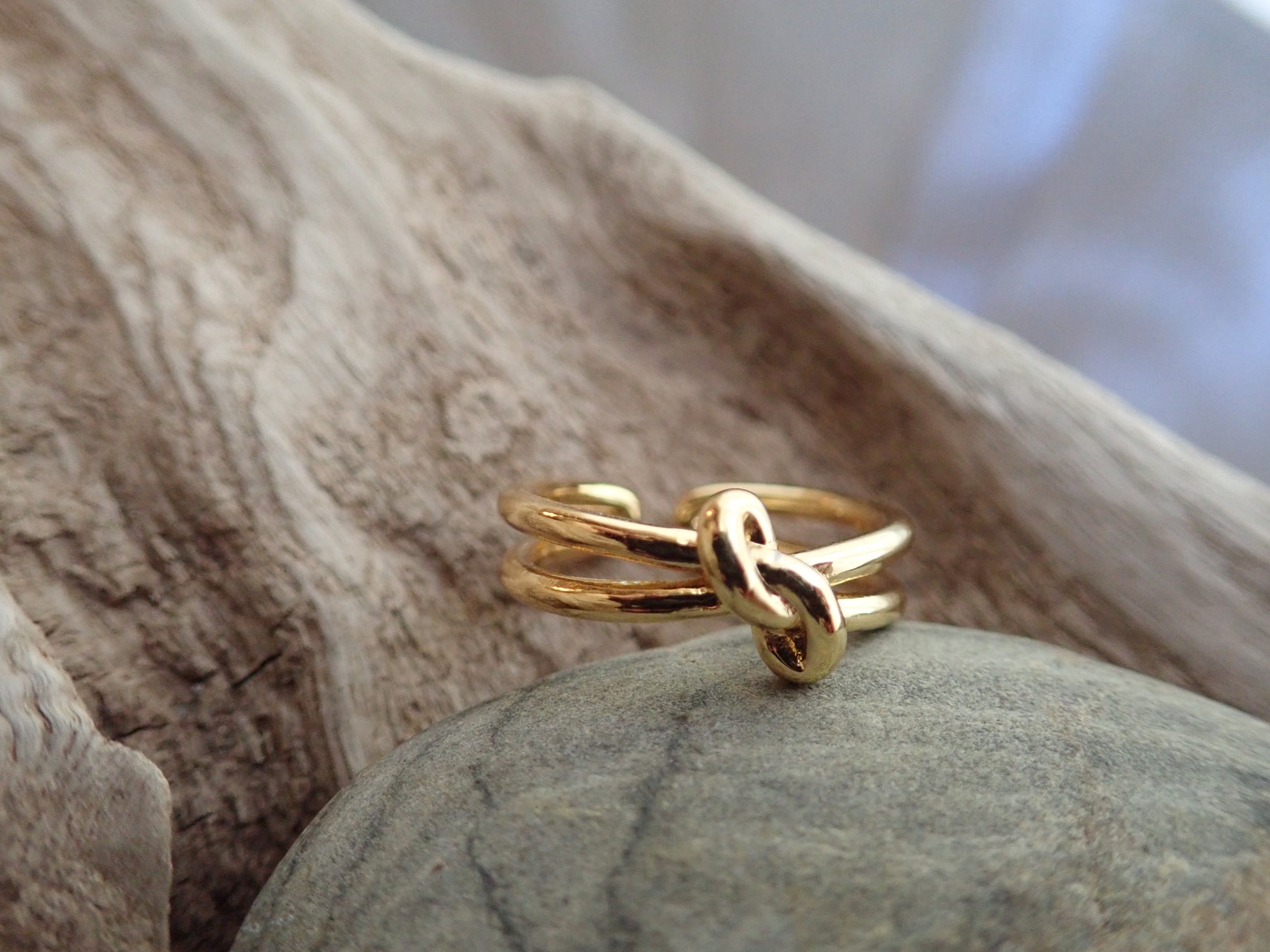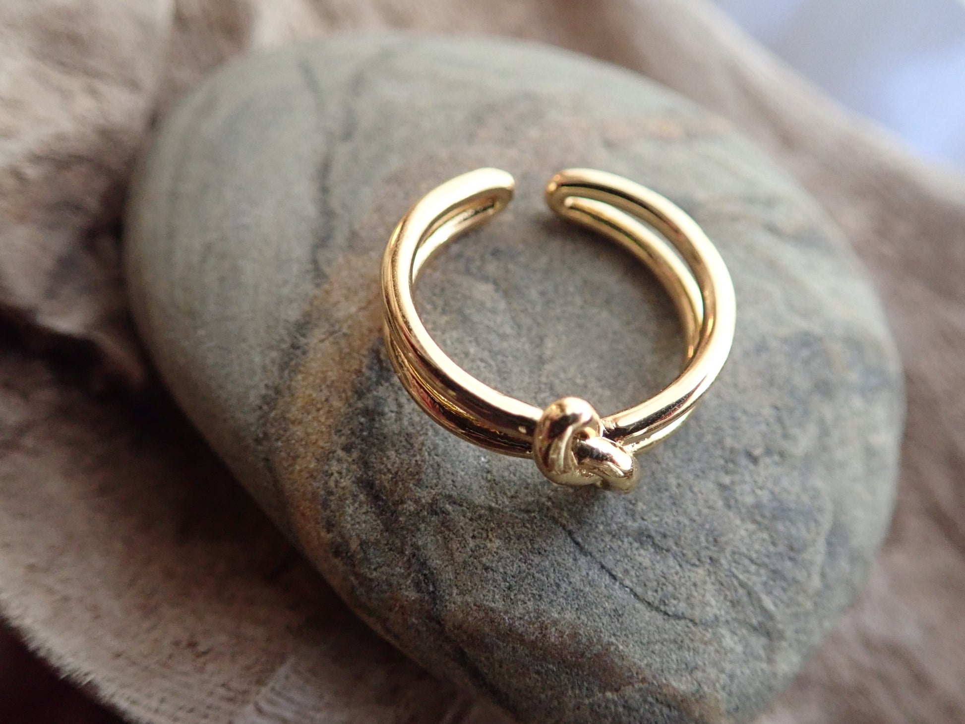 Super sweet gold knot ring with double band. Love knots represent LOVE, unity, and friendship. Would make perfect bridesmaid gifts or gifts for someone you love. These will arrive ready for gifting in a cute boho gift box.