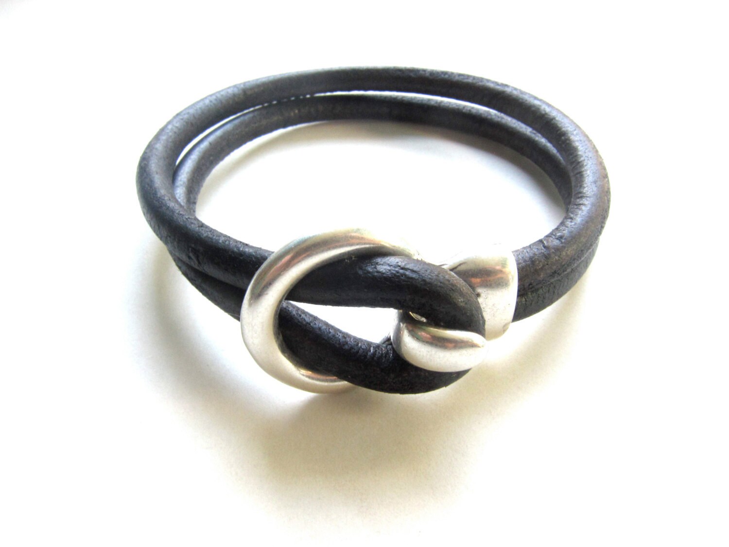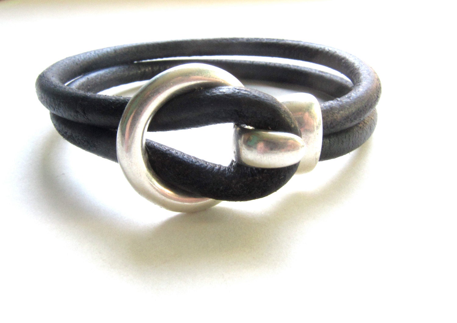 Handcrafted black leather mens cuff bracelet that I've crafted out of a beautiful, supple, distressed black 5mm leather. The silver ornament on the piece also acts as an interesting clasp. Super easy to wear and looks great when stacked with other bracelets. I love this look because it's elegant but also a little edgy.