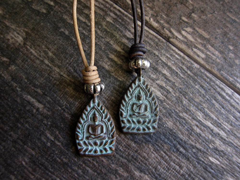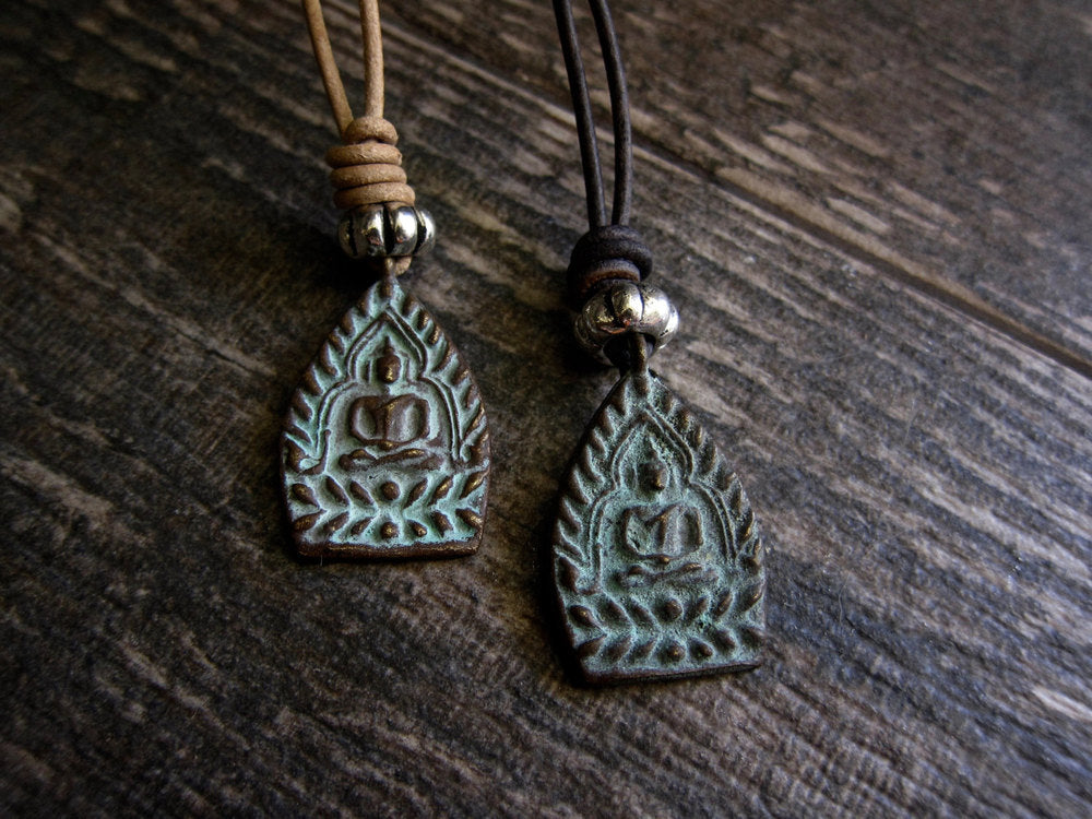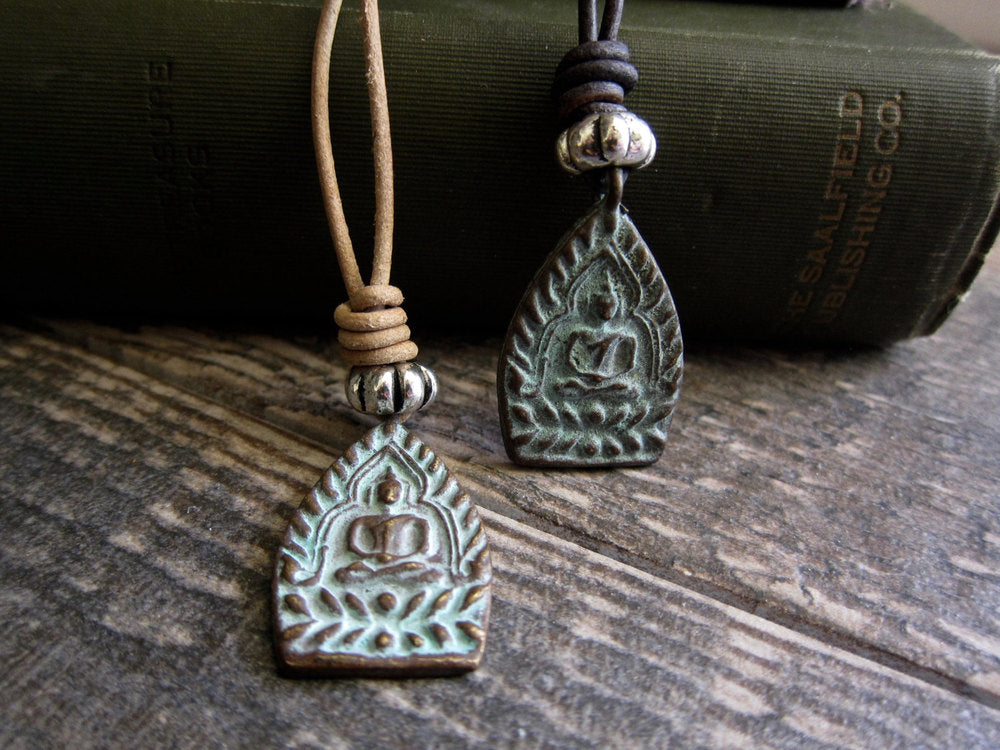 Men’s Leather Cord Necklace with Bronze Seated Buddha Pendant – Spiritual Mindfulness Jewelry – Zen Buddhist Amulet Necklace