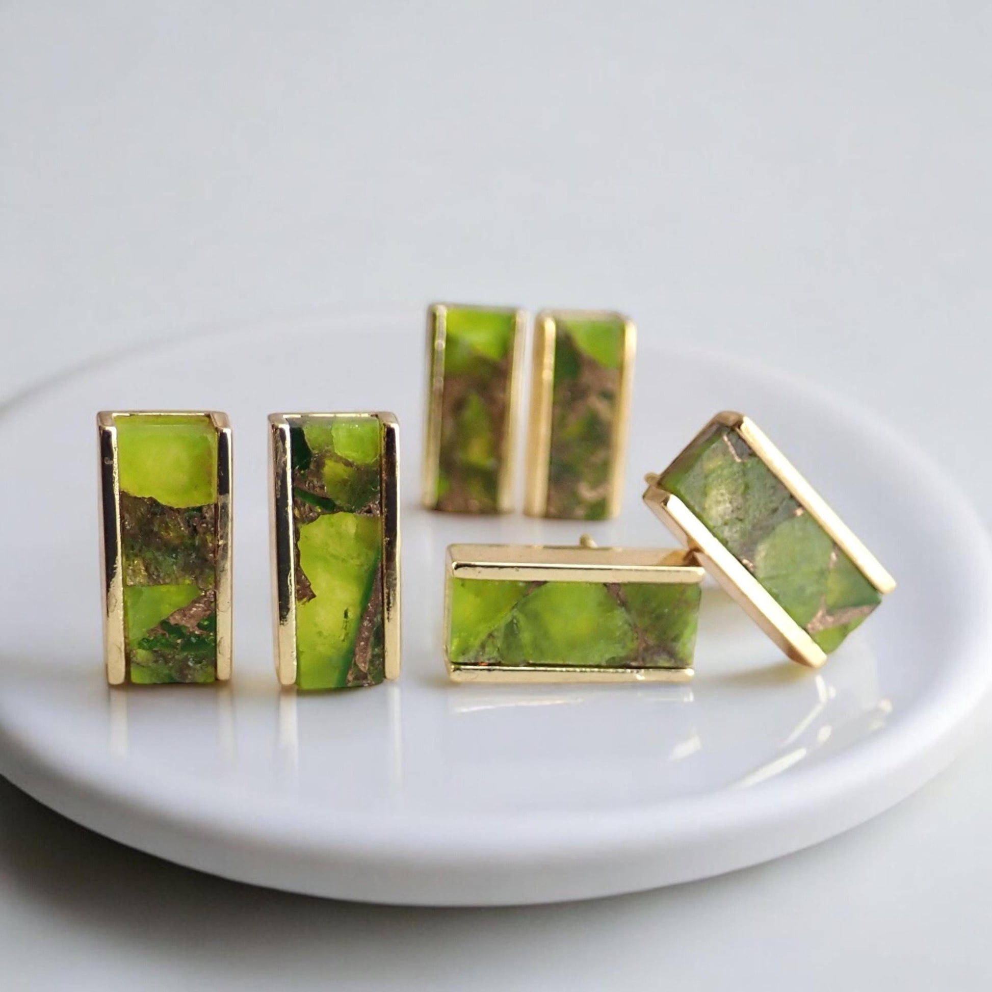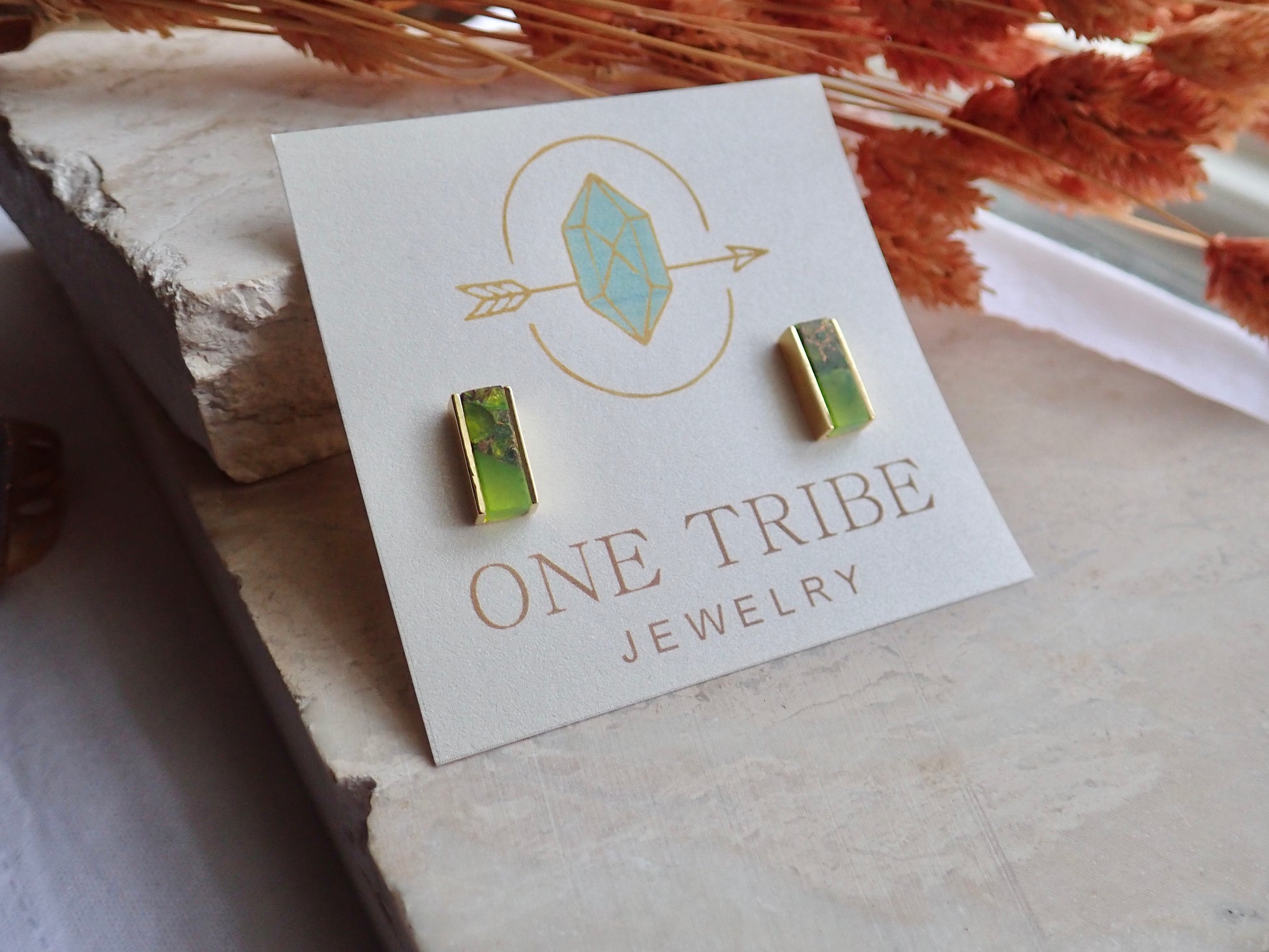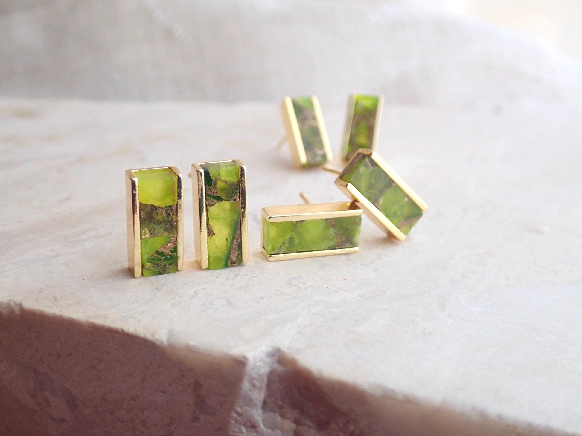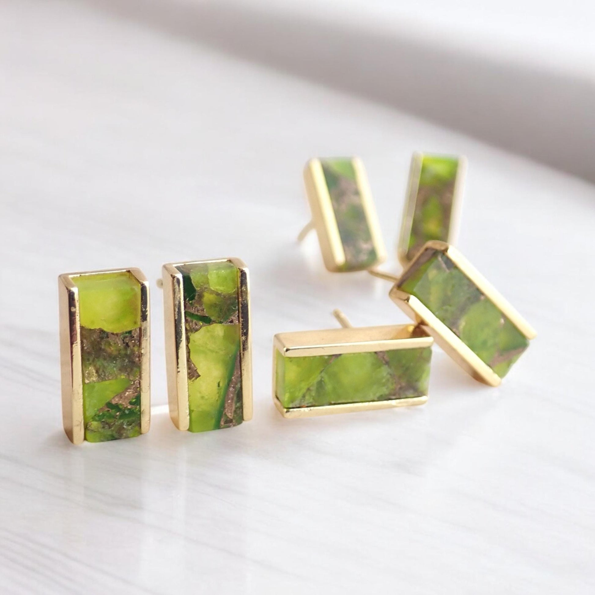 Mojave Stud Earrings • Peridot Earrings Gold • August Birthstone Gift • Green Gemstone Studs • Boho Colorful Jewelry • Gemstone Bar Earrings