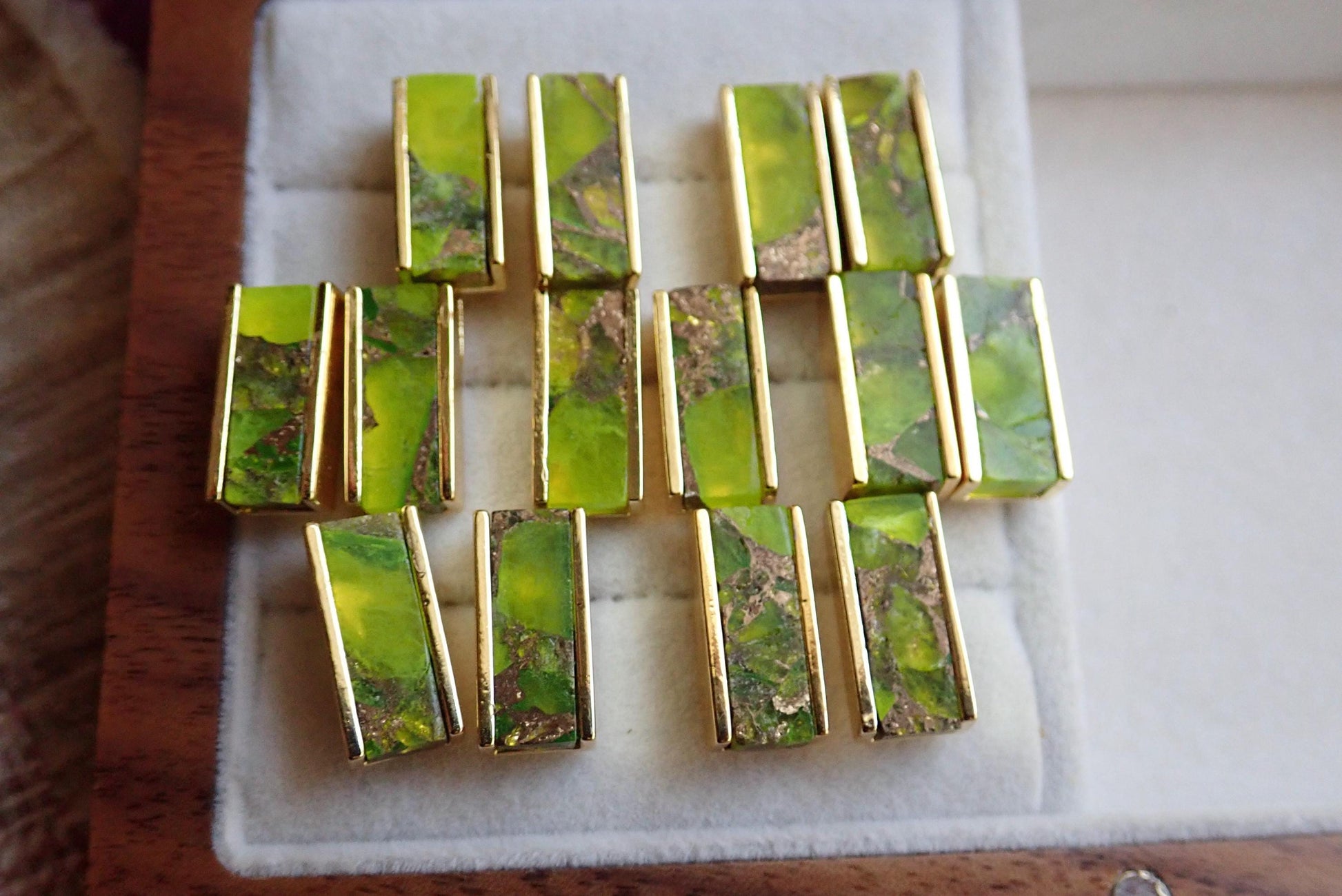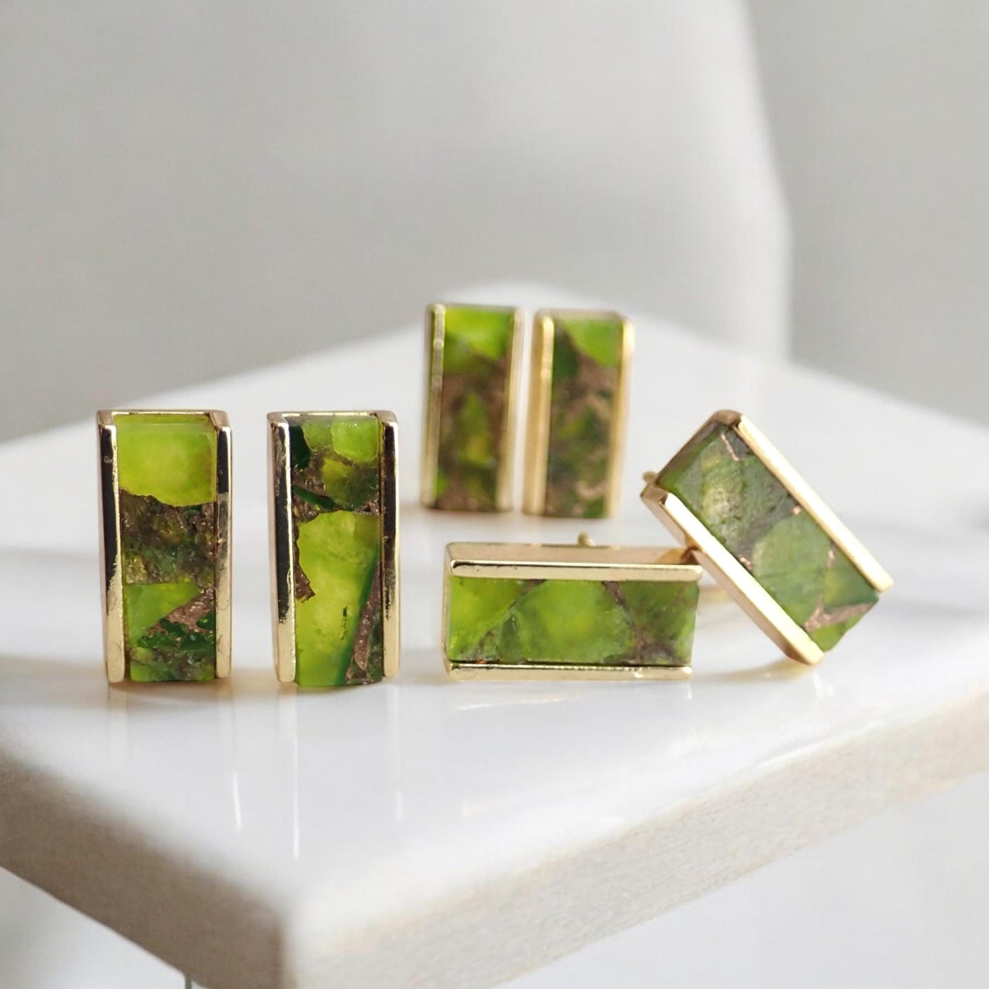 Vibrant green dyed jade with gold-colored matrix - each pair unique