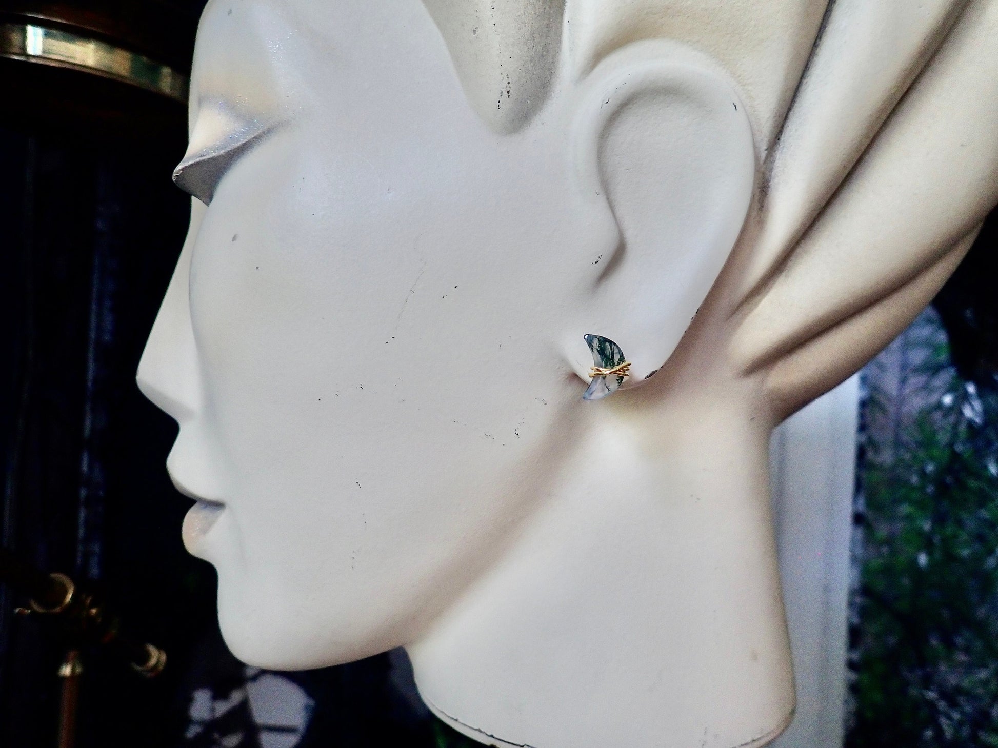 Each earring is a unique masterpiece, showcasing the intricate patterns and earthy hues of moss agate. The natural variations make every pair truly one-of-a-kind, reflecting your individuality and connection to the world around you. 🍃💫