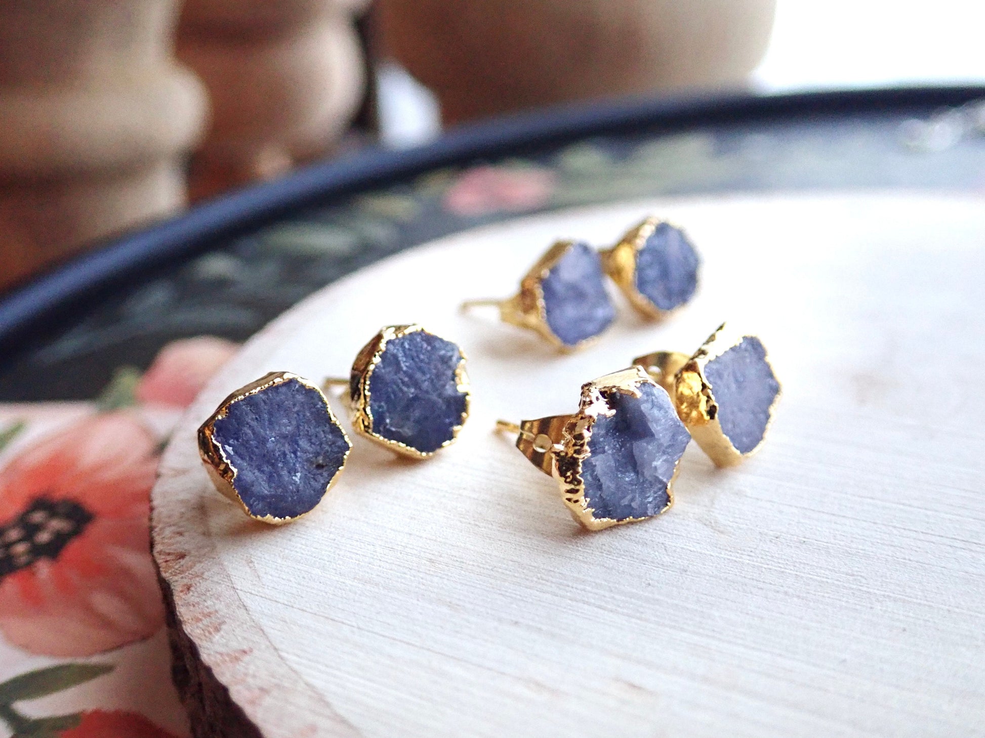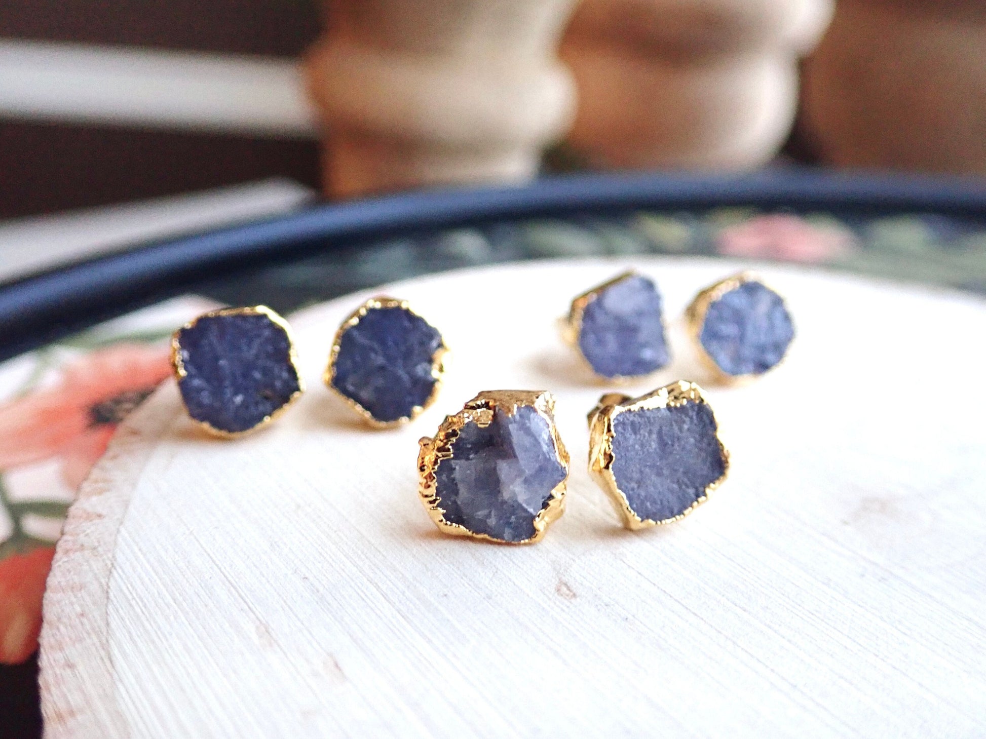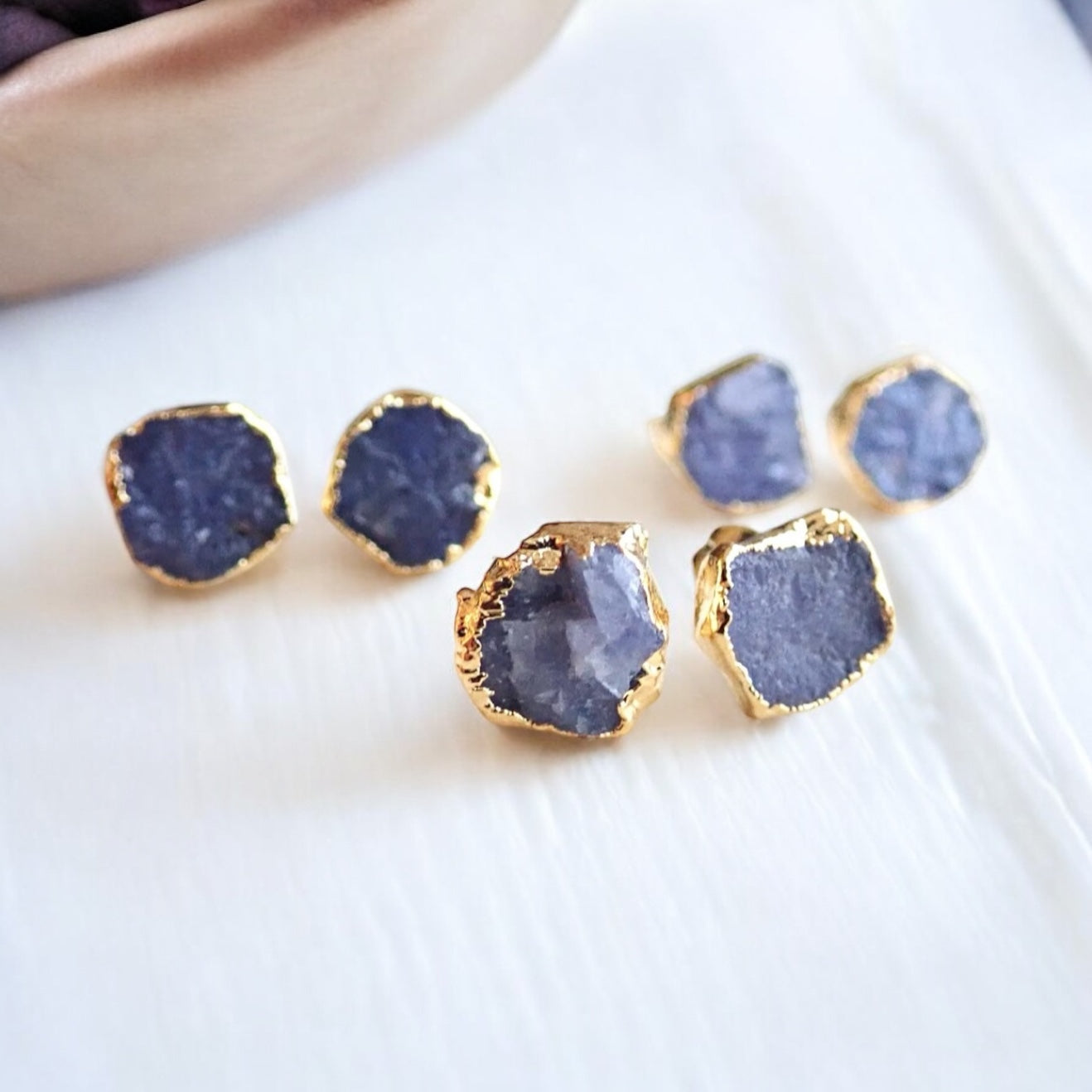 Raw Tanzanite Stud Earrings – Electroplated in 14k Gold Vermeil | Natural December Birthstone Jewelry