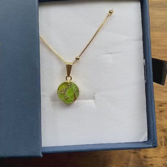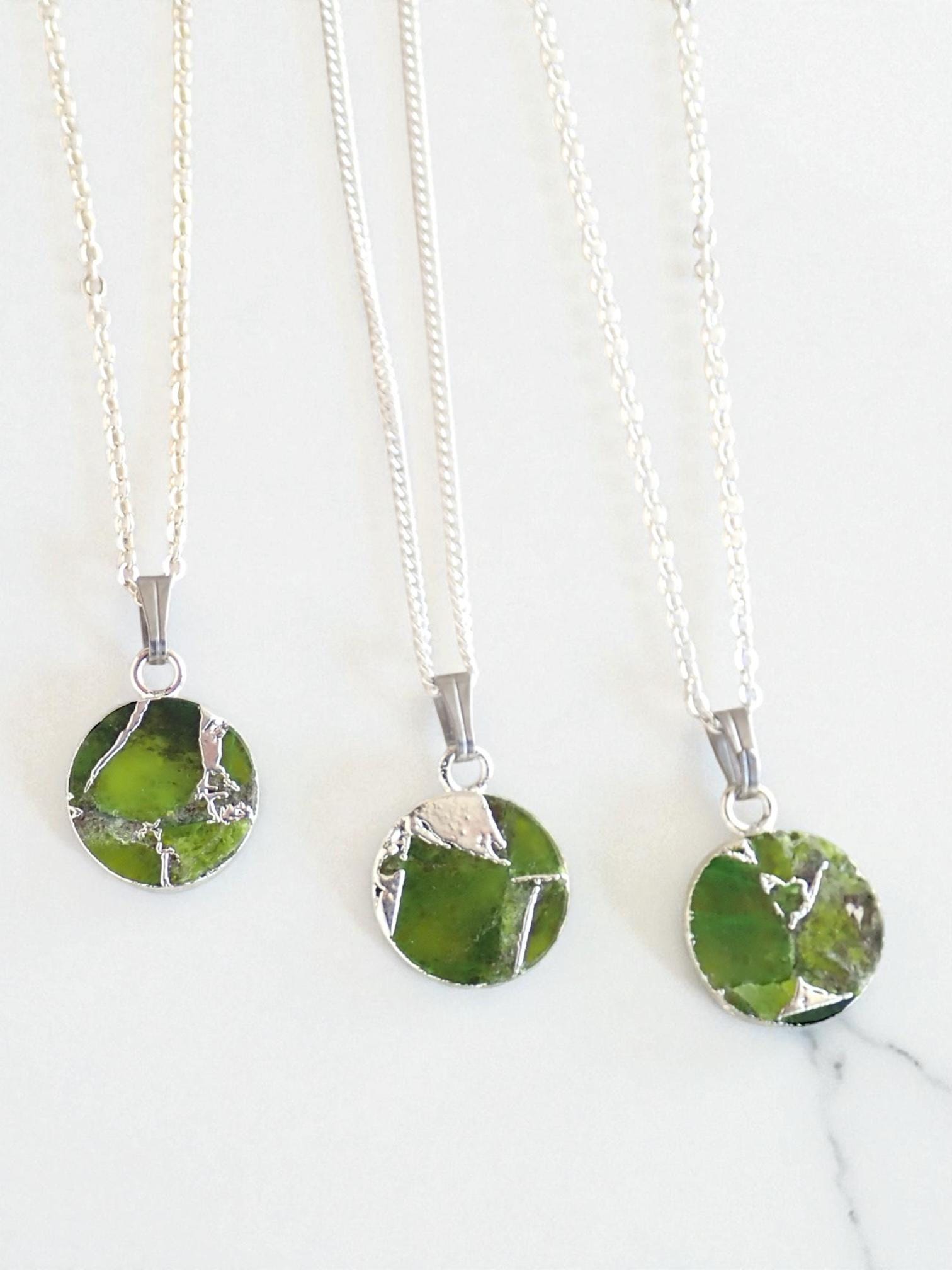 Peridot Necklace Silver Green Coin Pendant Necklace, Mojave Gemstone Necklace, Kintsugi Crystal Jewelry, August Birthstone Gift for Her