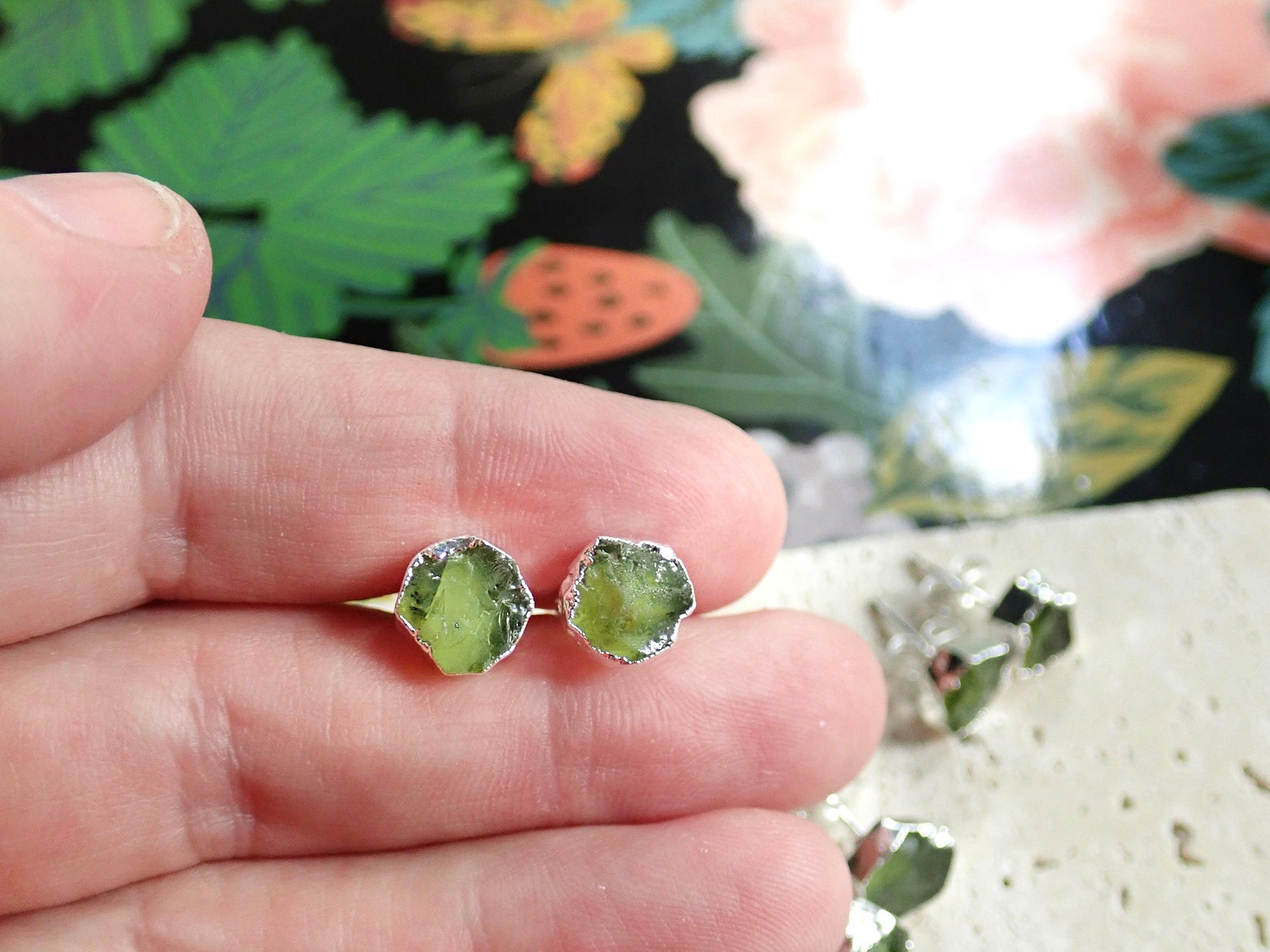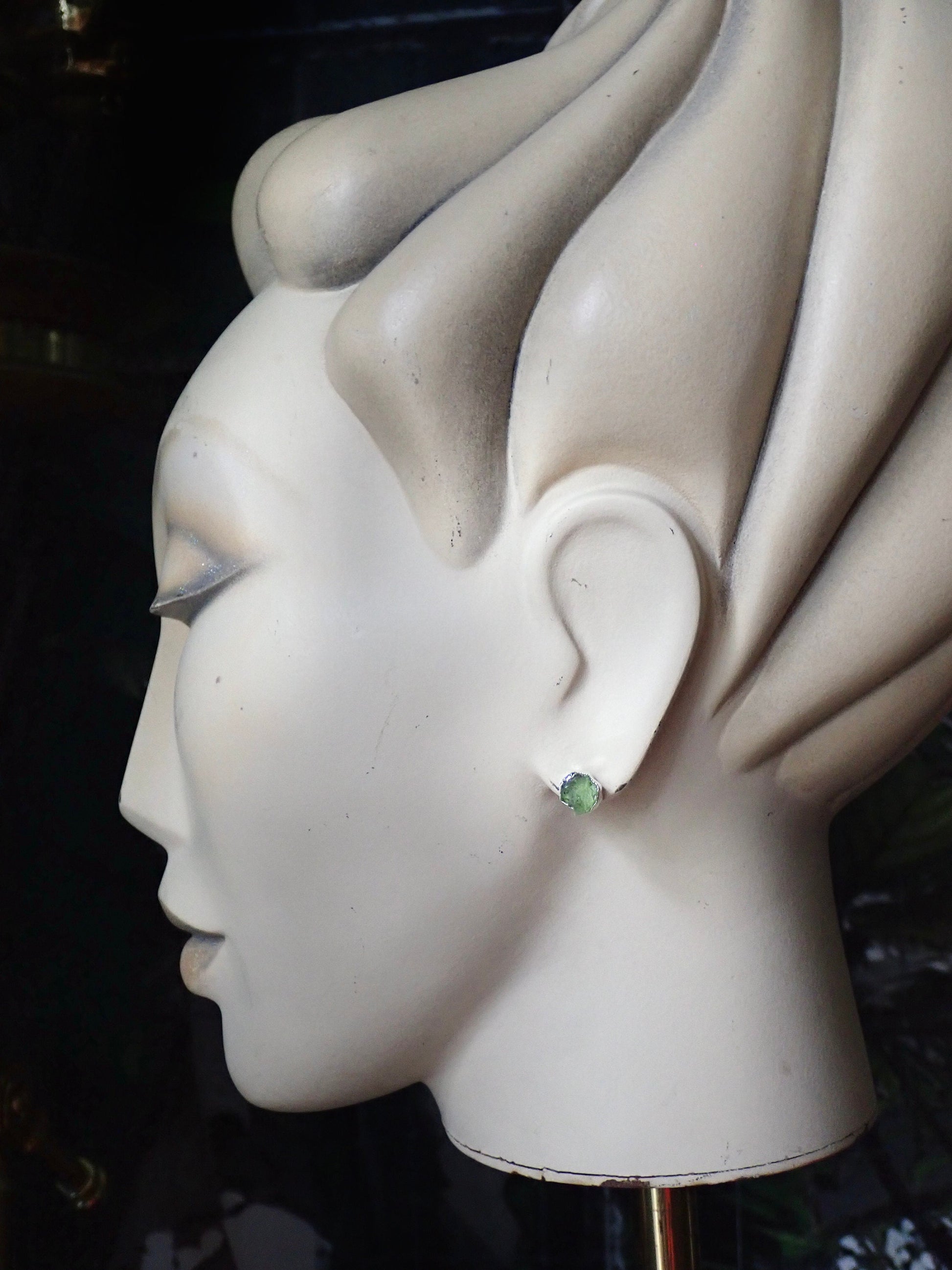 Raw Peridot Stud Earrings – Sterling Silver Electroplated | Natural August Birthstone Jewelry