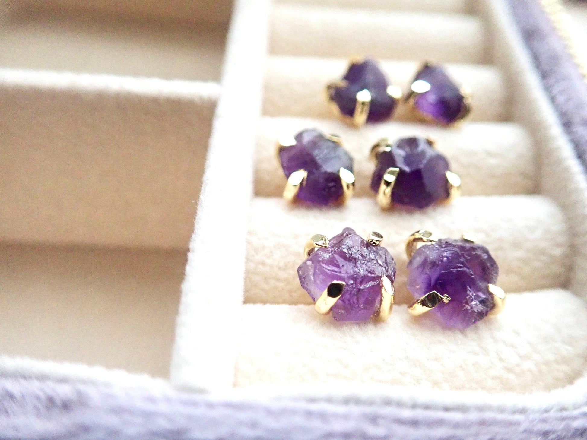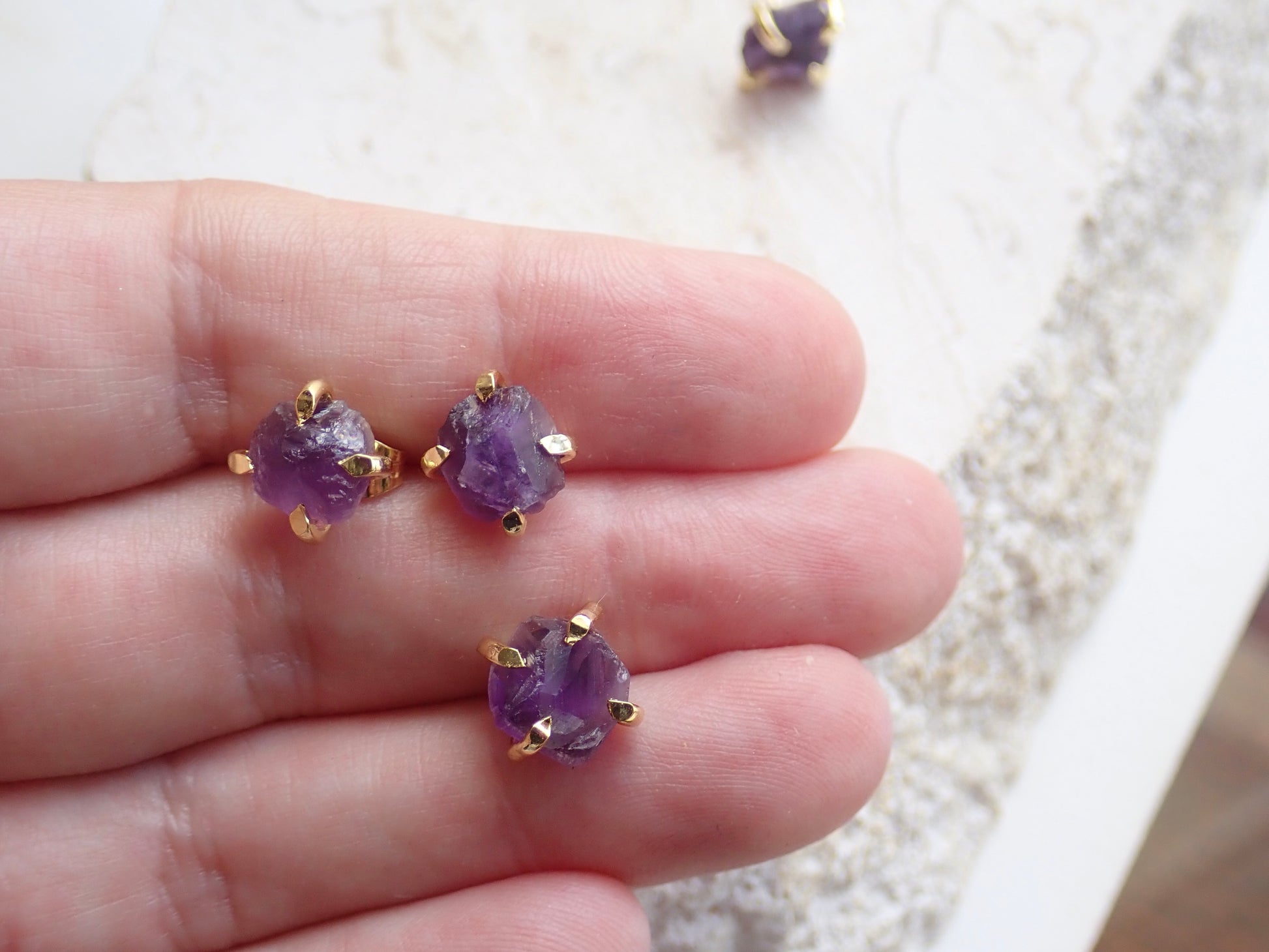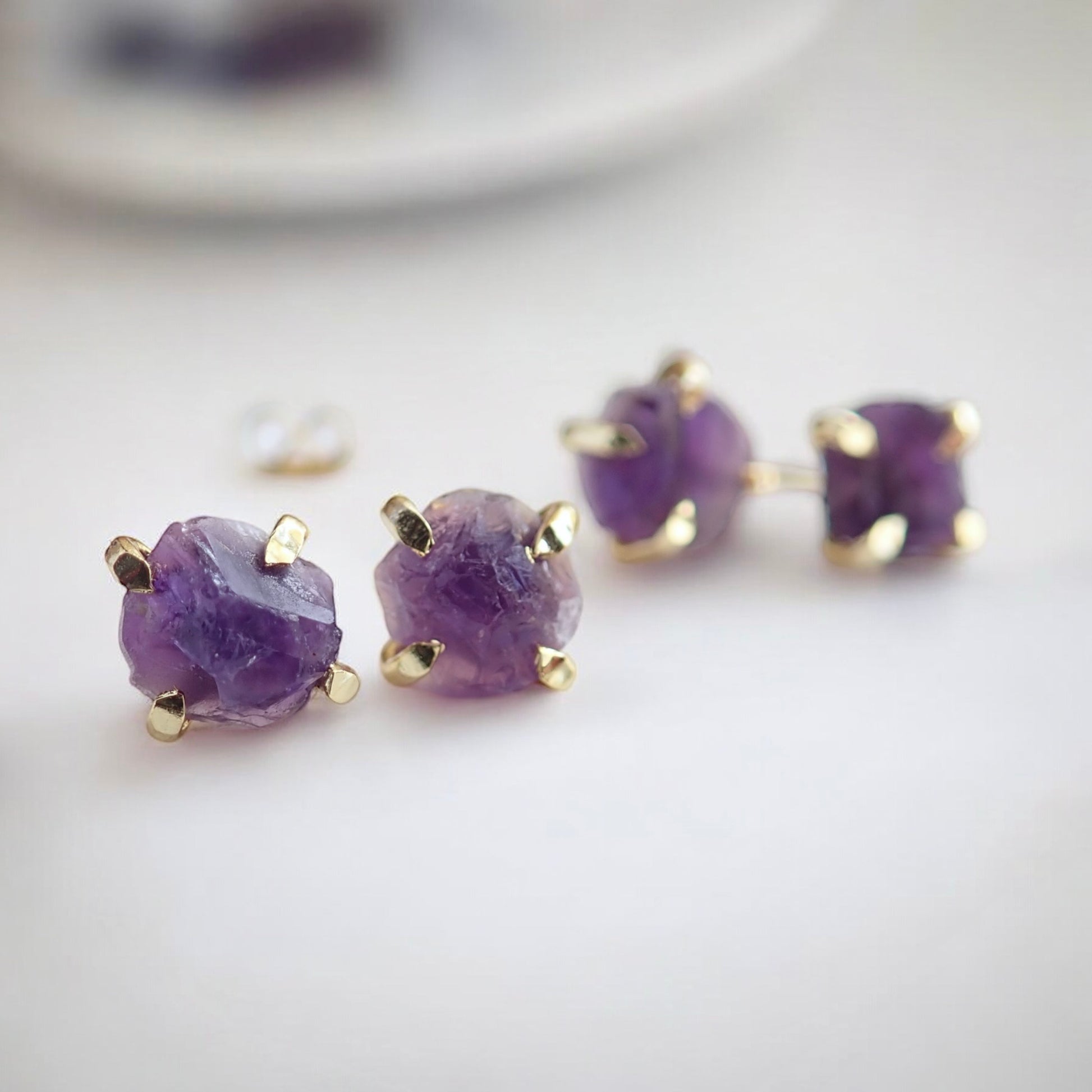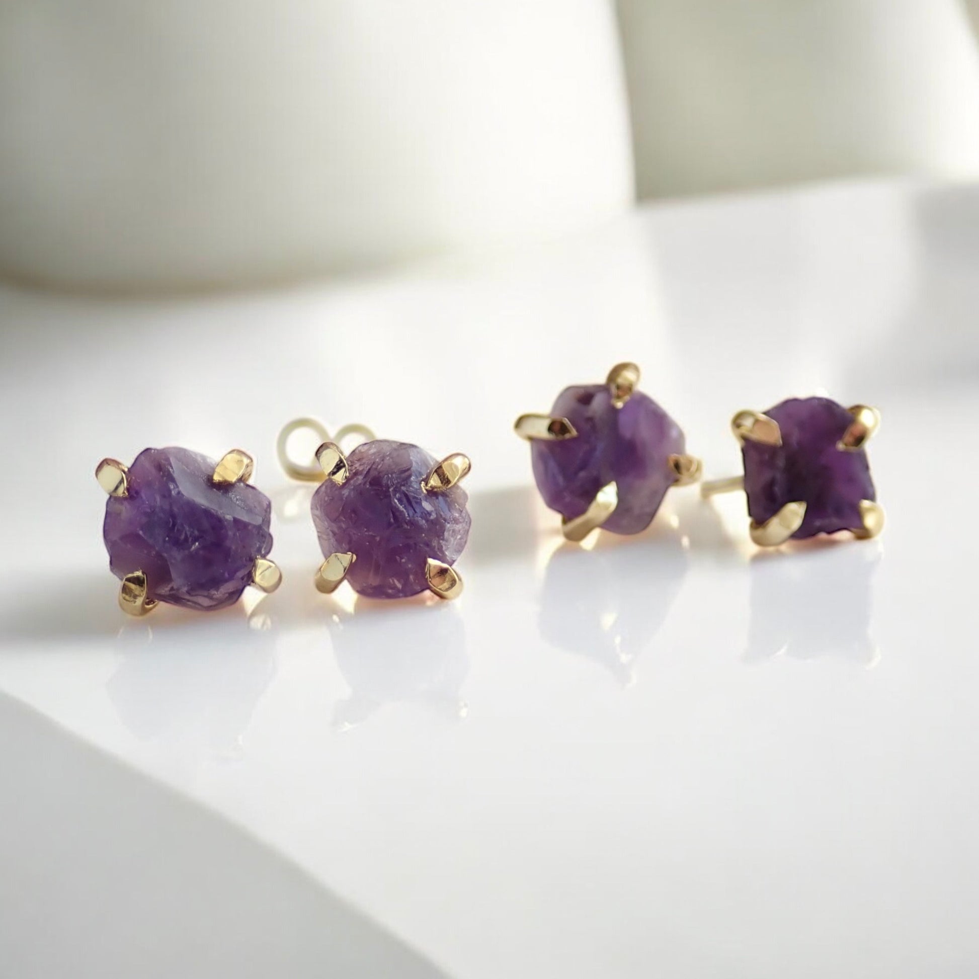 Natural Amethyst Stud Earrings – 14k Gold Plated Prong Setting | Natural Gemstone Jewelry, February Birthstone