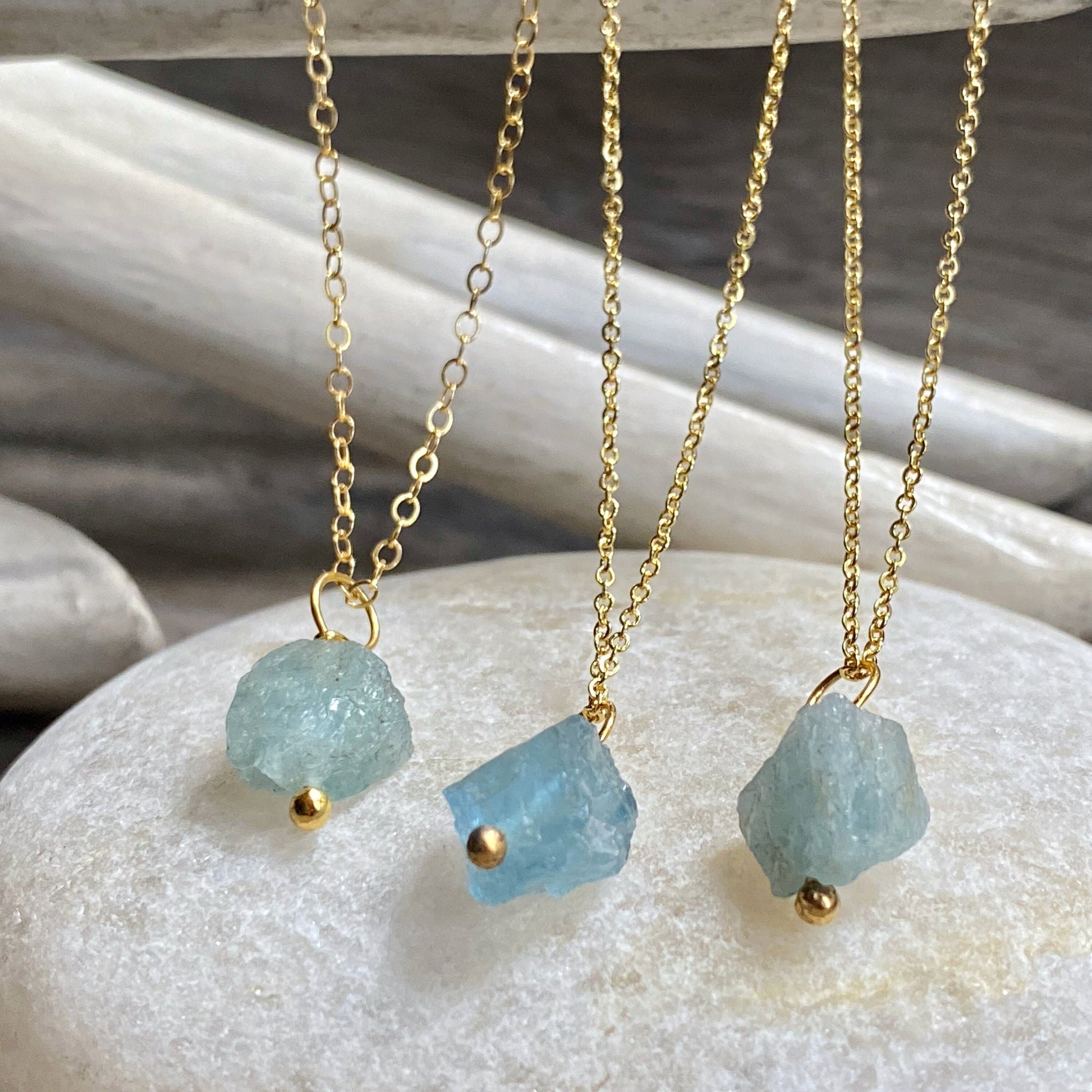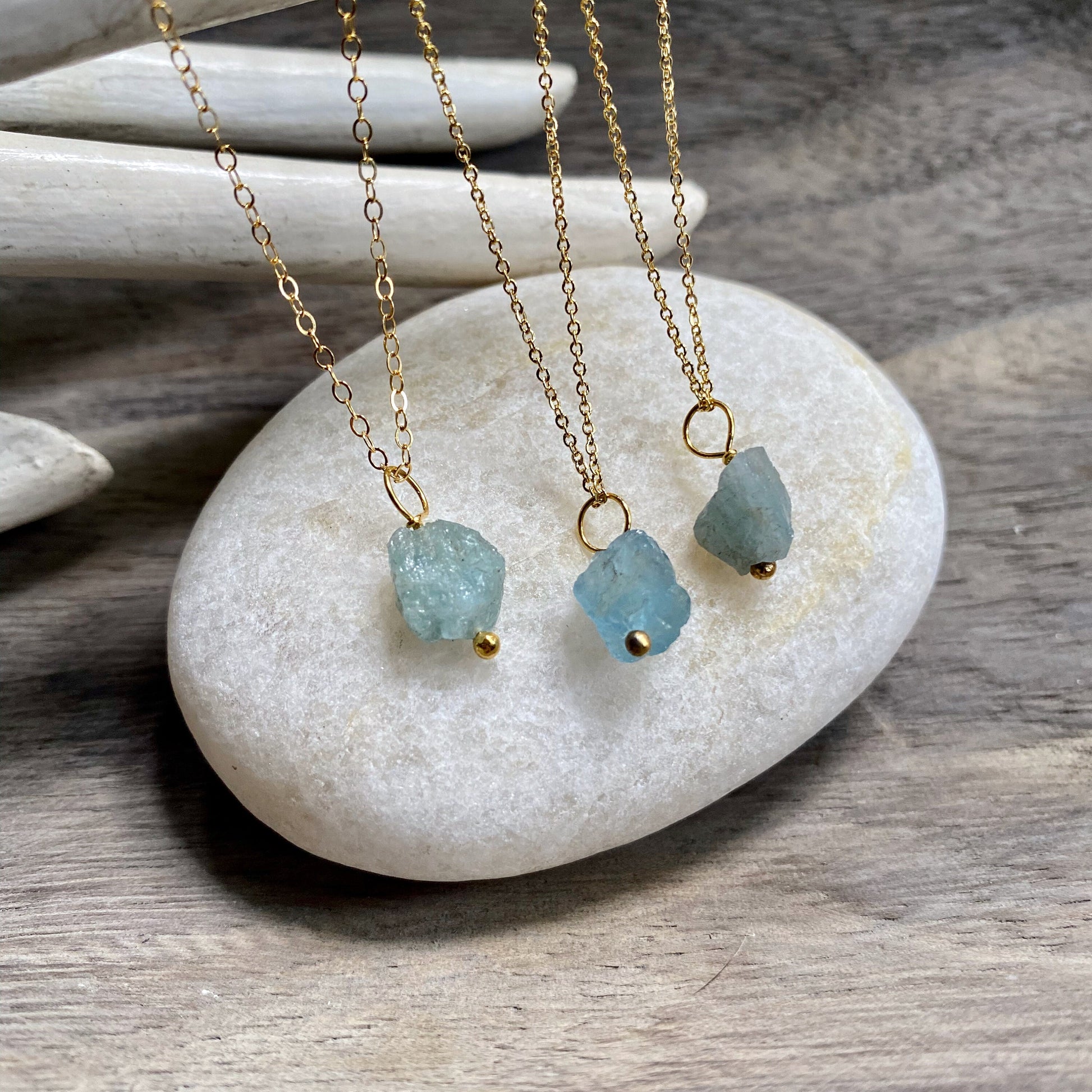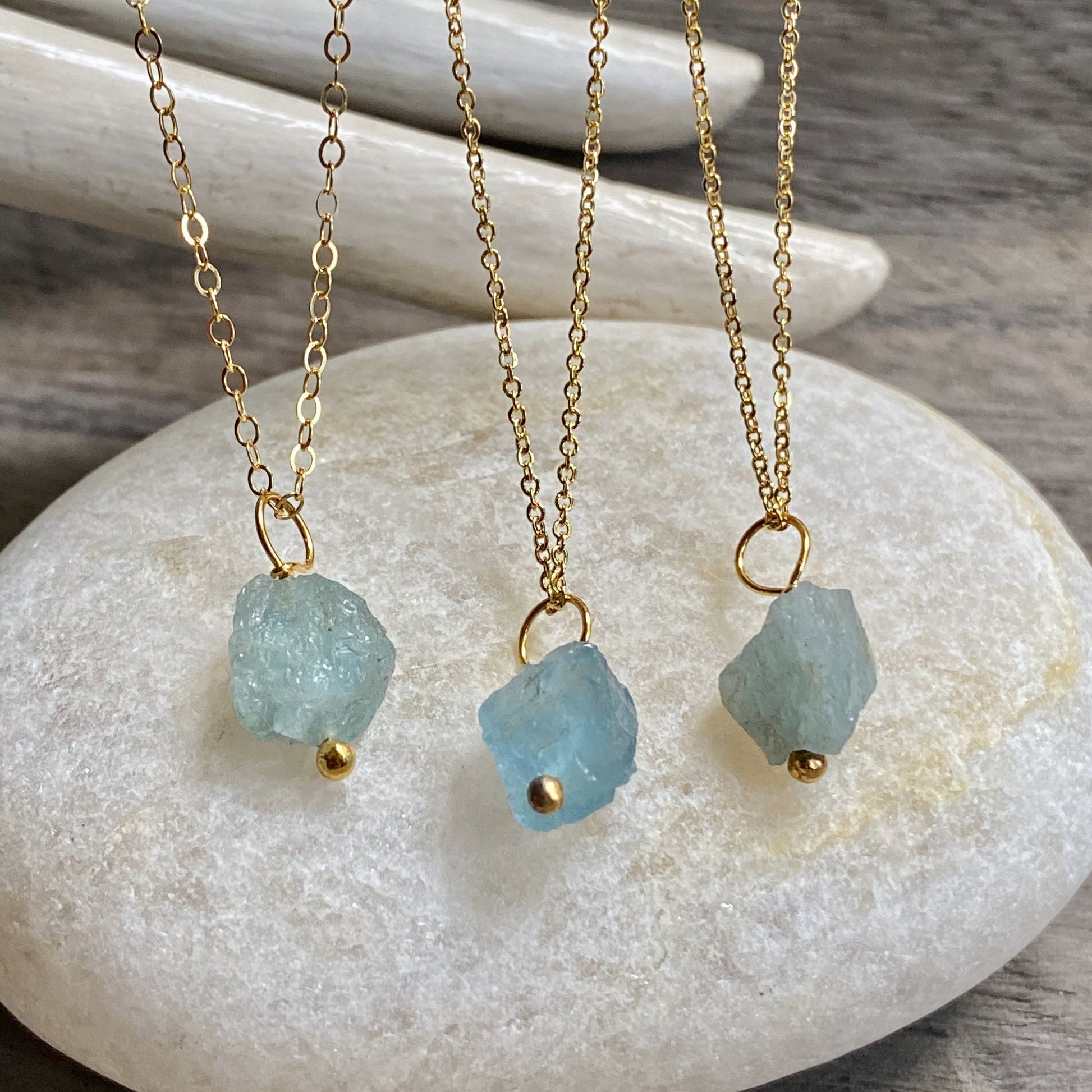 Raw Aquamarine Necklace | Dainty Crystal Necklace, Gemstone Layering Necklace